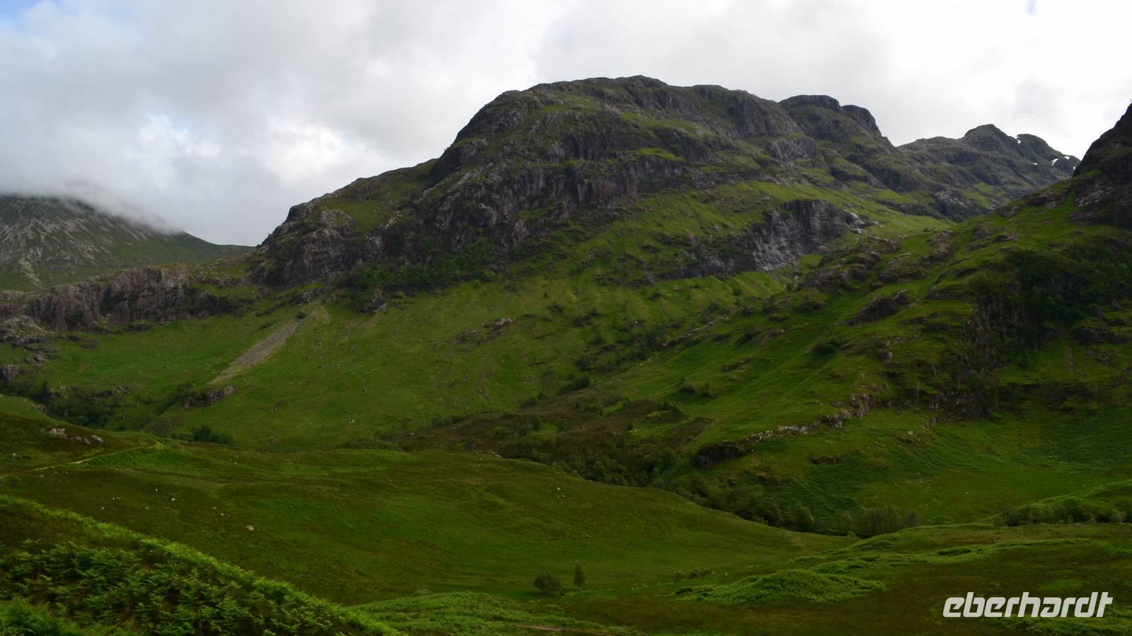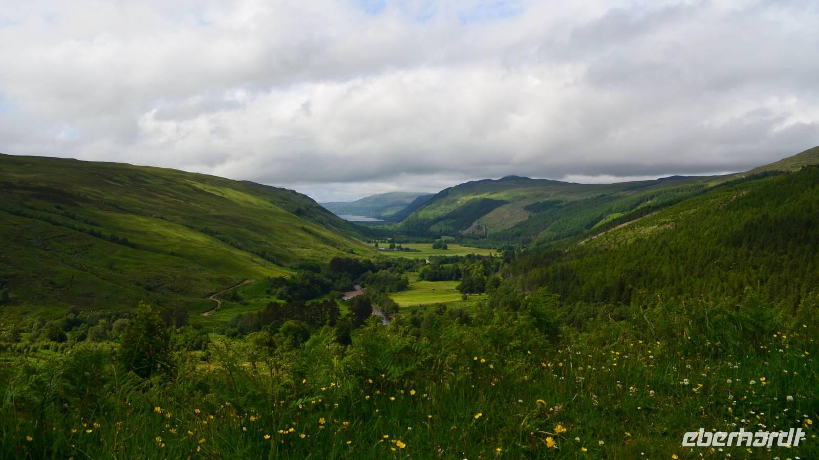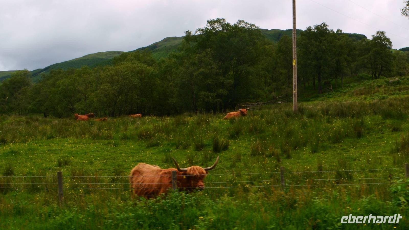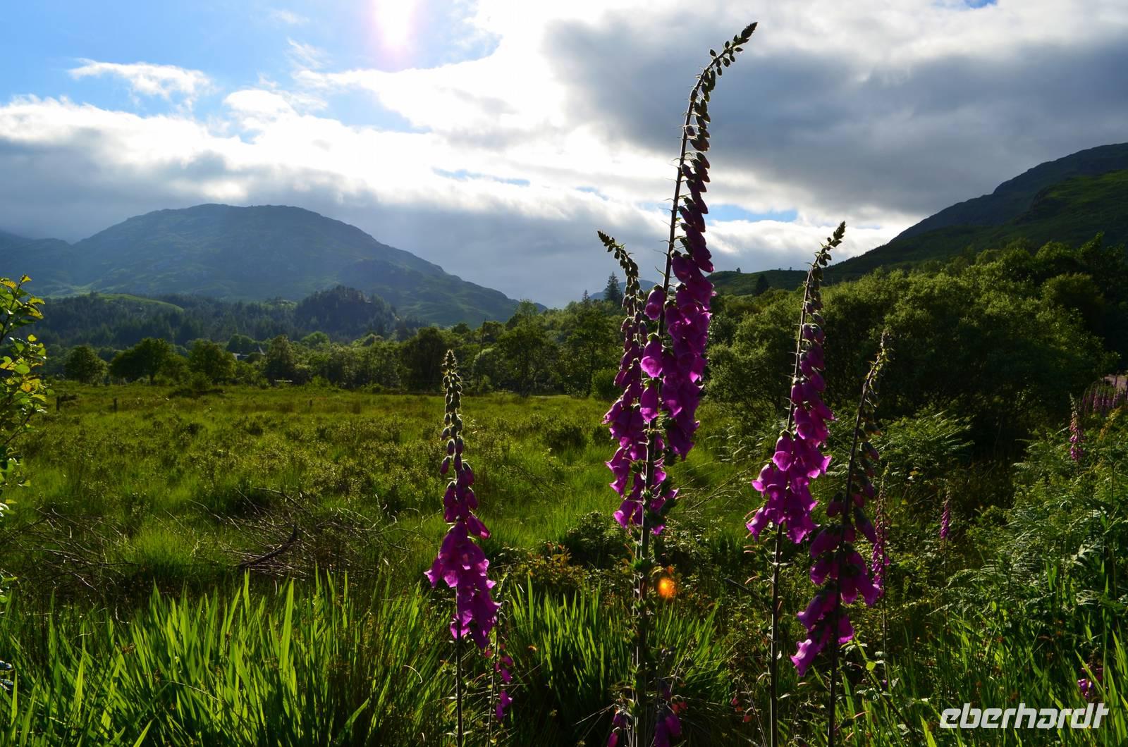 Unten am See dann das Nationalparkcenter „Beinn Eight". Herrliche Seeblicke bieten sich, nur der Berg Slioch (980 m) versteckt sich in den Wolken.