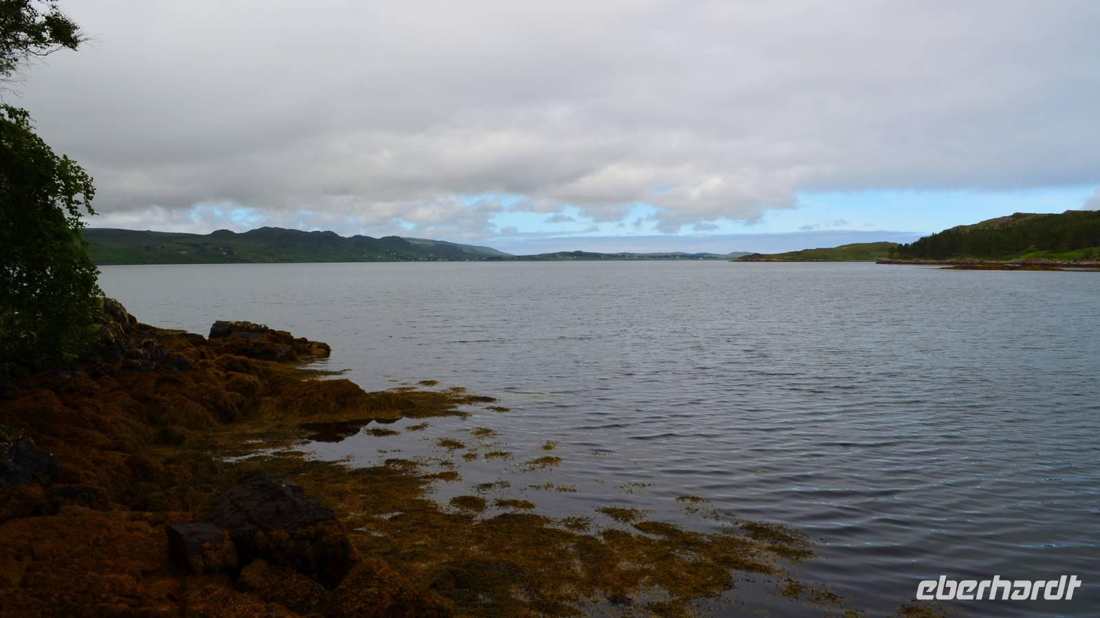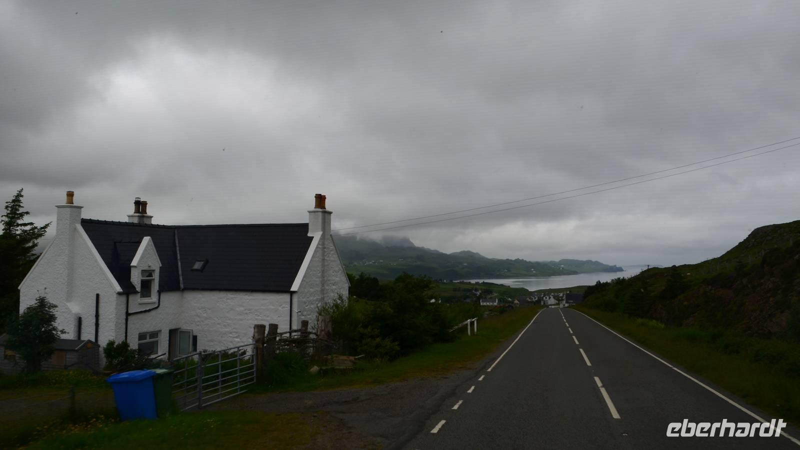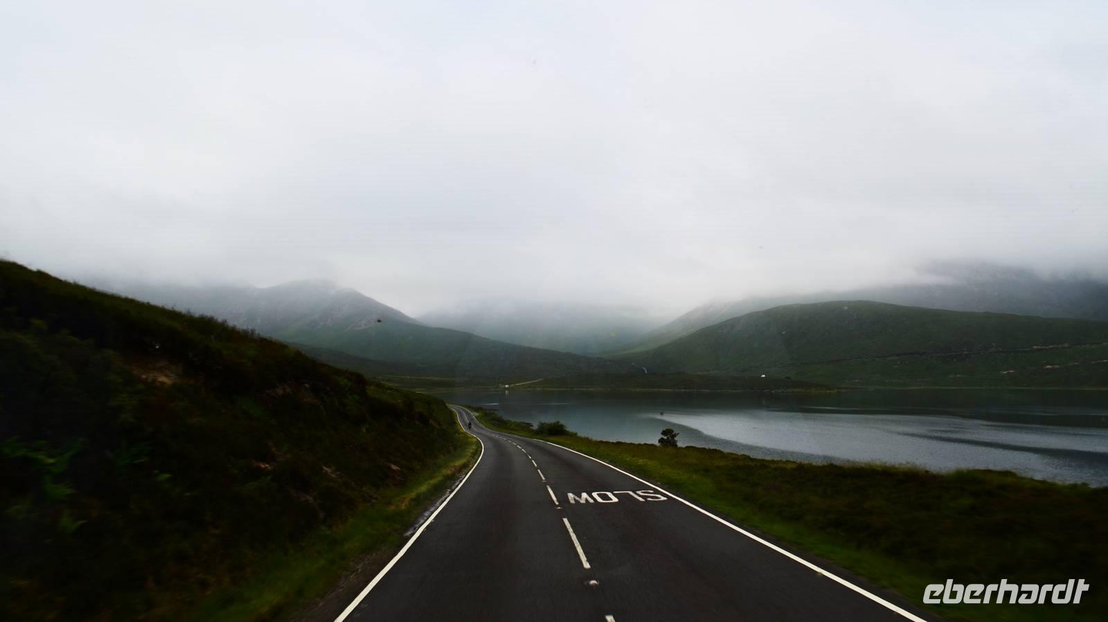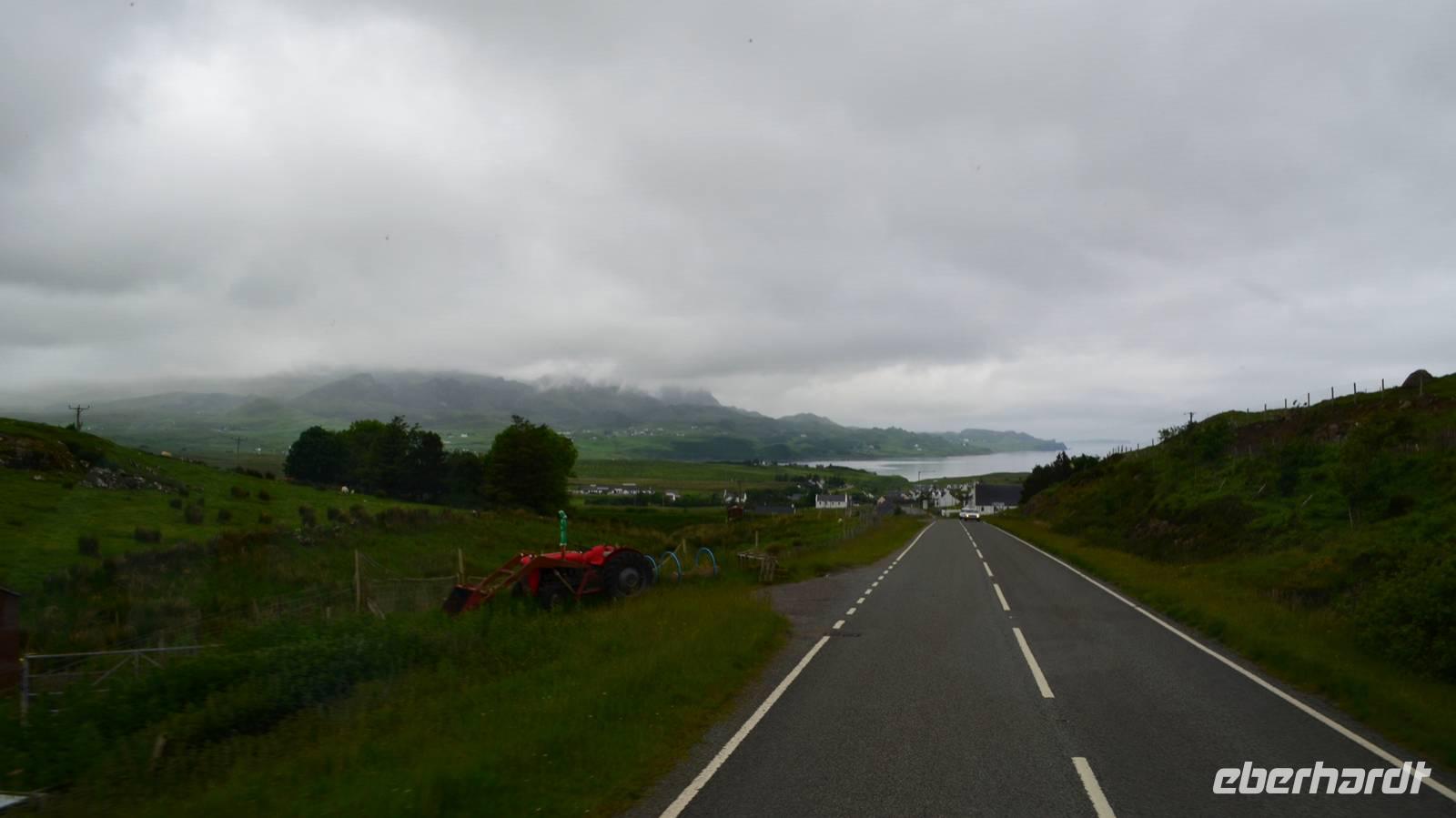 Tief ziehende Wolken tauchen die Landschaft am Loch Alsh in ein mystisches Flair. Auch die Insel Skye macht heute ihrem Namen alle Ehre.