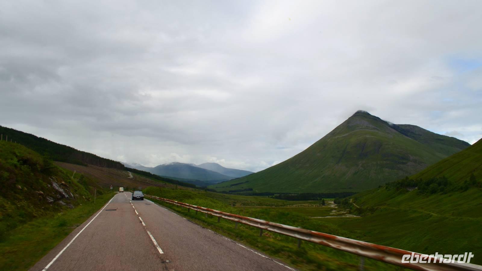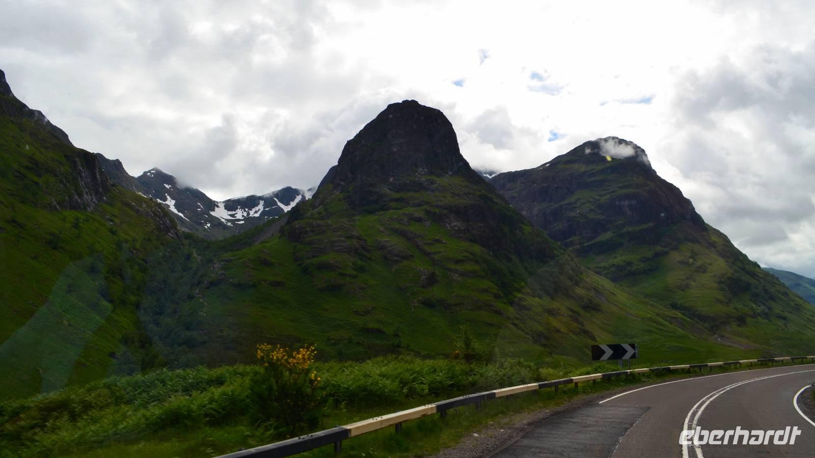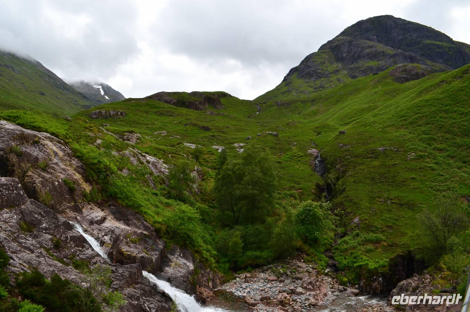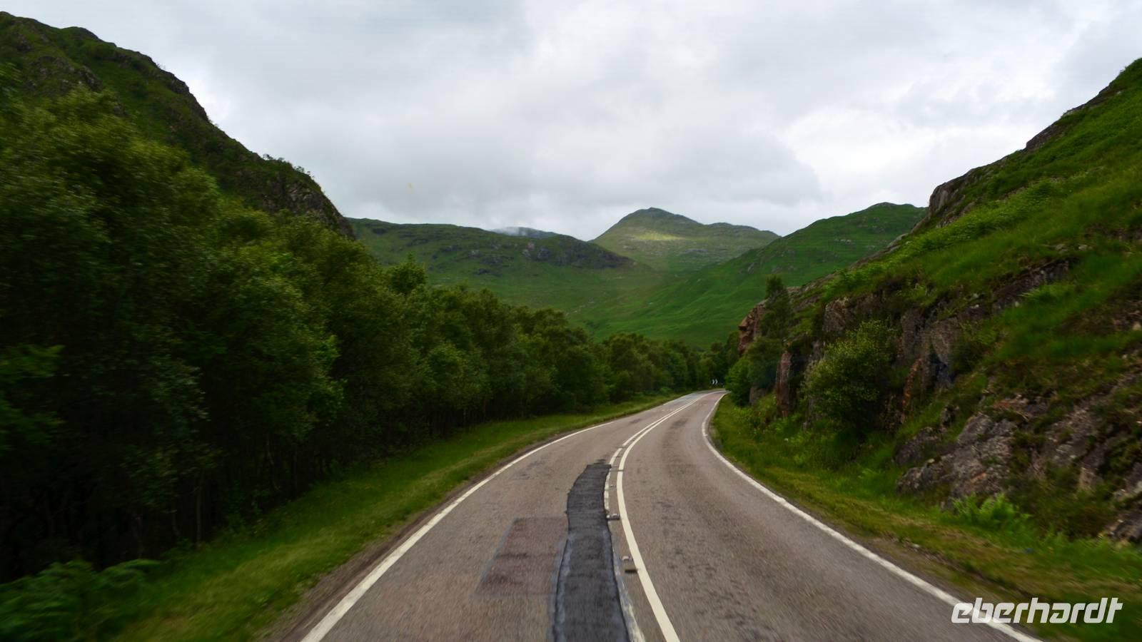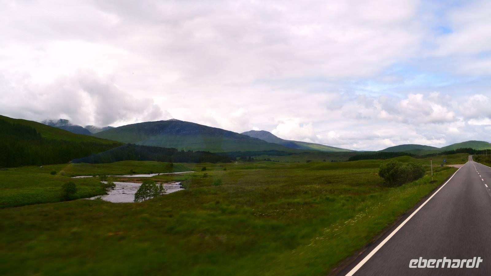 Die Weiterfahrt führt uns über Callander hinein in den Trossachs Nationalpark, mit einem Abstecher nach Killin, zu den Falls of Dochart. Dann fahren wir weiter in die Highlands und nach Glencoe. Unterwegs bieten sich unzählige weitere Fotostopps, so an der schönen Aussicht nach Tyndrum, oberhalb des Loch Tulla, am Rannoch Moor und mehrfach im Glen Coe. Am Nachmittag erreichen wir Fort William, fahren durch den Ort weiter nach Glenfinnian. Hier unternehmen wir an diesem schönen Nachmittag einen kleinen Spaziergang hinauf zum Aussichtshügel, von dem der berühmte Eisenbahnviadukt schön zu sehen ist. Hier öffnet sich auch der schönste Blick auf den Loch Shiel mit dem Monument.