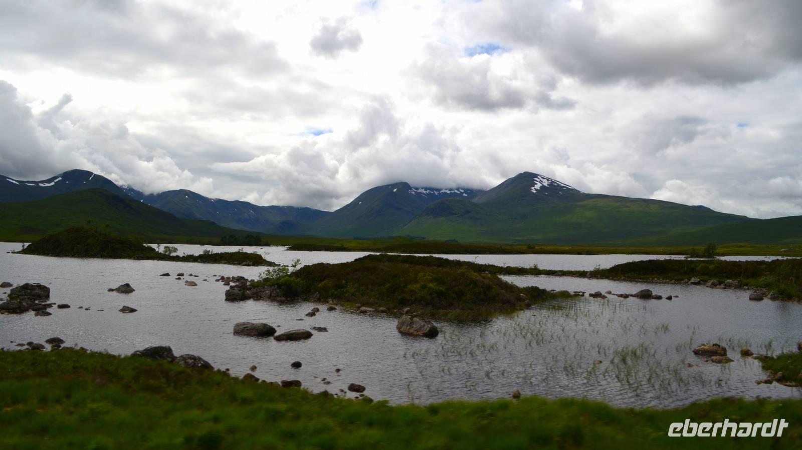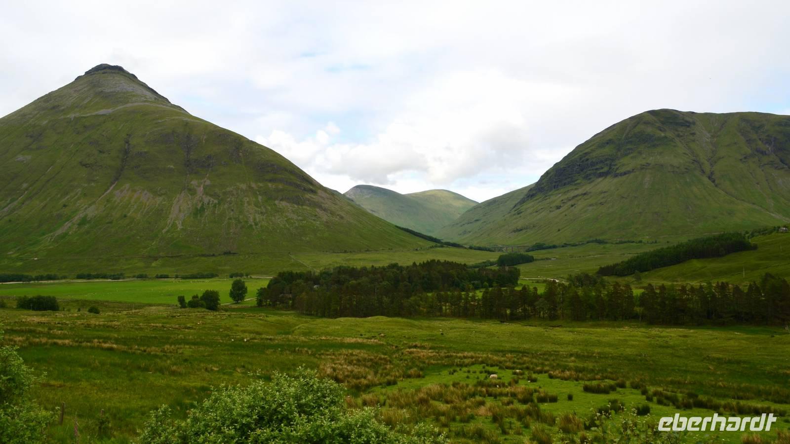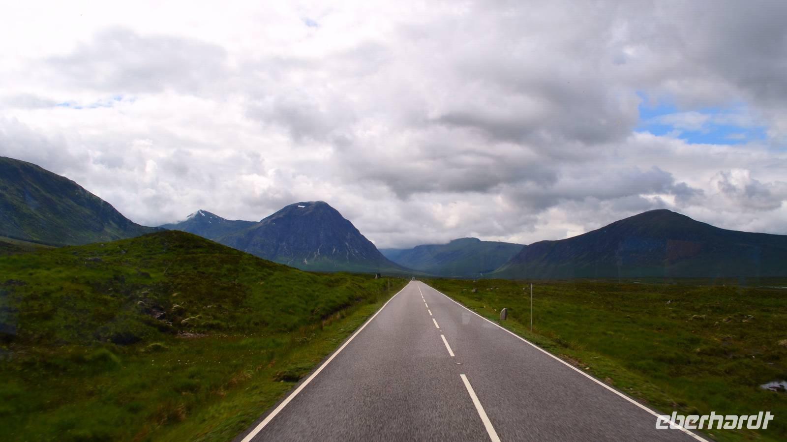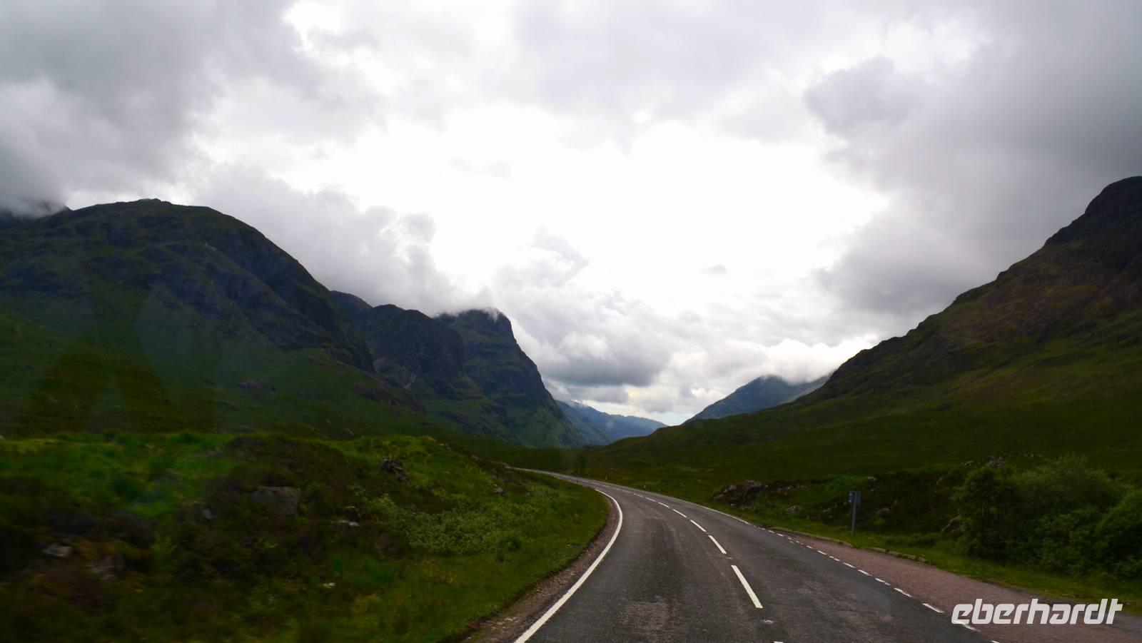 Die Weiterfahrt führt uns über Callander hinein in den Trossachs Nationalpark, mit einem Abstecher nach Killin, zu den Falls of Dochart. Dann fahren wir weiter in die Highlands und nach Glencoe. Unterwegs bieten sich unzählige weitere Fotostopps, so an der schönen Aussicht nach Tyndrum, oberhalb des Loch Tulla, am Rannoch Moor und mehrfach im Glen Coe. Am Nachmittag erreichen wir Fort William, fahren durch den Ort weiter nach Glenfinnian. Hier unternehmen wir an diesem schönen Nachmittag einen kleinen Spaziergang hinauf zum Aussichtshügel, von dem der berühmte Eisenbahnviadukt schön zu sehen ist. Hier öffnet sich auch der schönste Blick auf den Loch Shiel mit dem Monument.