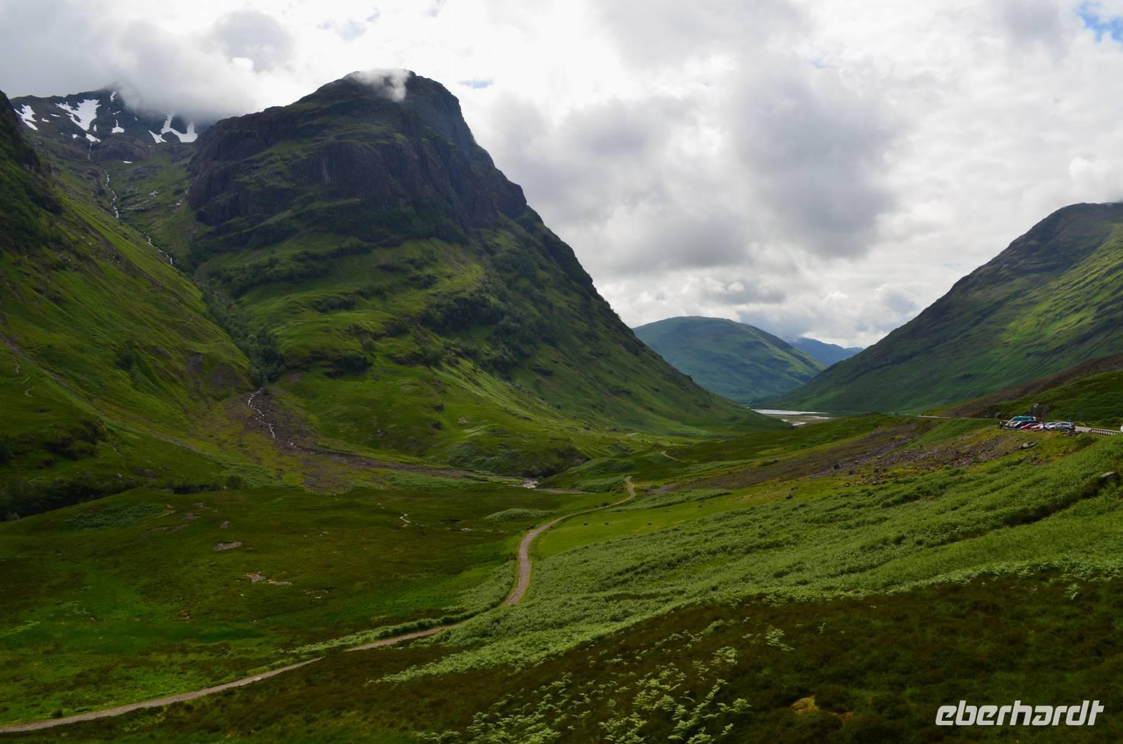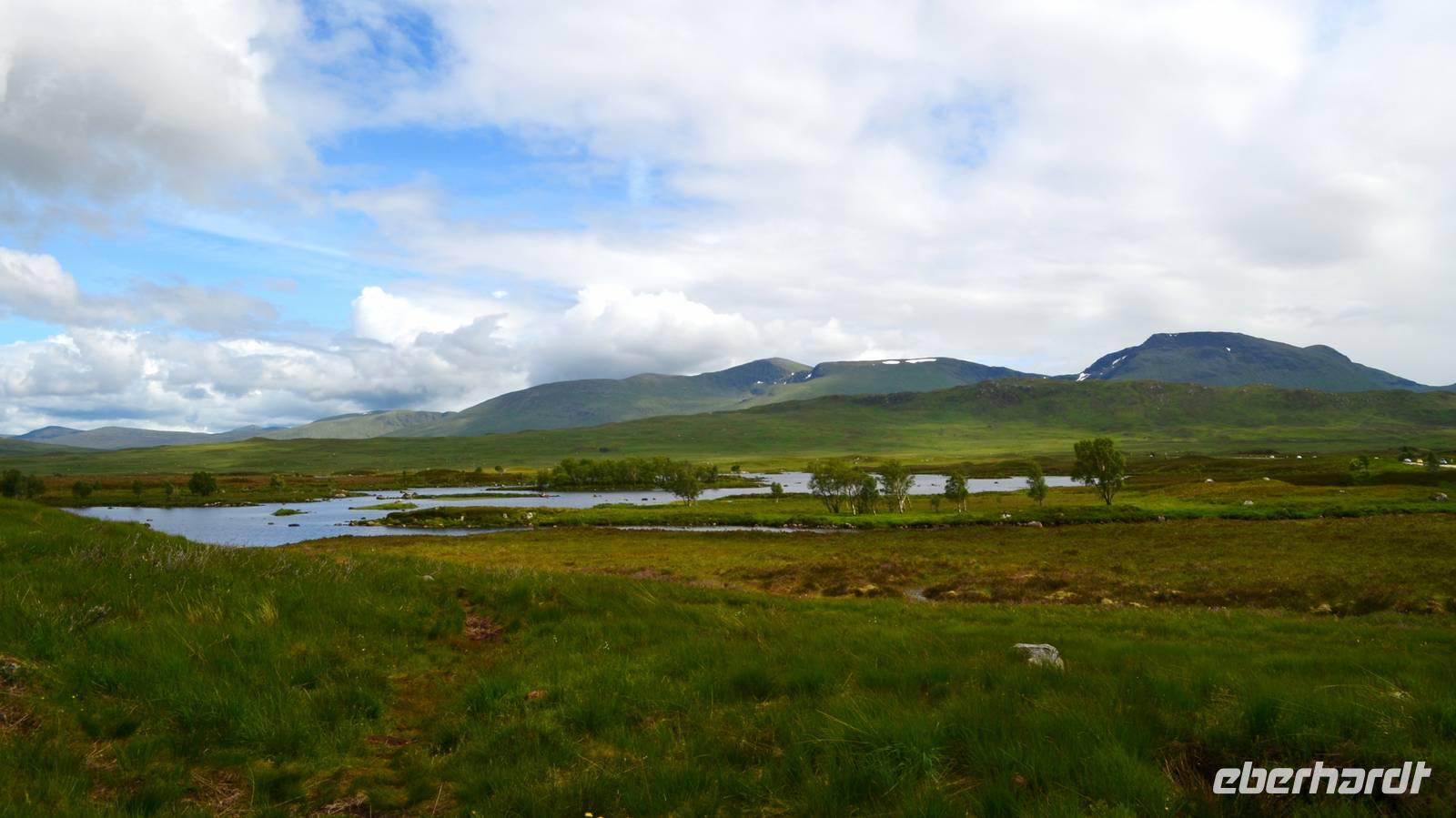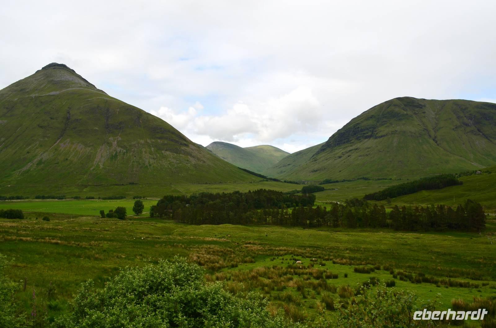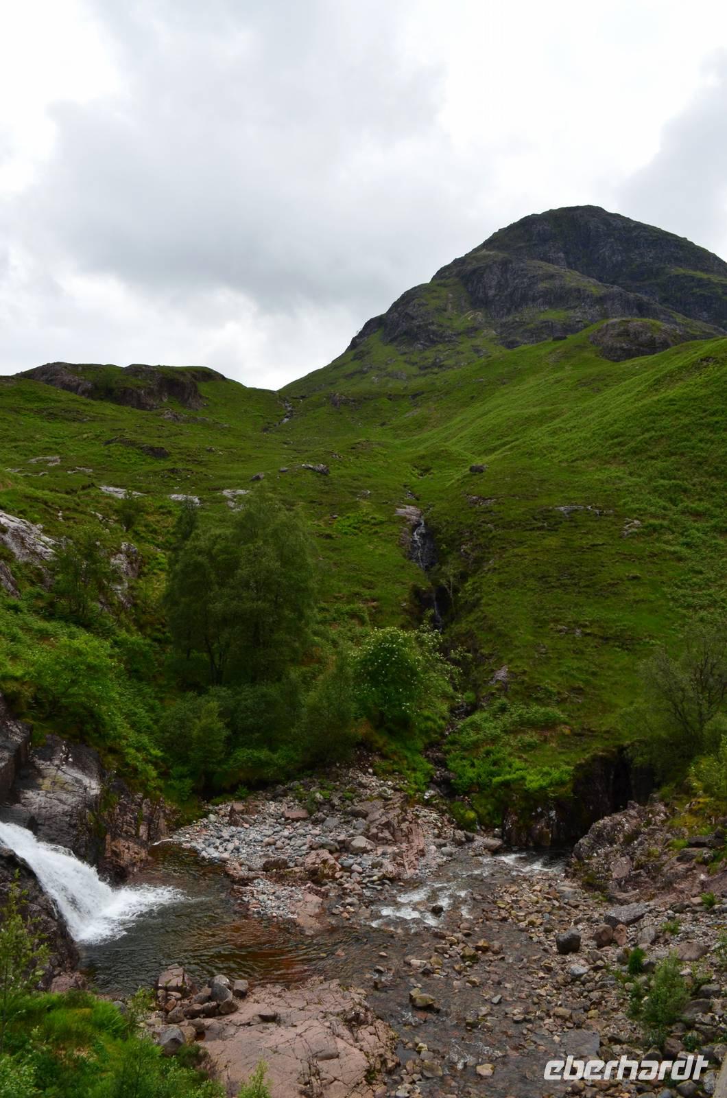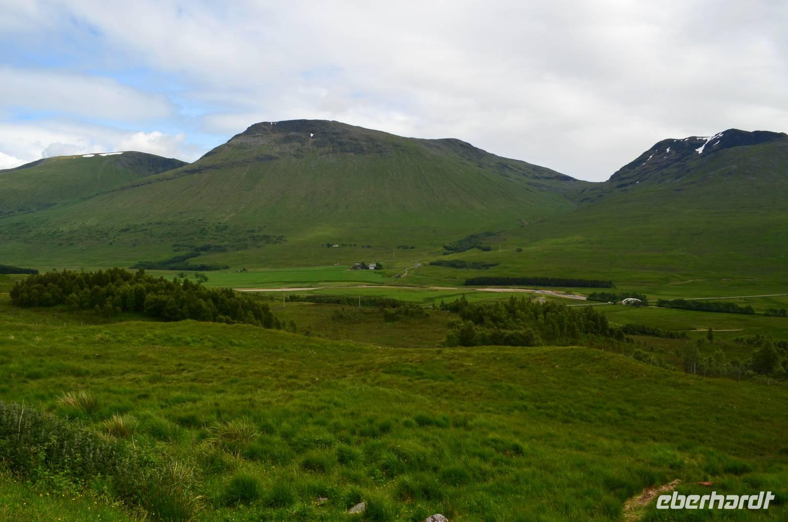 Die Weiterfahrt führt uns über Callander hinein in den Trossachs Nationalpark, mit einem Abstecher nach Killin, zu den Falls of Dochart. Dann fahren wir weiter in die Highlands und nach Glencoe. Unterwegs bieten sich unzählige weitere Fotostopps, so an der schönen Aussicht nach Tyndrum, oberhalb des Loch Tulla, am Rannoch Moor und mehrfach im Glen Coe. Am Nachmittag erreichen wir Fort William, fahren durch den Ort weiter nach Glenfinnian. Hier unternehmen wir an diesem schönen Nachmittag einen kleinen Spaziergang hinauf zum Aussichtshügel, von dem der berühmte Eisenbahnviadukt schön zu sehen ist. Hier öffnet sich auch der schönste Blick auf den Loch Shiel mit dem Monument.
