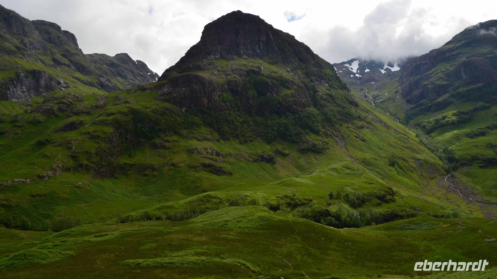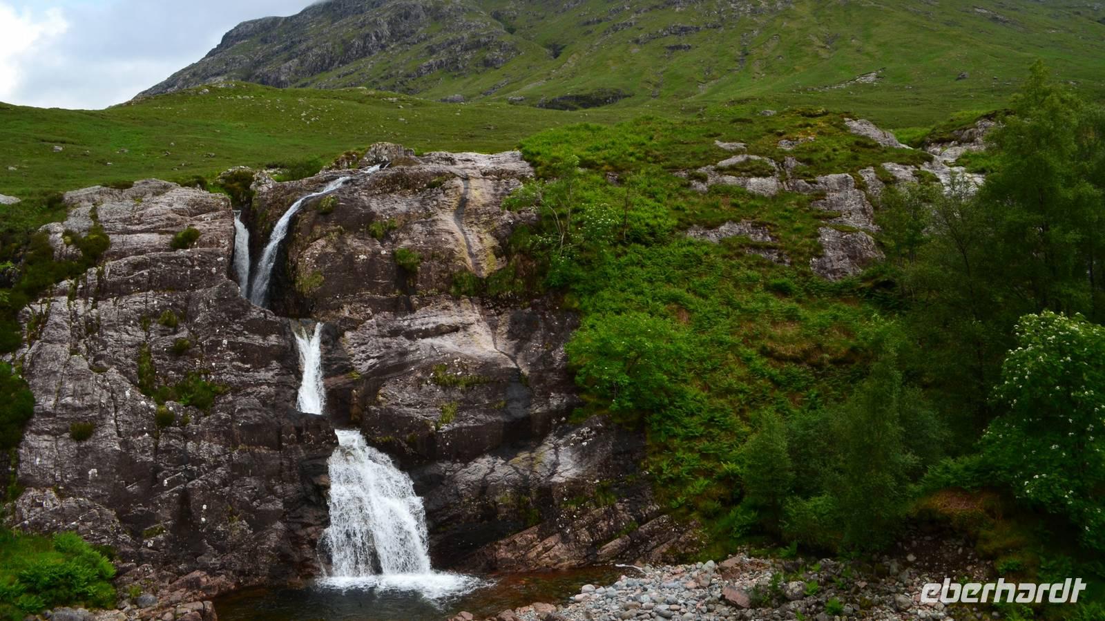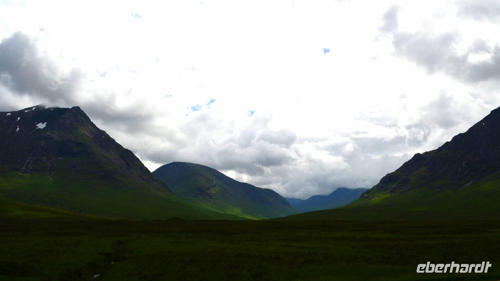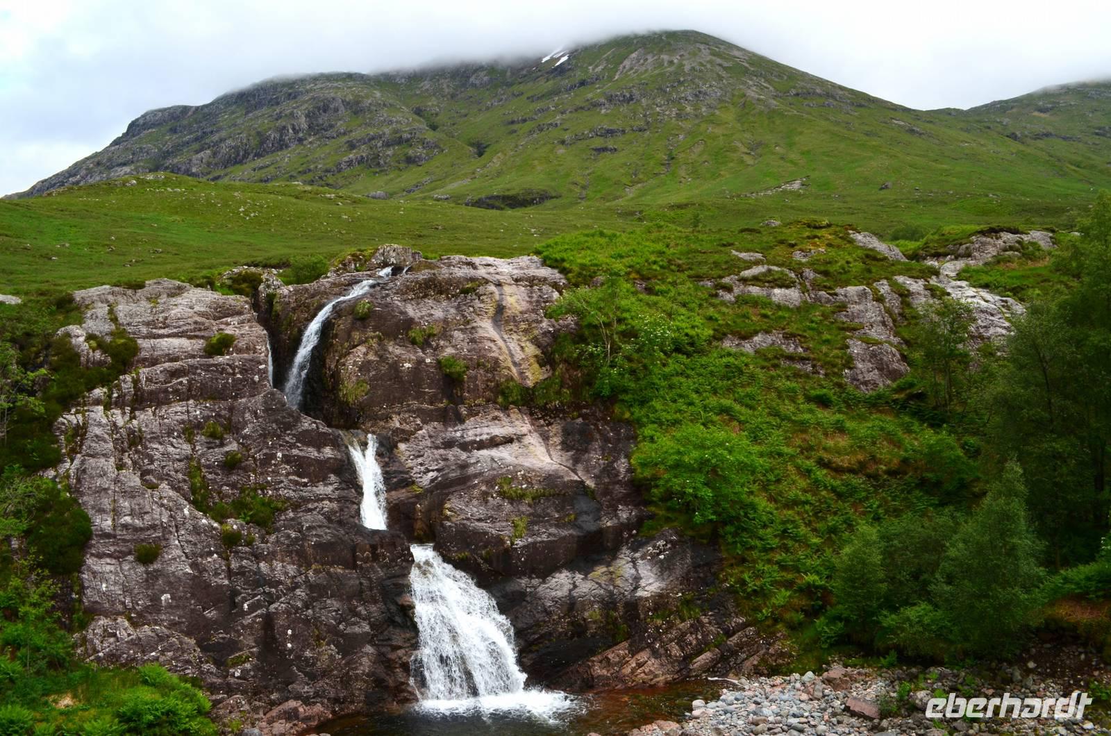 Die Weiterfahrt führt uns über Callander hinein in den Trossachs Nationalpark, mit einem Abstecher nach Killin, zu den Falls of Dochart. Dann fahren wir weiter in die Highlands und nach Glencoe. Unterwegs bieten sich unzählige weitere Fotostopps, so an der schönen Aussicht nach Tyndrum, oberhalb des Loch Tulla, am Rannoch Moor und mehrfach im Glen Coe. Am Nachmittag erreichen wir Fort William, fahren durch den Ort weiter nach Glenfinnian. Hier unternehmen wir an diesem schönen Nachmittag einen kleinen Spaziergang hinauf zum Aussichtshügel, von dem der berühmte Eisenbahnviadukt schön zu sehen ist. Hier öffnet sich auch der schönste Blick auf den Loch Shiel mit dem Monument.