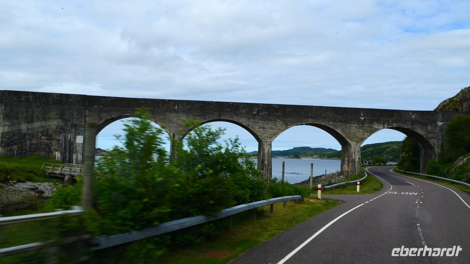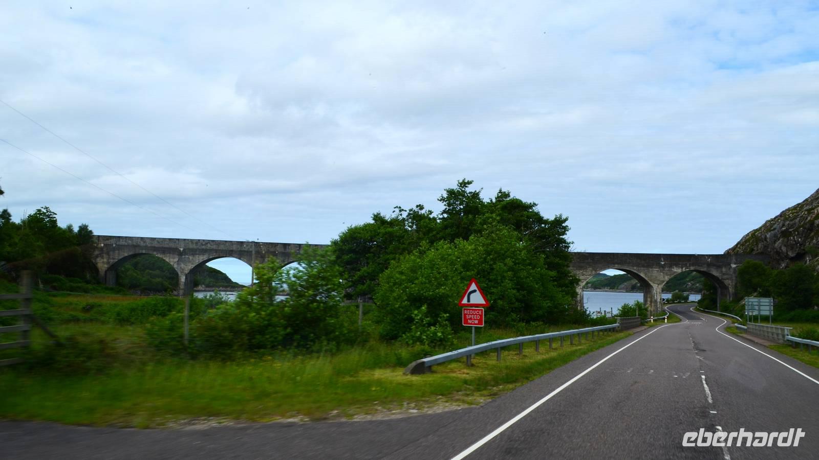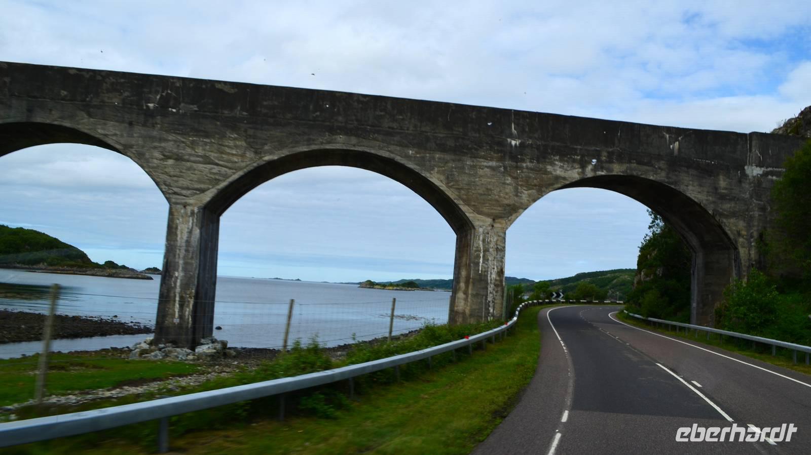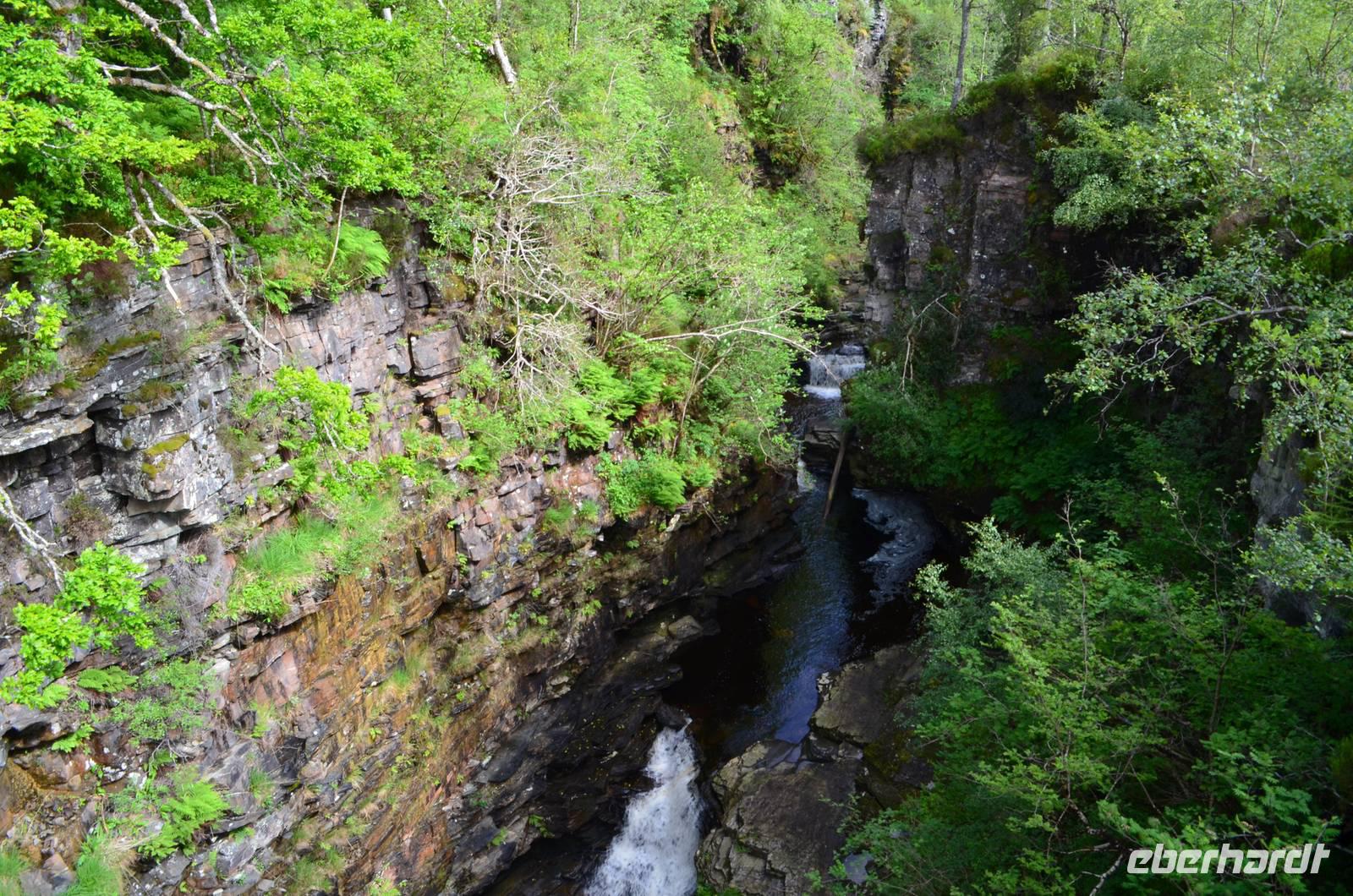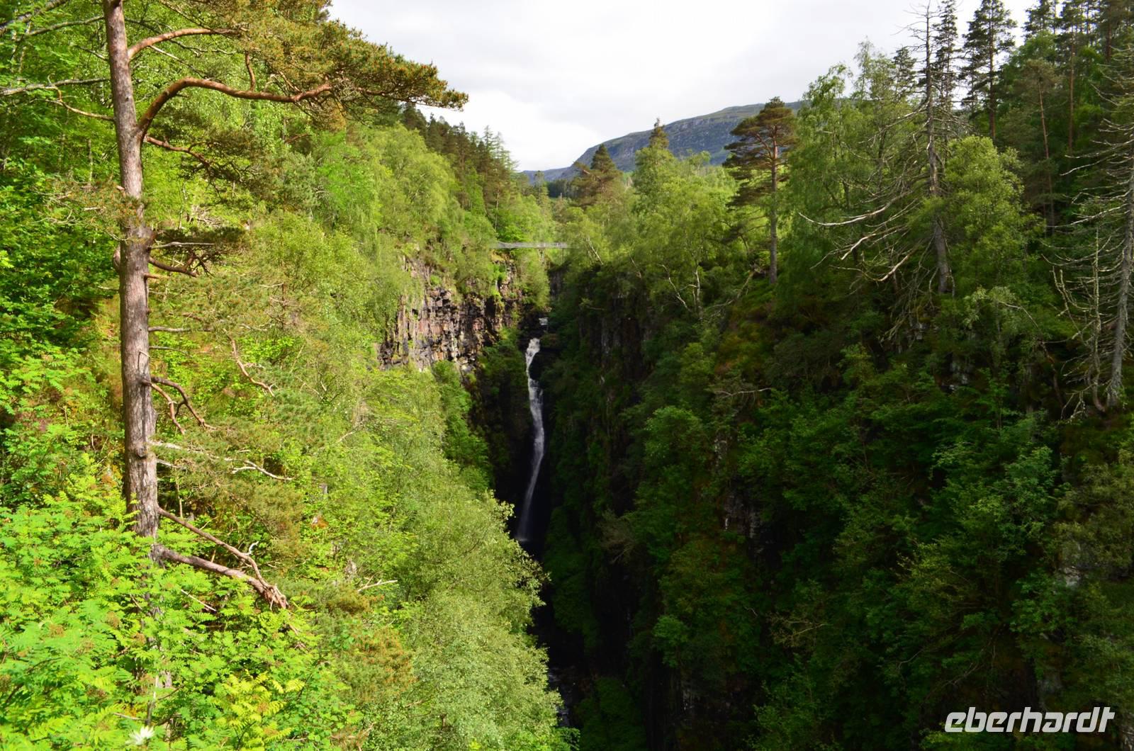 Auf der Weiterfahrt zum Loch Ness, Richtung Norden - Ullapool, machen wir noch ein paar Fotostopps an der malerischen Küste und passieren den nördlichsten Ort unserer Reise beim Loch Broom. Eine kleine Wanderung am Corrieshalloch Gorge führt uns zum 46 m hohen Wasserfall von Mesach. Der Fußweg geht hinunter zur Hängebrücke und zur Aussichtsplattform und bietet phantastische Tiefblicke in die tief in den Fels eingeschnittene Schlucht.