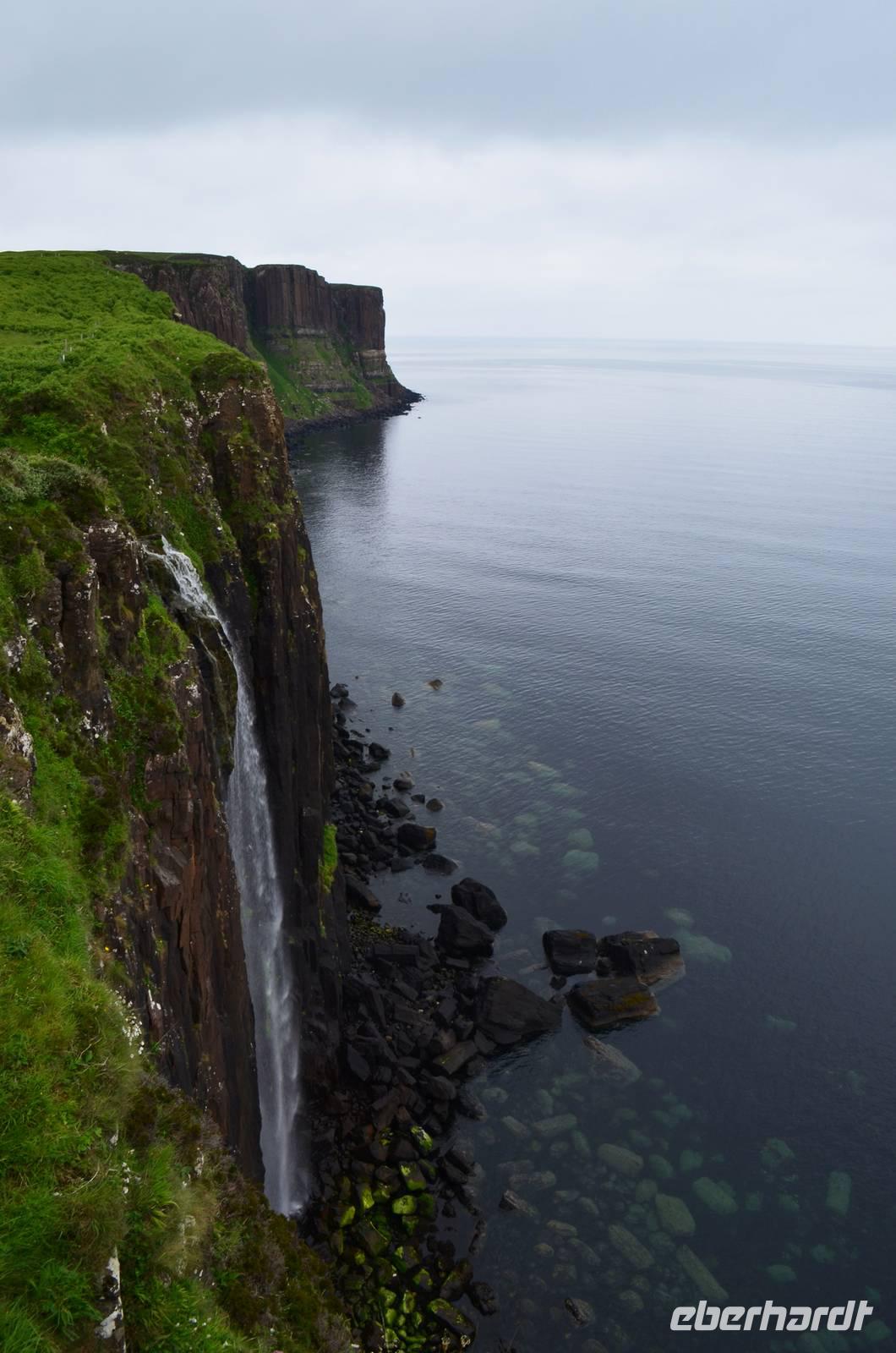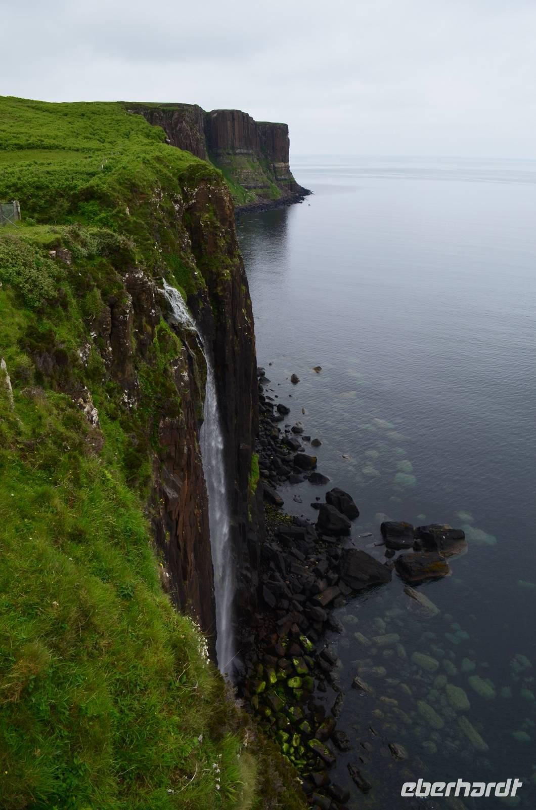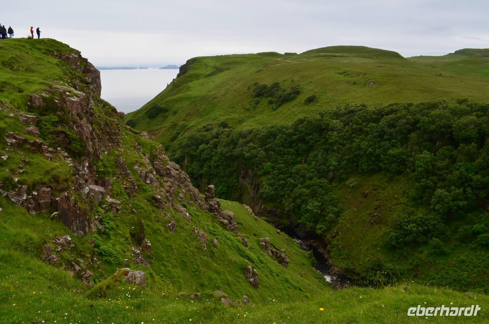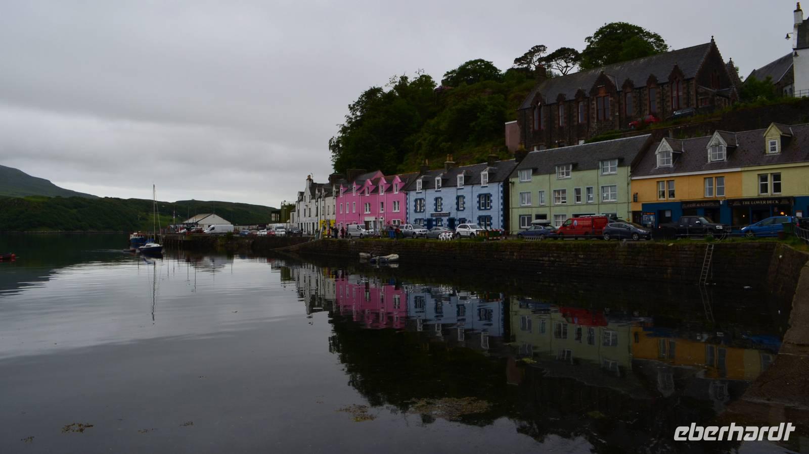 in Portree - mit seinen bunten Häusern am Hafen, in Lealt - mit Aussicht über die Wasserfälle (Falls of Lealt) und der Steilküste mit dem alten Dynamitin-Bergwerk.