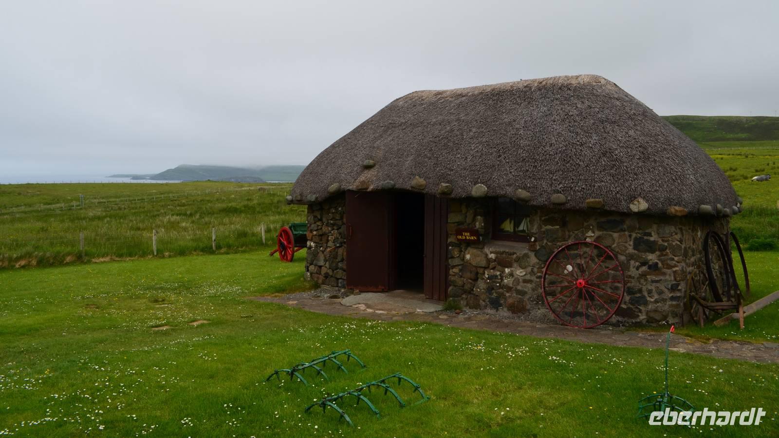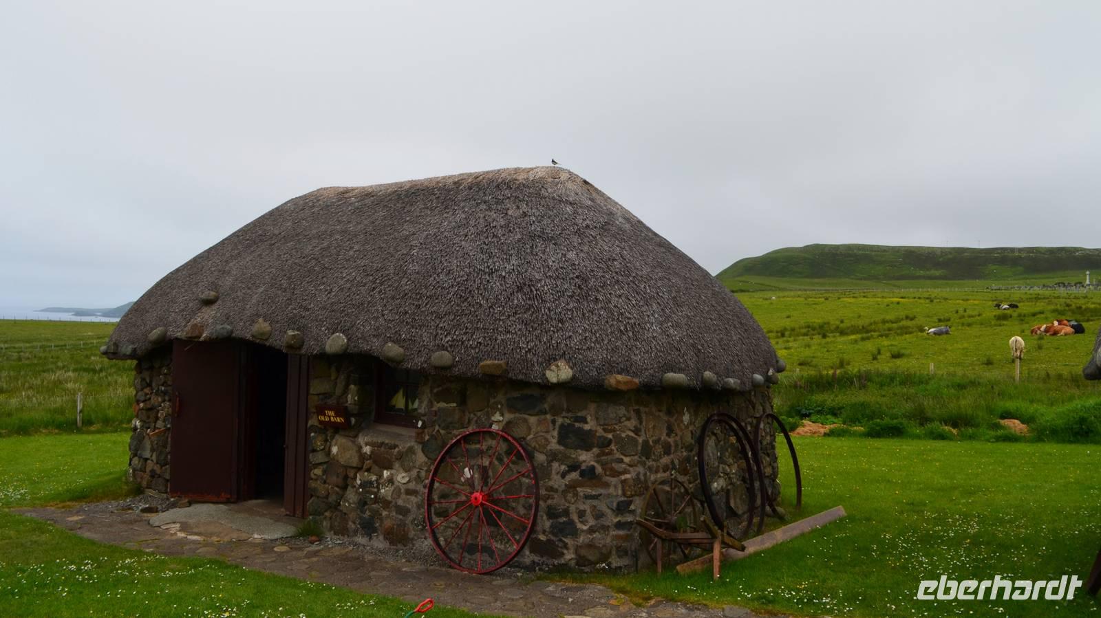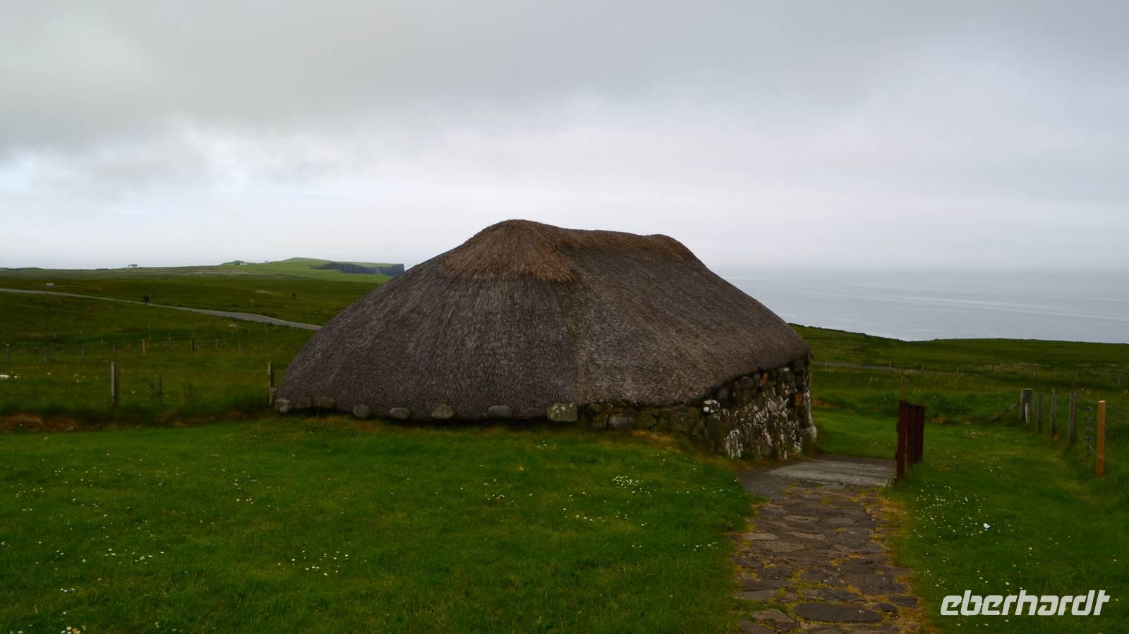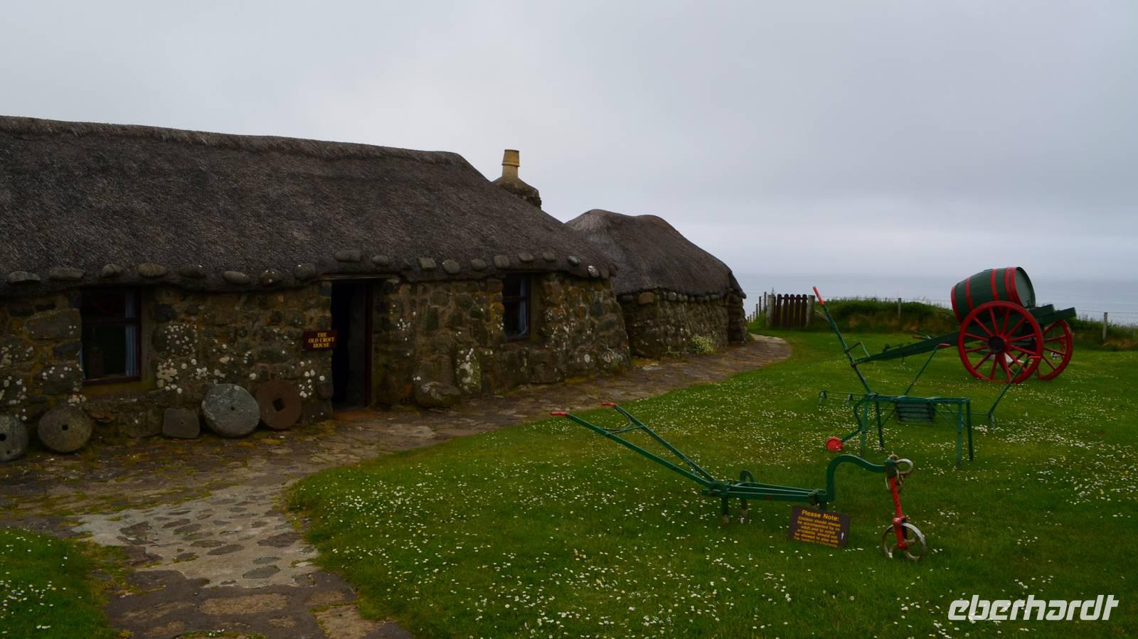 Anschließend die Weiterfahrt zum Kilt Rock, wo wir das 200 m hohe Cliff und den Wasserfall besichtigen. Dann der Norden der Insel, mit Duntulm Castle, dem Skye Museum of Island Life, das wir als weiteres Eberhardt-WOW besichtigen. Wir verschaffen uns so einen Eindruck vom schweren Leben der Crofters, die noch bis 1956 in diesen Häusern wohnten.