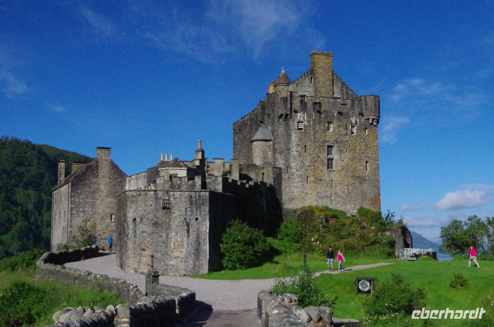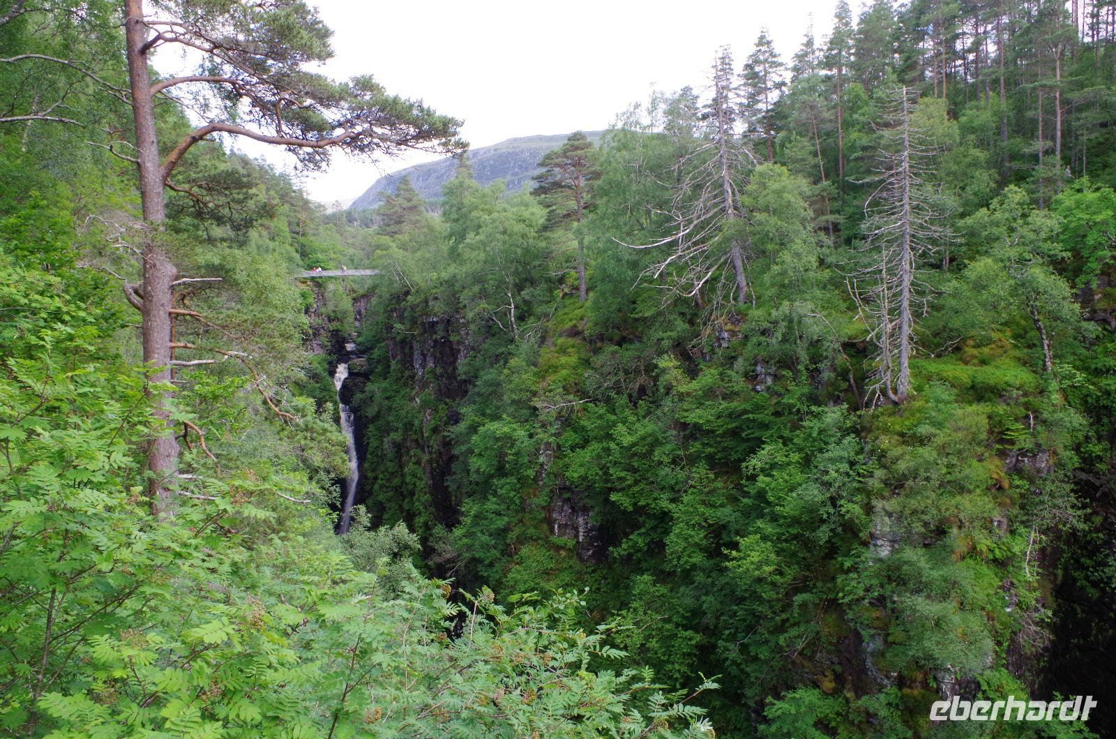 Ein Tag wie aus dem Bilderbuch- besser kann man das, was wir heute gesehen und erlebt haben, nicht zusammenfassen! Ein Traumwetter von morgens bis abends und so viele Naturschönheiten, dass man sie gar nicht alle fotografieren konnte. Los ging's am wunderschönen Eilean Donan Castle, wo direkt alle zum Gruppenfoto antraten. Anschließend ging es vorbei am herrlichen Loch Maree nach Gairloch und von dort aus zu den Inverewe Gardens mit ihren subtropischen Pflanzen und einem herrlichen Blick über das Loch Ewe. Die Strecke von den Gärten nach Ullapool war atemberaubend schön und so reihte sich ein Fotostopp an den nächsten. Angekommen in Ullapool stand erst mal Souvenirshoppen auf dem Programm, gefolgt von einer Wanderung zu den Corrieshalloch Wasserfällen und einer dazugehörigen spektakulären Hängeseilbrücke. Zur Feier des Tages gab es dann vom Reiseleiter für jeden einen Glenmorangie auf's Haus. Gut gelaunt machten wir uns dann auf dem Weg ins Hotel nach Beauly bei Inverness und ließen uns dort das hervorragende 3-Gänge-Menü schmecken.