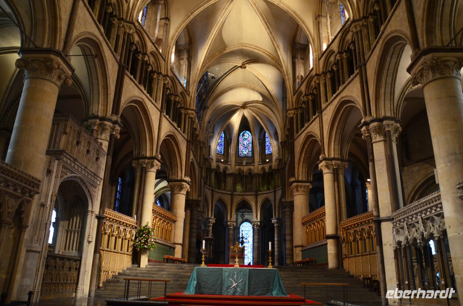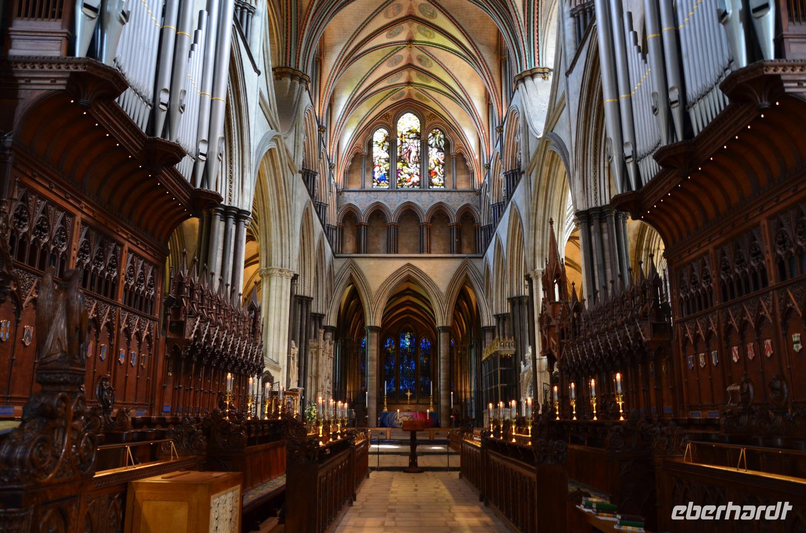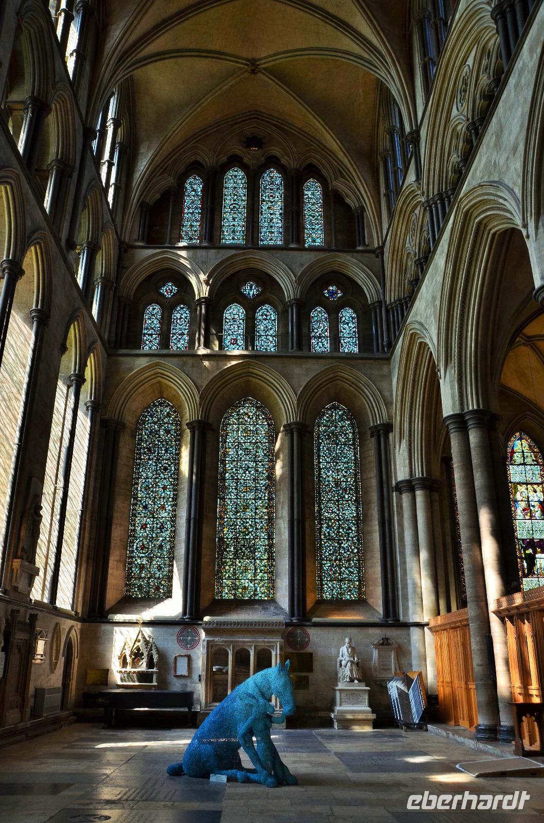 Vorbei an Old Sarum, mit den Spuren der alten Befestigungsanlage, fahren wir hinunter ans Ufer des River Avon - in die Stadt Salisbury. Schon von weitem sehen wir den hohen Kirchturm der Kathedrale aufragen, der mit seinen 123 m der höchste von England ist. Ein gemeinsamer Spaziergang führt uns ins Stadtzentrum, zum Market Cross, weiter an historischen Häusern vorbei zum St. Ann's Gate und von hier hinein in die größte Domfreiheit des Landes und hier zur Cathedral. Besonders eindrucksvoll ist die Westfassade mit ihrem Figurenschmuck. Wir besichtigen individuell das Innere des imposanten Bauwerkes der englischen Frühgotik und lassen uns von der Größe und Schönheit in den Bann ziehen. Wunderschön die Harmonie des Early English Stile. Am Nachmittag geht es durch das goldene Tor zurück zum Bus und mit ihm starten wir zu unserer Weiterfahrt zum abendlichen Ziel Exeter. Unterwegs wunderschöne Dörfer und ein Fotostopp an den Fovant Badges, den Regiment Carves.
