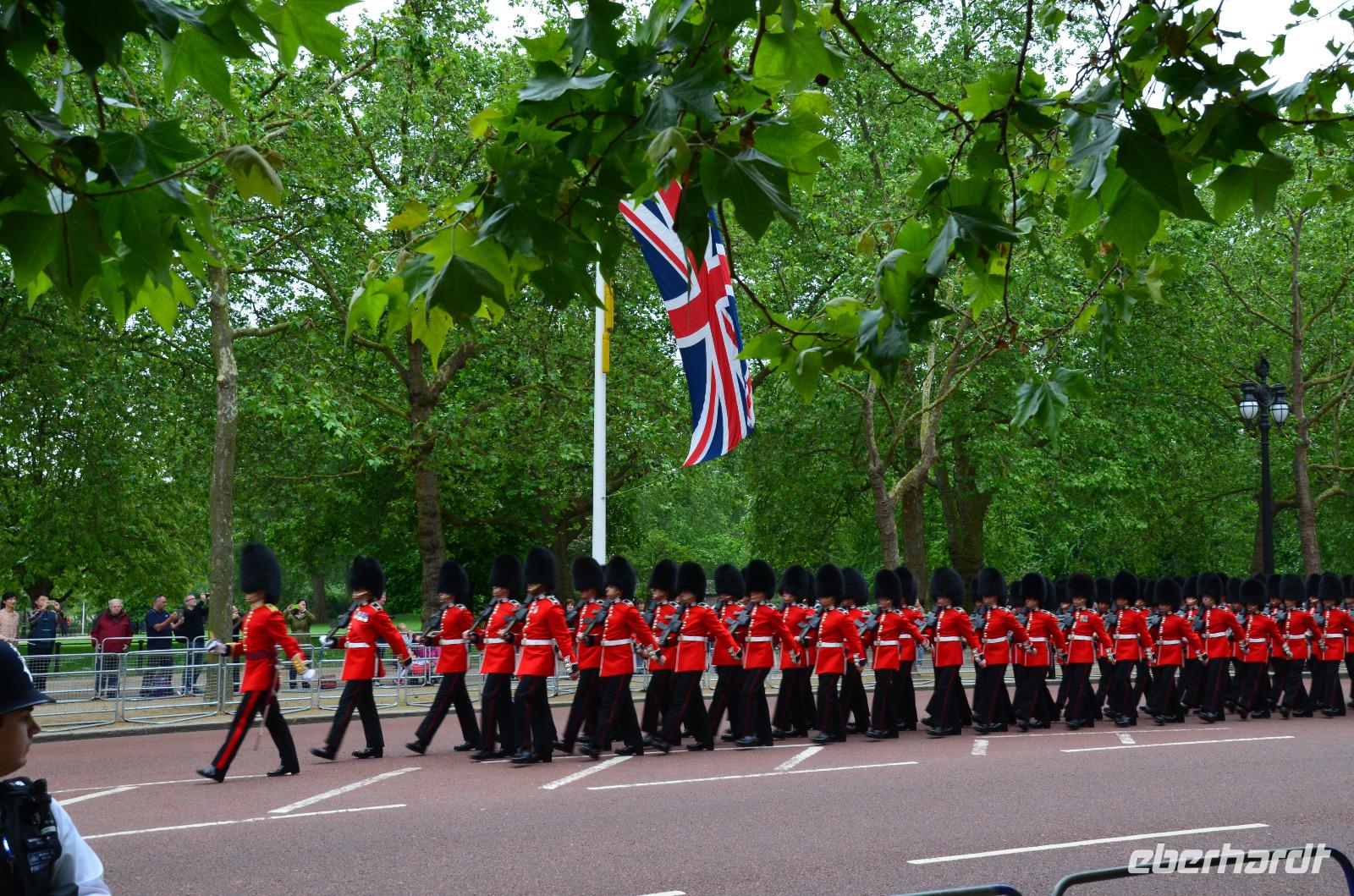 Am Morgen treffen wir unsere Stadtführerin Eva Brümmendorf am Hotel und mit ihr beginnt die Stadtrundfahrt durch die britische Hauptstadt - mit Stopps an der St. Pauls Cathedral - Fußweg dahin und Erläuterungen zu Christopher Wrens Meisterwerk, weiter zum Trafalgar Square und zur Pall Mall: hier Ausstieg und Fußweg zur "The Mall" - Teilnahme Probe-Parade zum Queens-Geburtstag; dann ein gemeinsamer Spaziergang zum Buckingham Palace, zum St. James Park, zum St. James Palace und zurück zum Bus. Die Weiterfahrt führt nach Kensington, zu den Museen und Royal Albert Hall, dann zurück nach Westminster zur Westminster Abbey, am Houses of Parliament vorbei und dann über Whitehall und The Strand zum Tower Hill Coach Park.