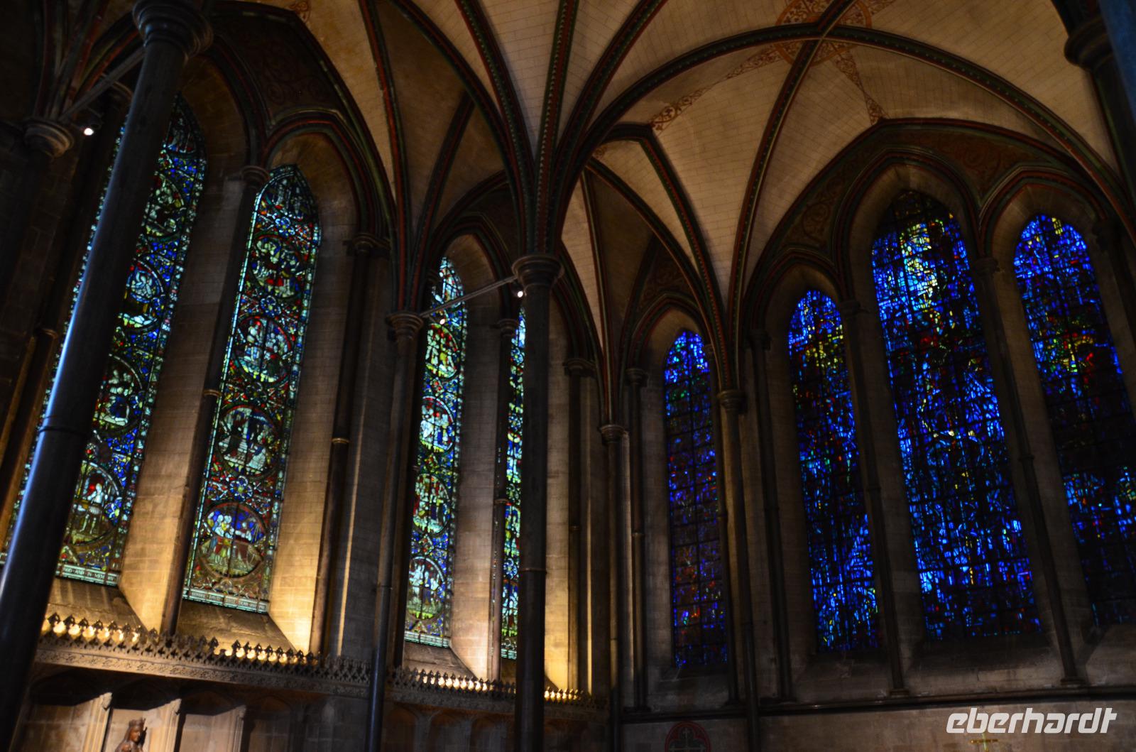 Die Canterbury Cathedral beeindruckte uns dann bei der Besichtigung mit ihrem riesigen Langhaus, den herrliche bemalten Bleiglasfenstern und der Ausstrahlung der verschiedenen Epochen der englischen Gotik, die diese herrliche Kirche beeindruckend widerspiegelt. Nach etwas Freizeit für einen schönen Cafebesuch oder einen kleinen Bummel durch die Geschäfte, fuhren wir nach London weiter und hier zuerst zum Greenwich Park. Wir spazierten durch den Park und zum Königlichen Observatorium mit dem Null Meridian und der schöne Aussicht auf die City von London.