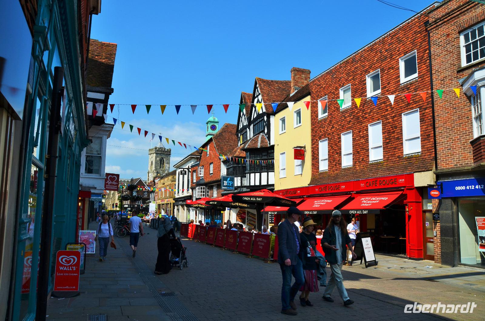 Sonnenschein weckte uns am Morgen und nach gutem Frühstück fuhren wir zum Fährhafen nach Calais. Die Fähre von DFDS Seaways brachte uns sicher an die Kreideküste von Dover. Wir hissten der Britischen Flagge und machten den ersten Abstecher, einmal um das Castle von Dover. Danach die Weiterfahrt nach Canterbury, wo wir am Mittag ankamen und gemeinsam ins Stadtzentrum spazierten. Hübsche alte Fachwerkhäuser, das alte Kloster, die Hugenottenhäuser, der Normannische Burgfried, das West Gate, der Markt und schließlich die Kathedrale waren die Ziele auf unserem Weg.