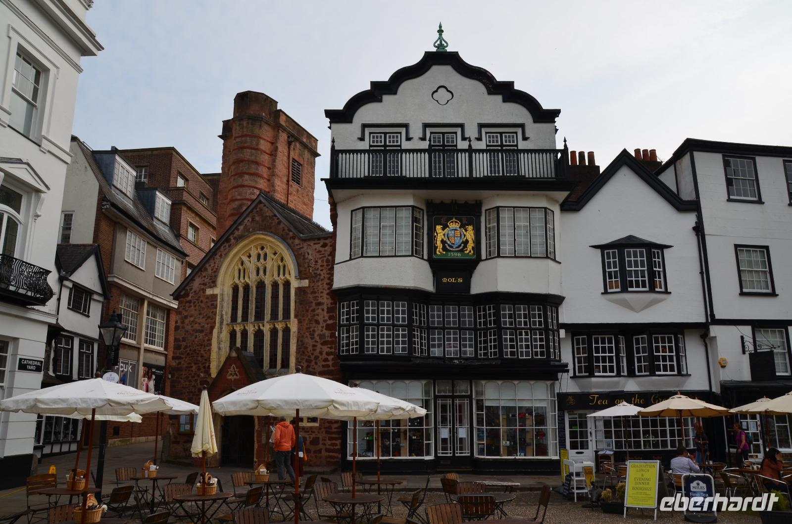 Nach deftigem englischem Frühstück fahren wir ins Stadtzentrum von Exeter. Hier unternehmen wir einen kleinen Spaziergang um ein paar Sehenswürdigkeiten dieser historischen Stadt aufzusuchen: Die alte Schifferkneipe Ship´s Inn, in der schon Sir Francis Drake verkehrte, die Klosterruine, das alte Rathaus, die Kapitelhäuser, die Kathedrale mit ihrer schönen und figurenreichen Westfassade, die Stadtmauer und der alte Hafen sind unsere Ziele beim Rundgang.