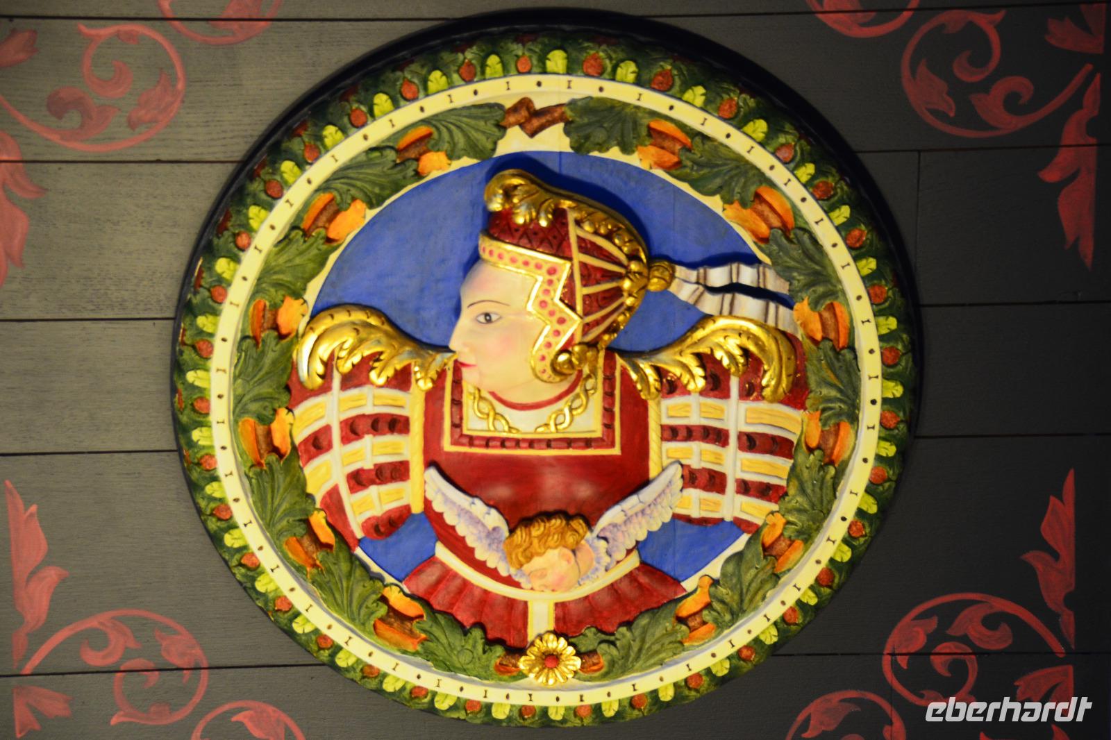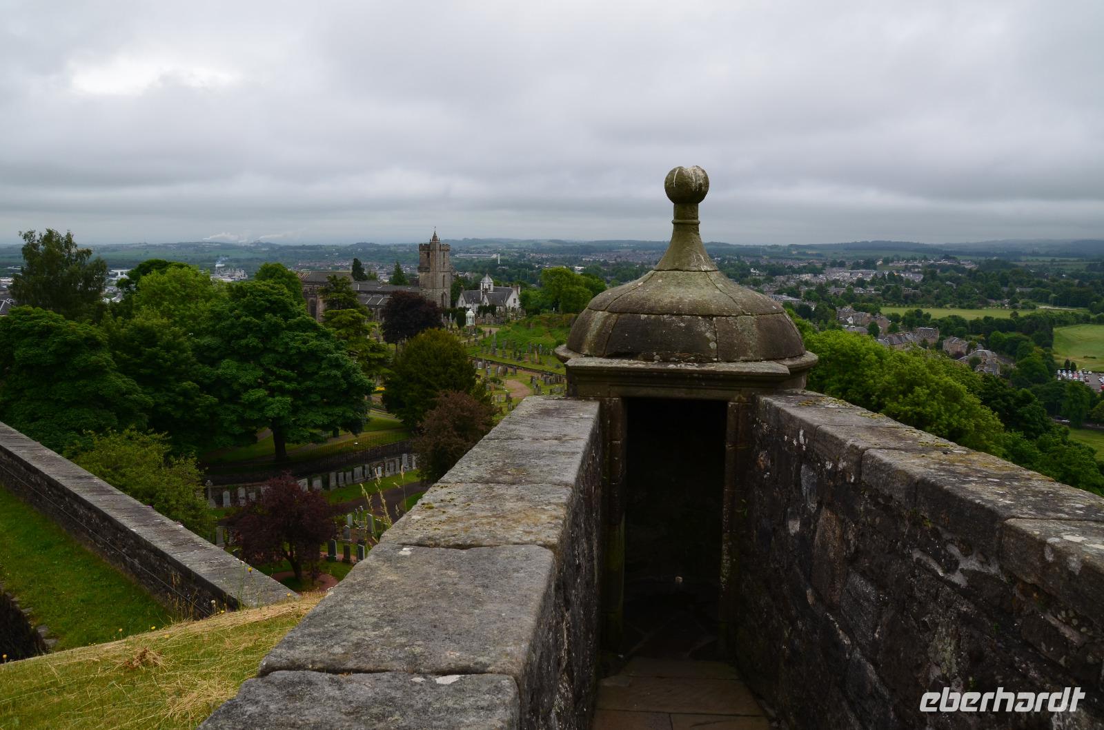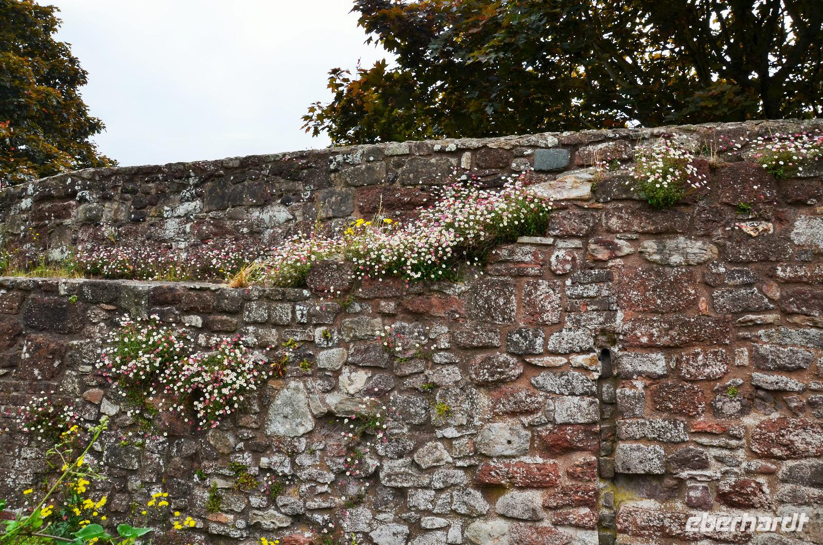 Wir spazieren auf die Stadtmauer, mit Blick zur Burg und über die Dächer der kleinen Stadt.