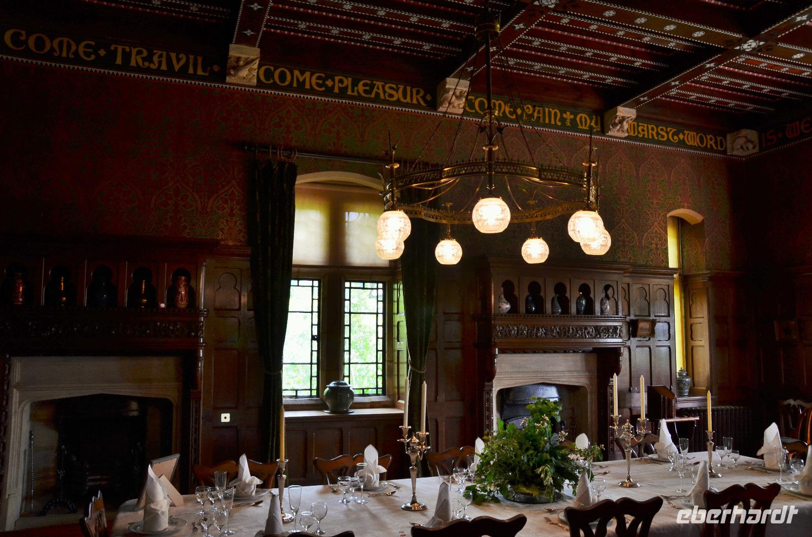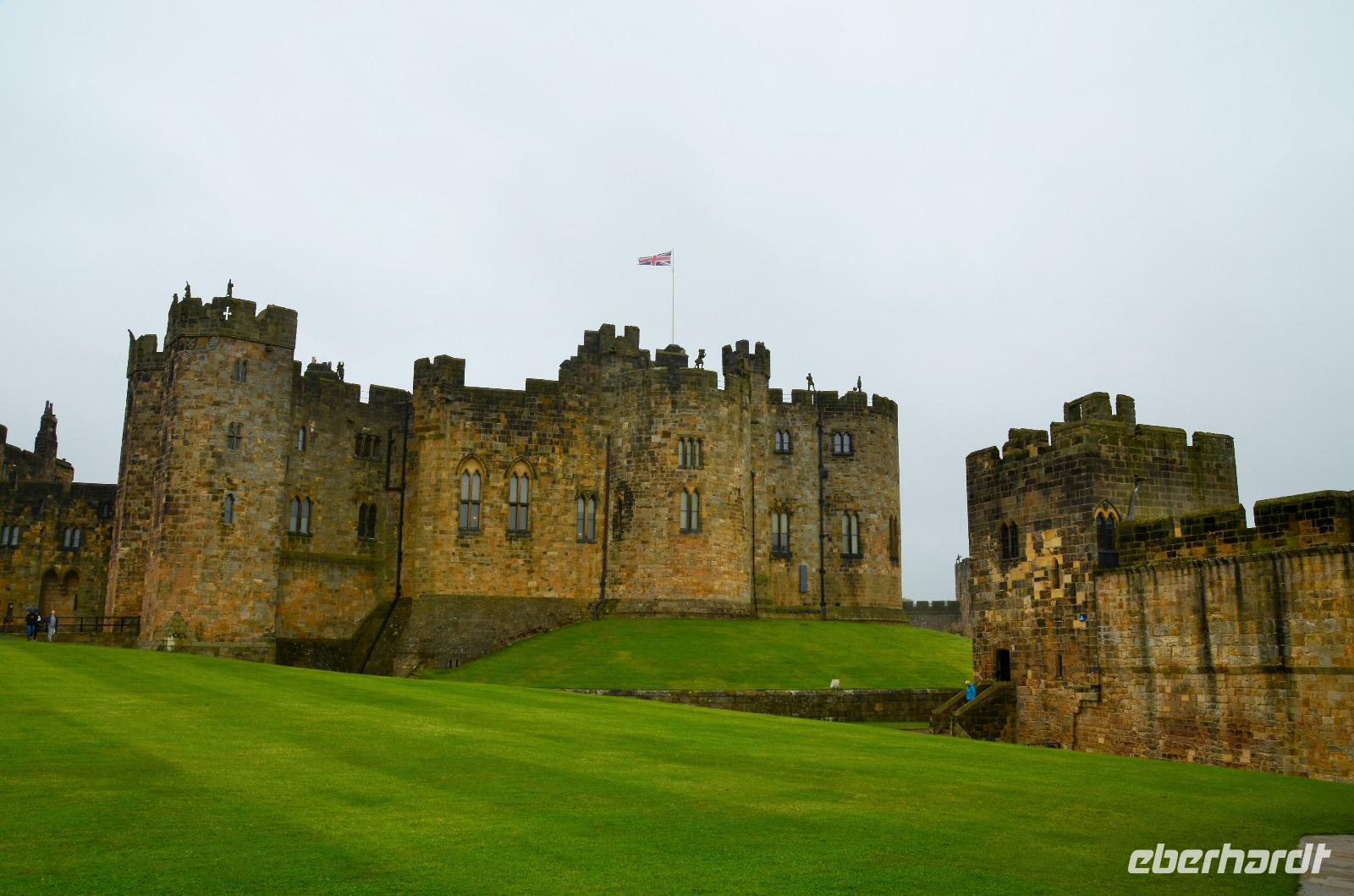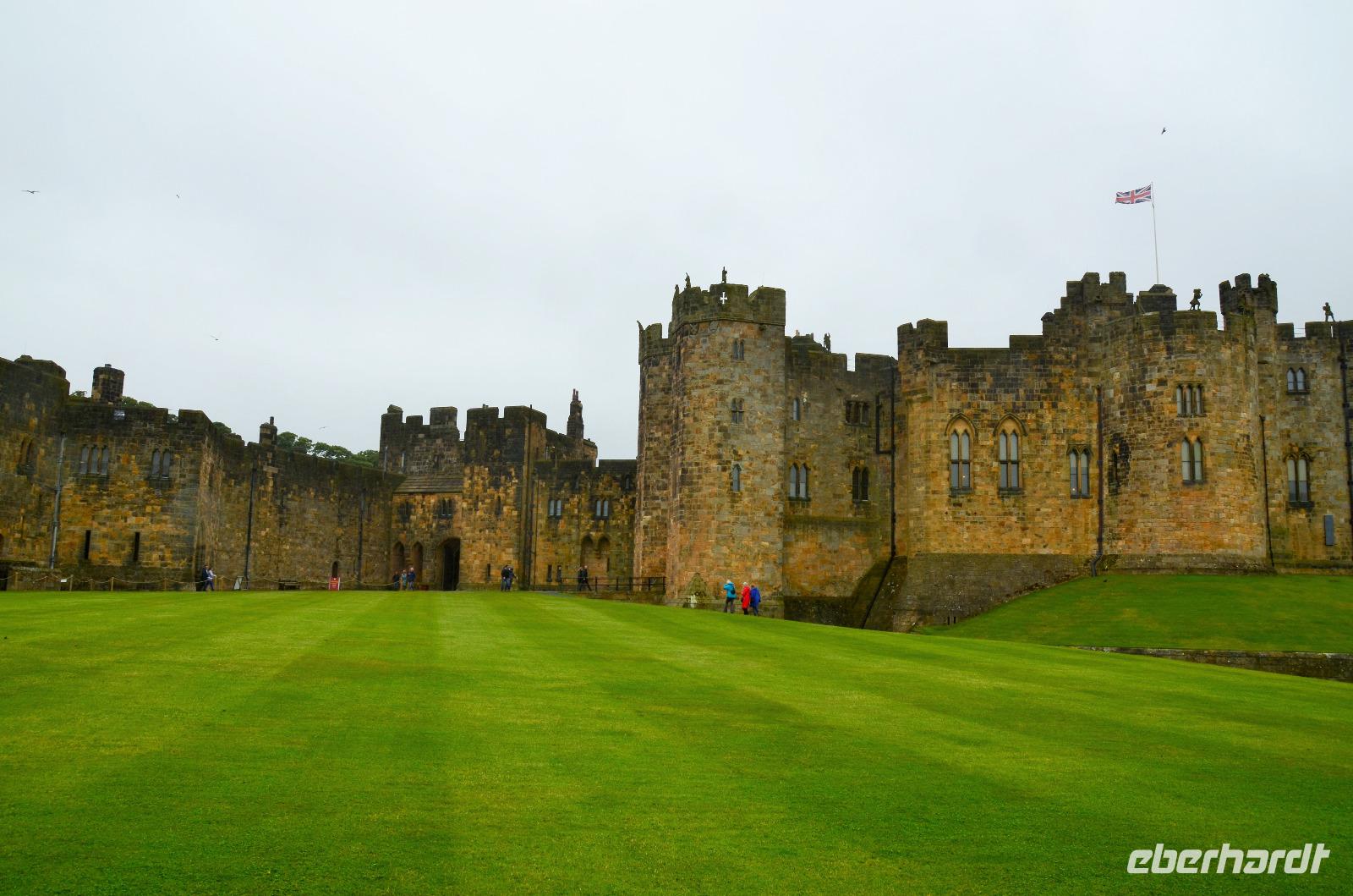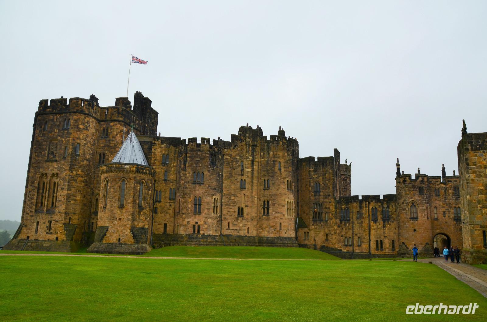 Wir haben wieder Sonnenschein und rollen durch die malerische Landschaft des Tweedtales zur schottischen Ostküste und dort hinunter nach Norththumberland, nach Alnwick. Die Grafen von Norththumberland haben hier ihren beeindruckenden Familiensitz. Die Percy´s, so heißen sie, sind ein Begriff in der englischen Geschichte - mächtig und reich. Davon zeugt bis heute der Familienbesitz - das Alnwick Castle. Mächtige Mauern und Türme beschützen ein beeindruckendes Schloss des englischen Hochadels - dessen Ausstattung mit Stilmöbeln, einer Gemäldesammlung, einer riesigen Bibliothek, einer sehenswerten Waffensammlung, wertvollen Tapeten und phantastischen Holzdecken keine Wünsche offen lässt.