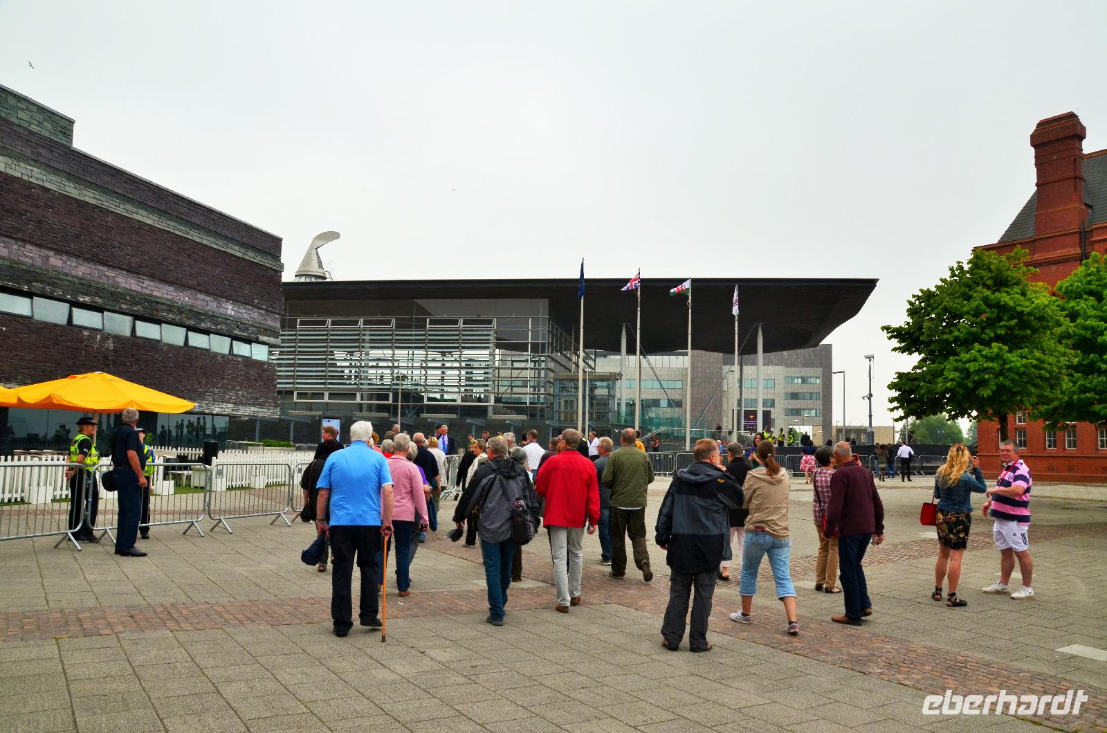 Tony erwartet uns für eine durch ihn geführte Stadtrundfahrt mit anschließendem Stadtrundgang in der walisischen Hauptstadt Cardiff. Er zeigt uns die Neue Hafencity mit dem Konzerthaus bei einem kleinen Rundgang. Im Parlamentsgebäude steht gerade die Eröffnung für die neue Legislaturperiode bevor und die Queen wird teilnehmen.