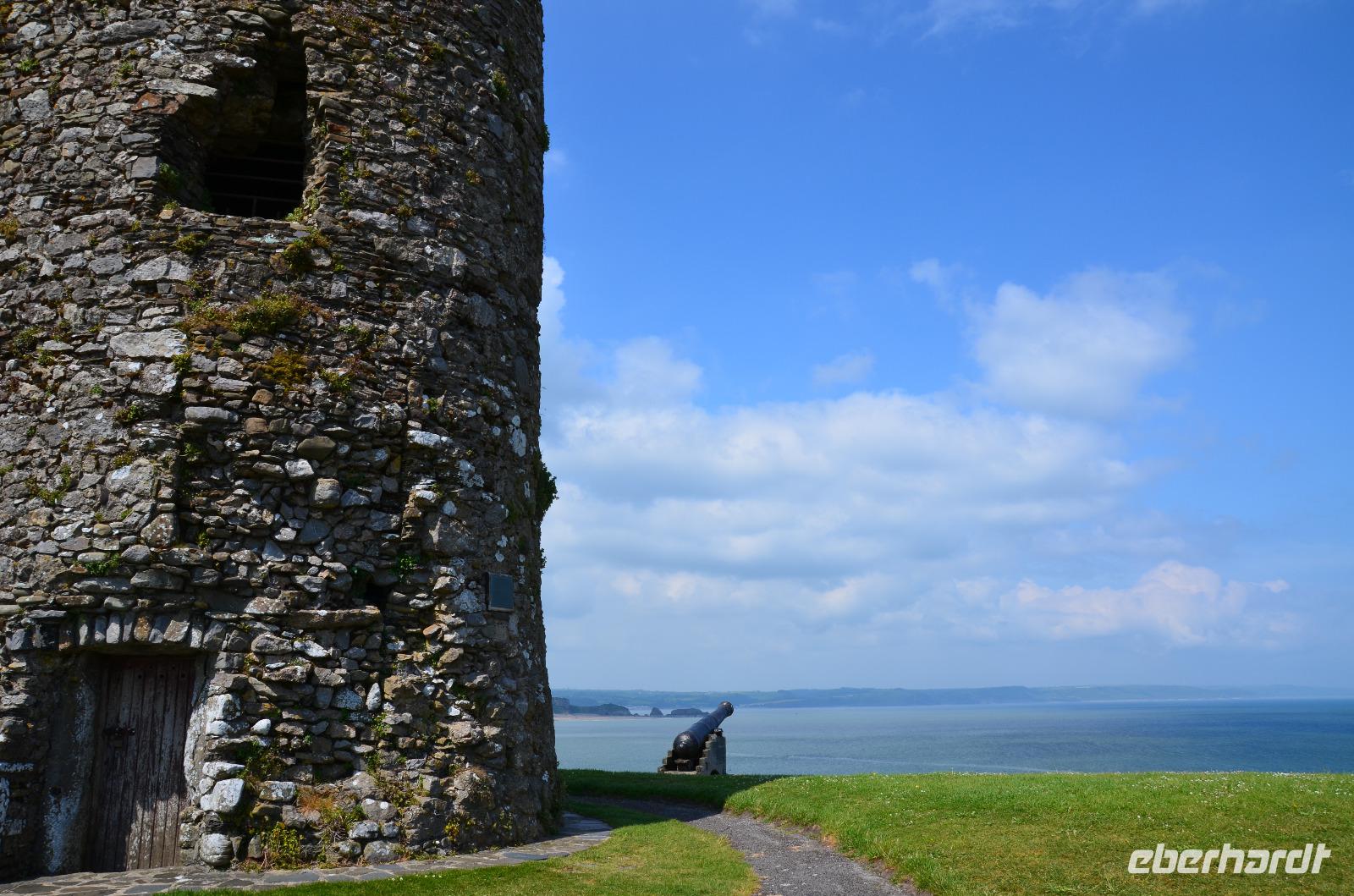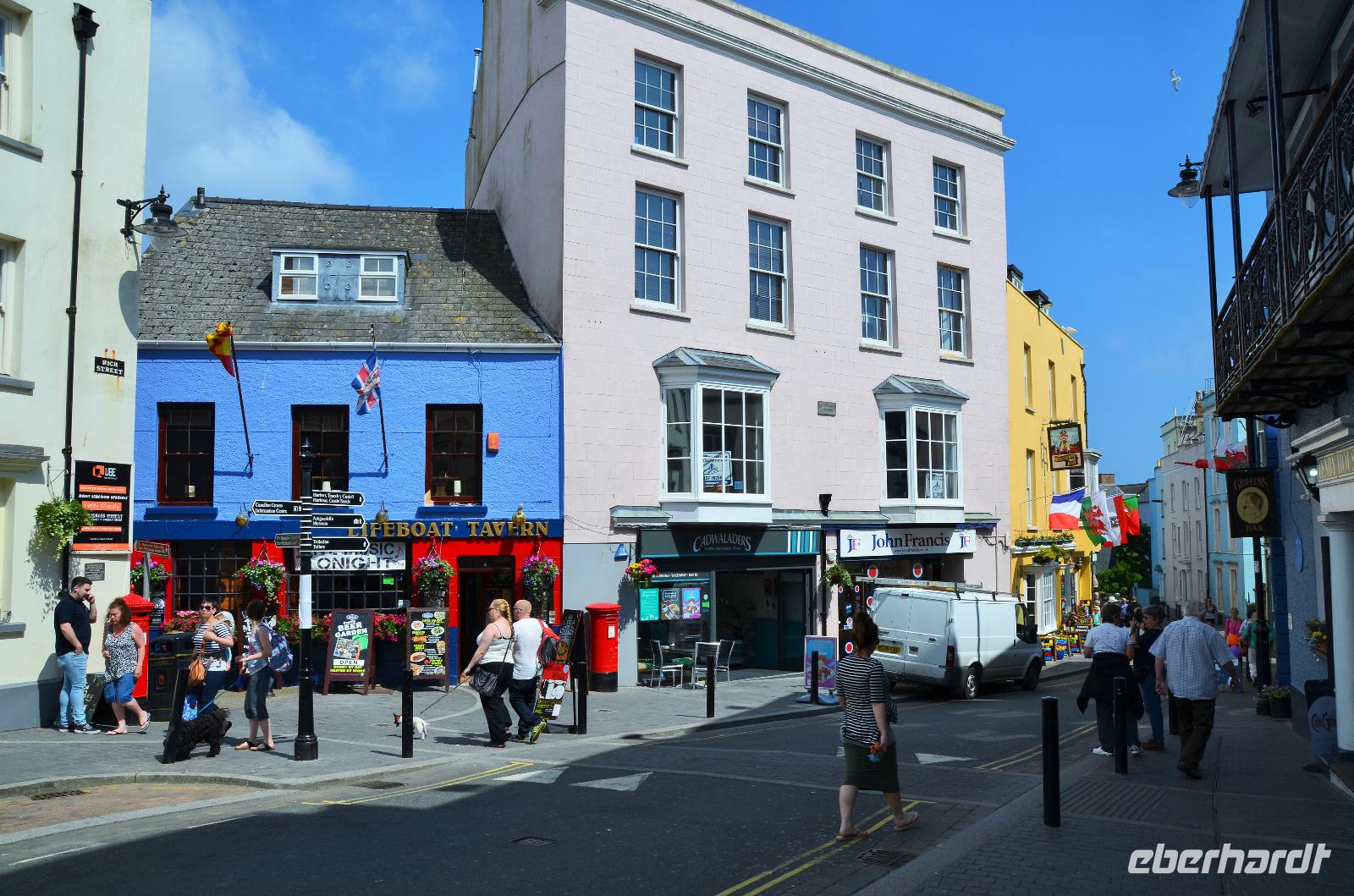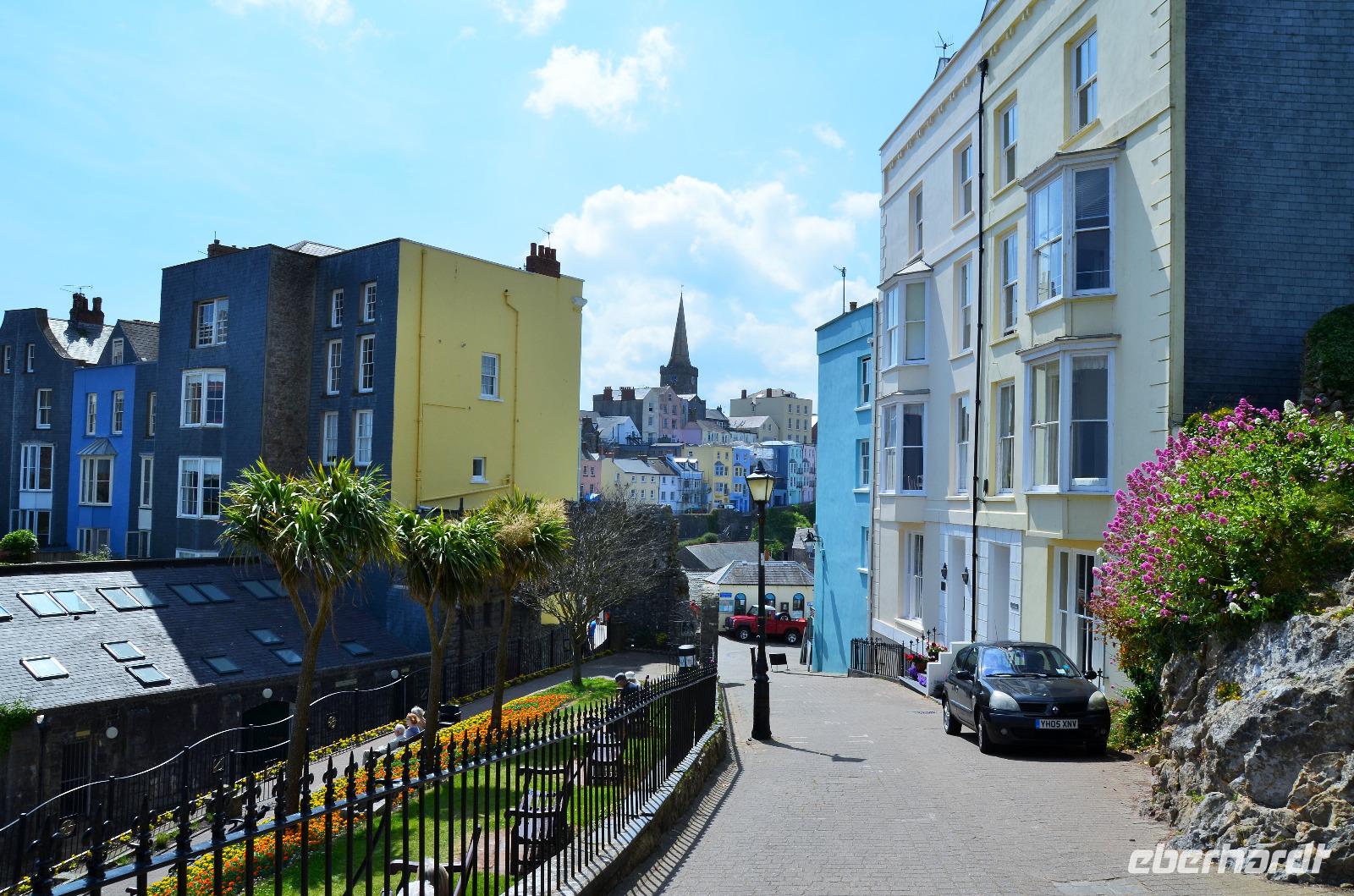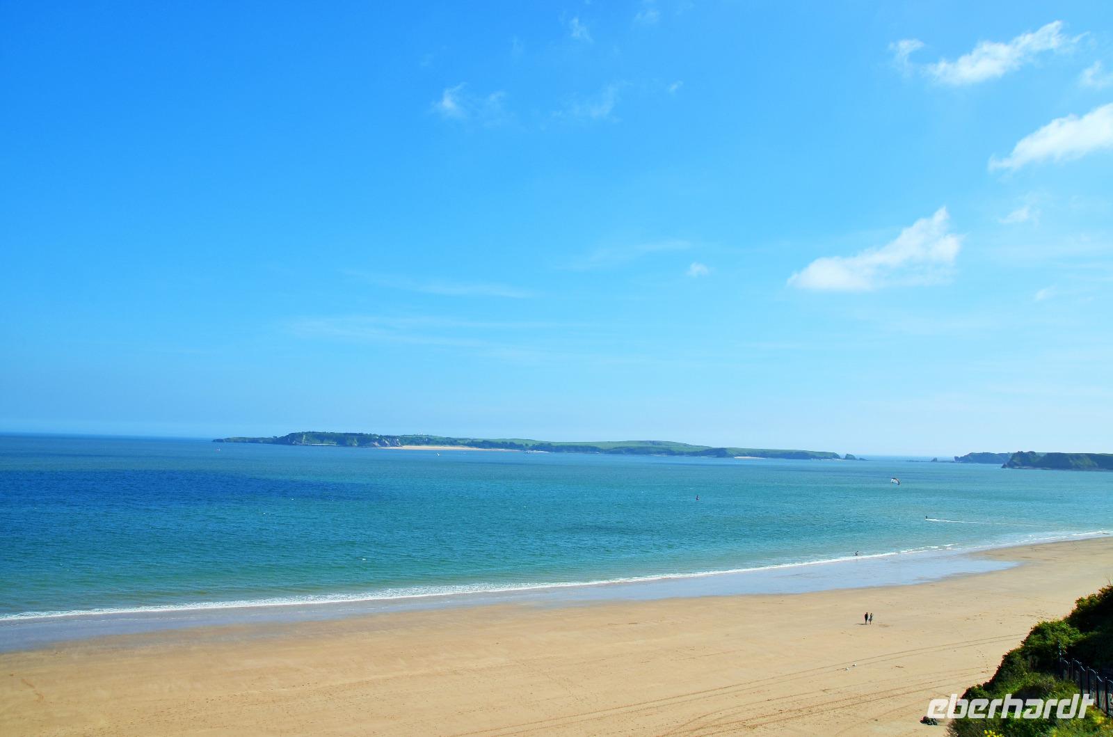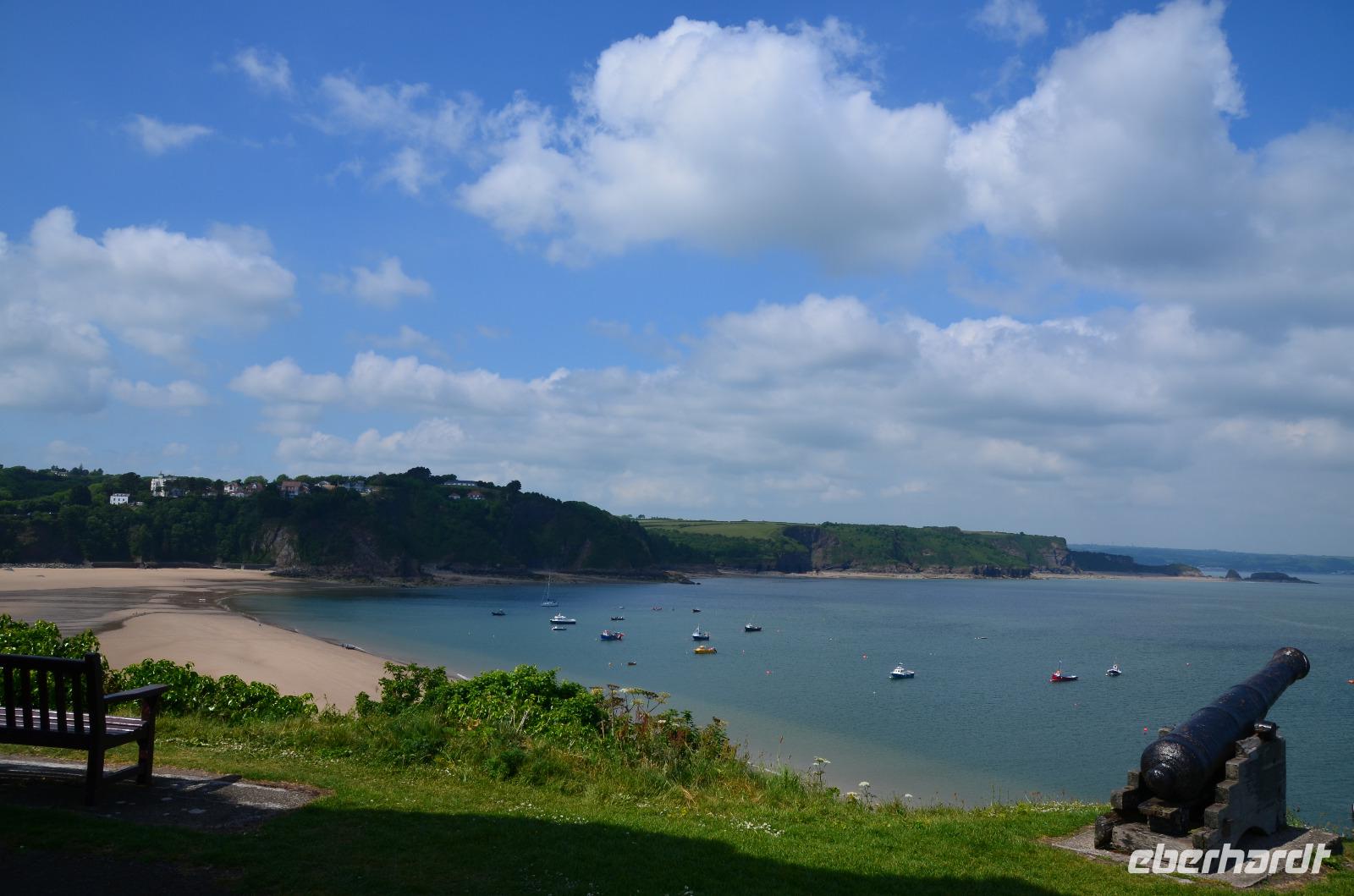 Nun lockt es uns aber auch noch an die romantische Küste und so fahren wir nach Tenby, an die walisische Riviera weiter. Tenby, ein hübscher Badeort mit alter Stadtmauer, hübschen belebten Gassen, einer alten Festung auf einem Felsvorsprung, herrlichen Stränden und felsiger Steilküste gefällt uns mit seinen bunten Häusern und lebendigen Gassen sofort. Die Ebbe lässt gerade viel Platz für einen Strandspaziergang.
