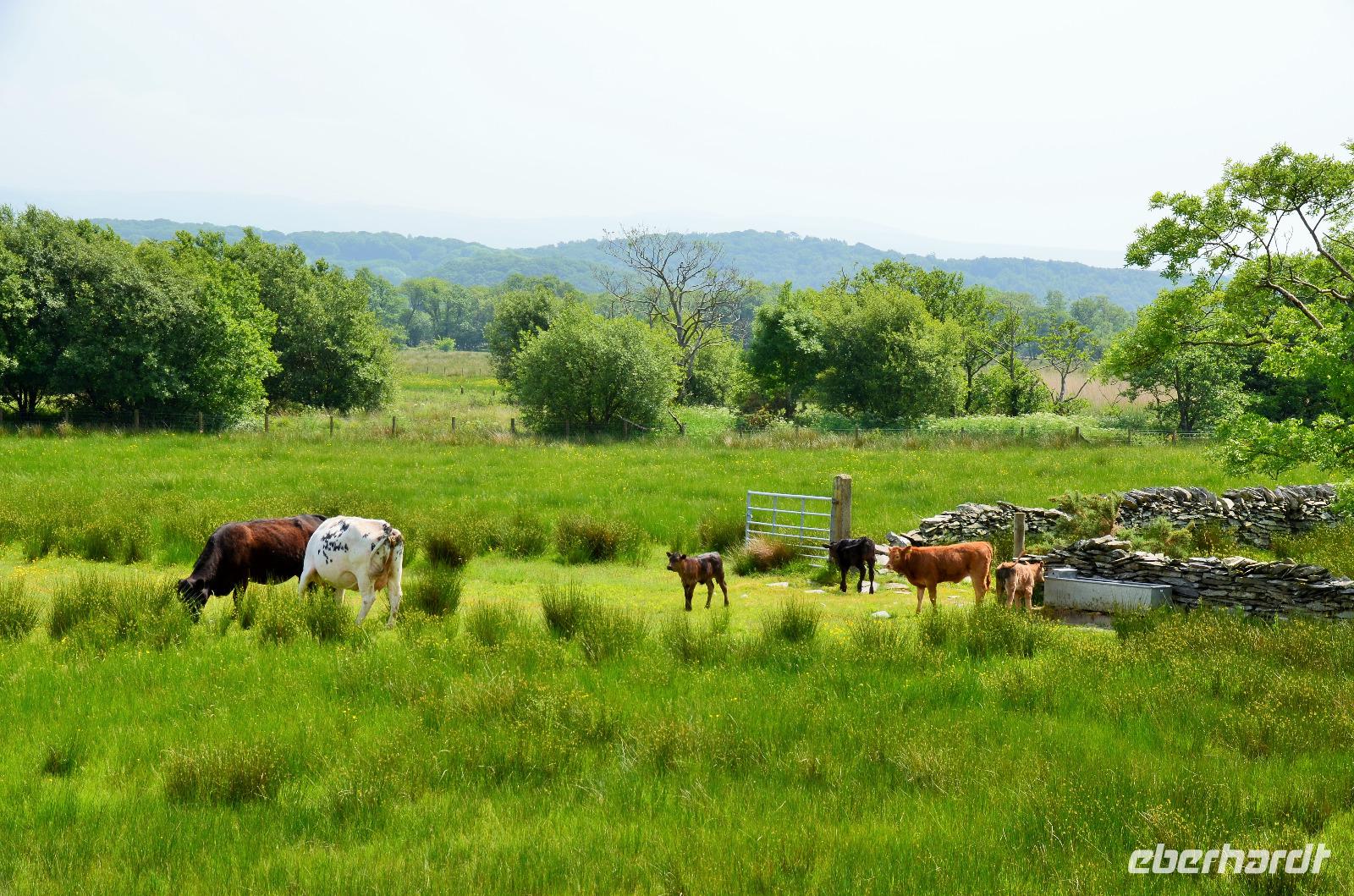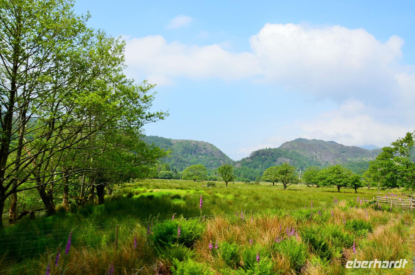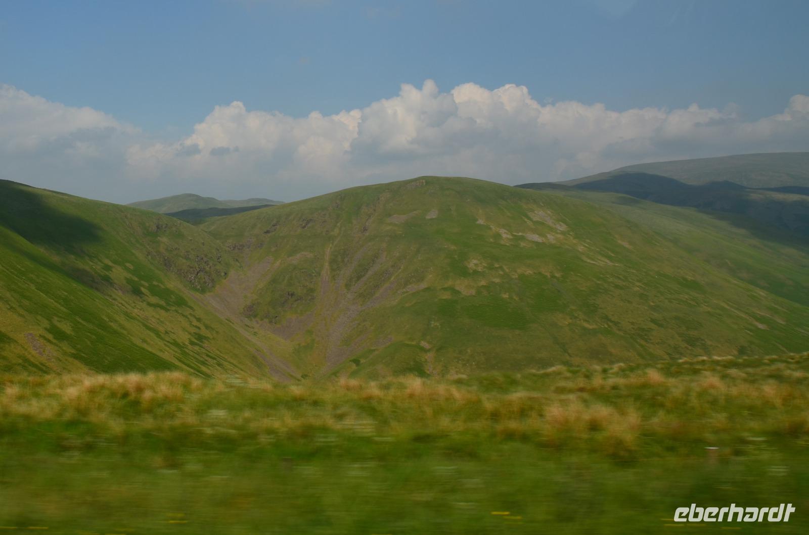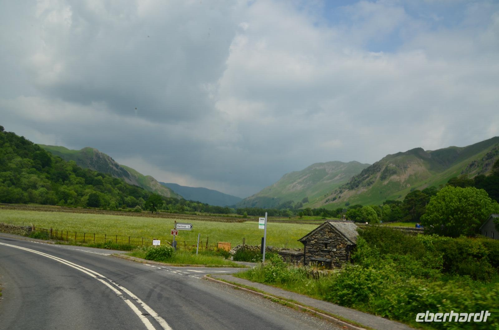 Vom Ufer diese hübschen Ortes geht die Weiterfahrt hinauf in die Berge und zum nördlichen Lake District. Zuerst zurück nach Windermere, dann links hinauf zum Kirkstone Pass, wo wir die Aussicht genießen und Mittag machen. Von hier geht es wieder hinab zu den Bruderseen und dann entlang am Lake Ullswater Richtung Penrith, schließlich nach Schottland - nach Gretna Green.