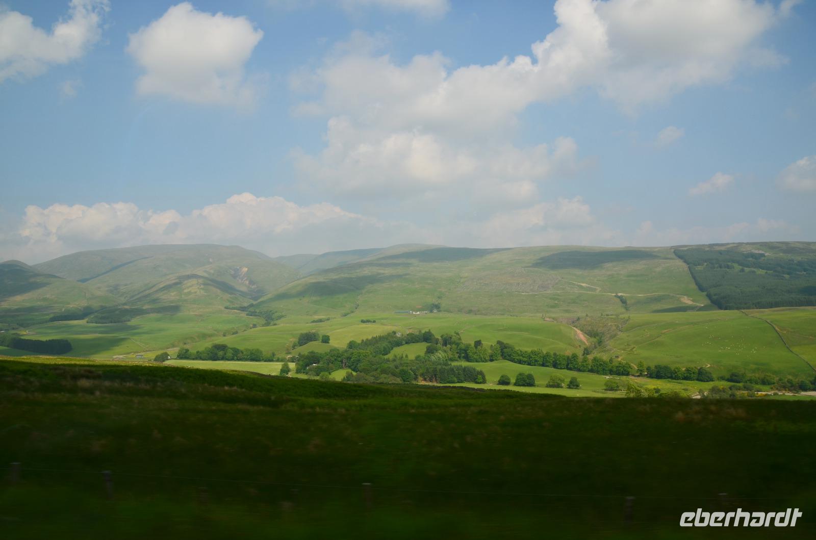 Durch das landschaftlich sehr schöne obere Tal des Tweed und dann entlang der Pentland Hills erreichen wir am Abend die schottische Hauptstadt Edinburgh.