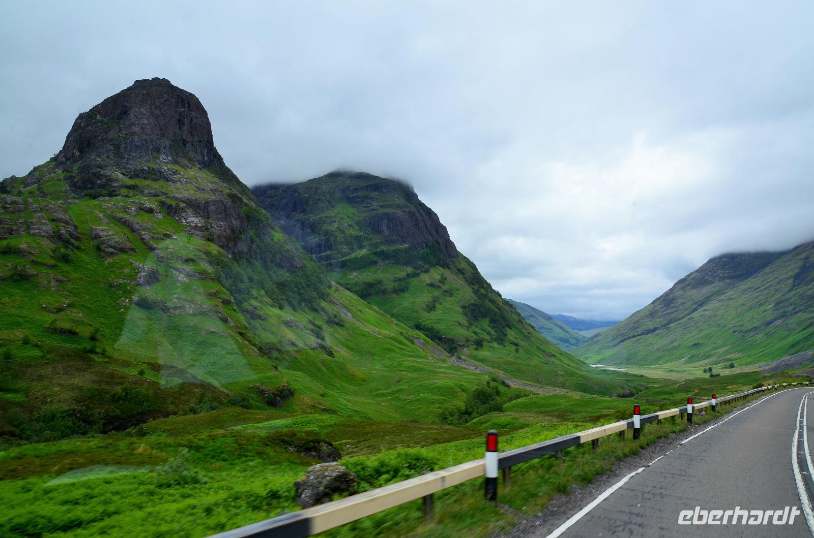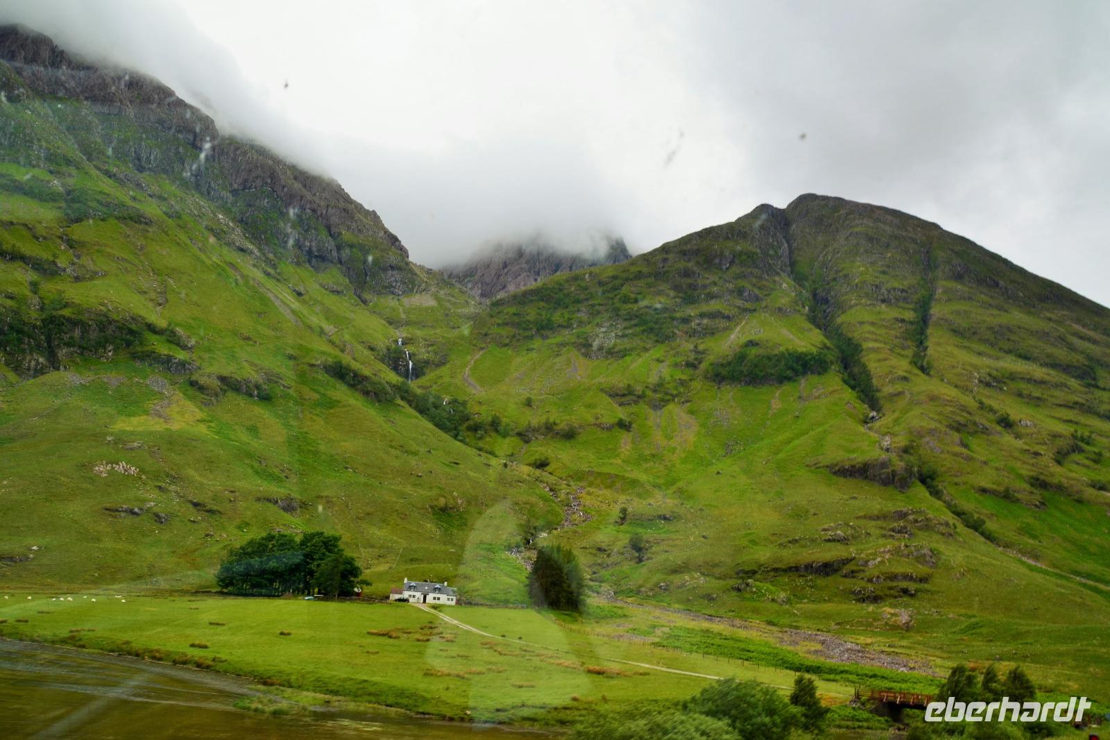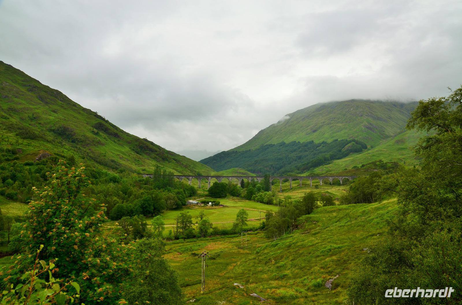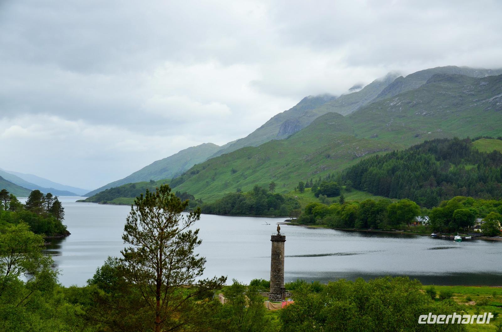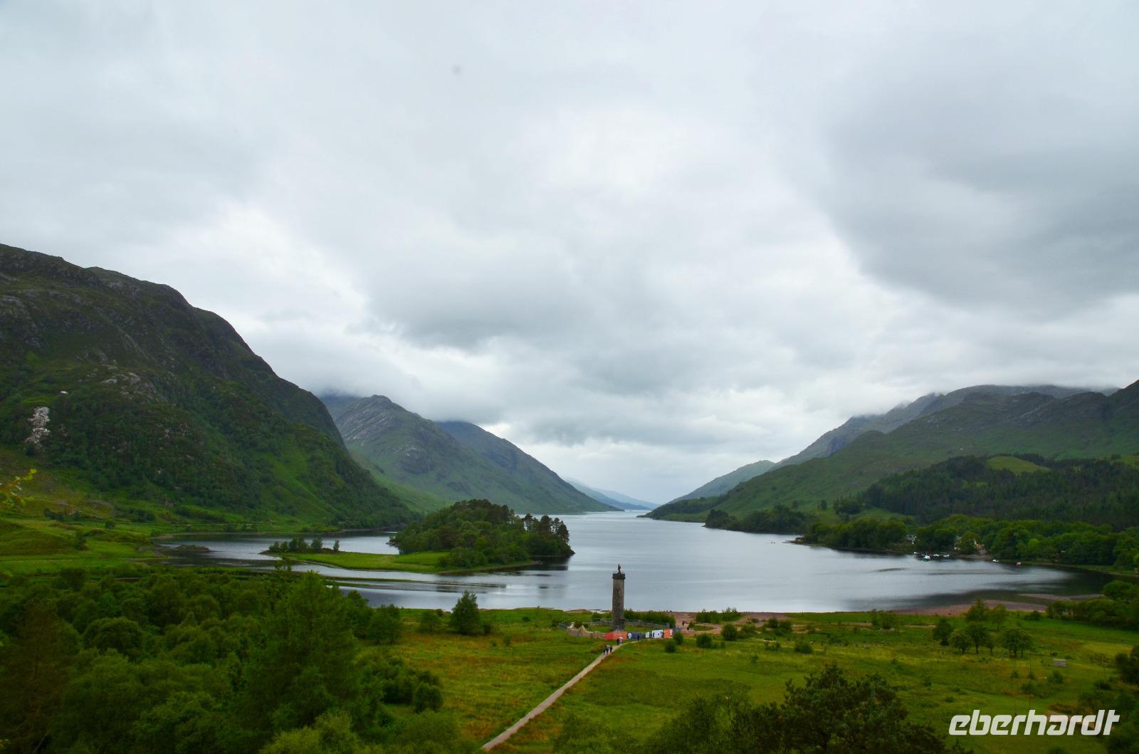 Die Weiterfahrt führt uns über Callander hinein in den Trossachs Nationalpark, mit einem Abstecher nach Killin, zu den Falls of Dochart. Dann fahren wir weiter in die Highlands und nach Glencoe. Unterwegs bieten sich unzählige weitere Fotostopps, so an der schönen Aussicht nach Tyndrum, oberhalb des Loch Tulla, am Rannoch Moor und mehrfach im Glen Coe. Am Nachmittag erreichen wir Fort William, fahren durch den Ort weiter nach Glenfinnian. Hier unternehmen wir an diesem schönen Nachmittag einen kleinen Spaziergang hinauf zum Aussichtshügel, von dem der berühmte Eisenbahnviadukt schön zu sehen ist. Hier öffnet sich auch der schönste Blick auf den Loch Shiel mit dem Monument.