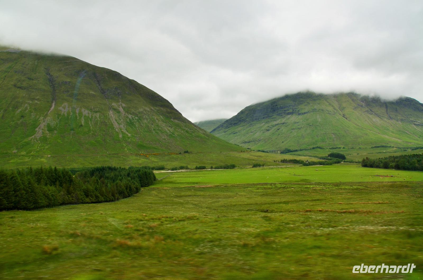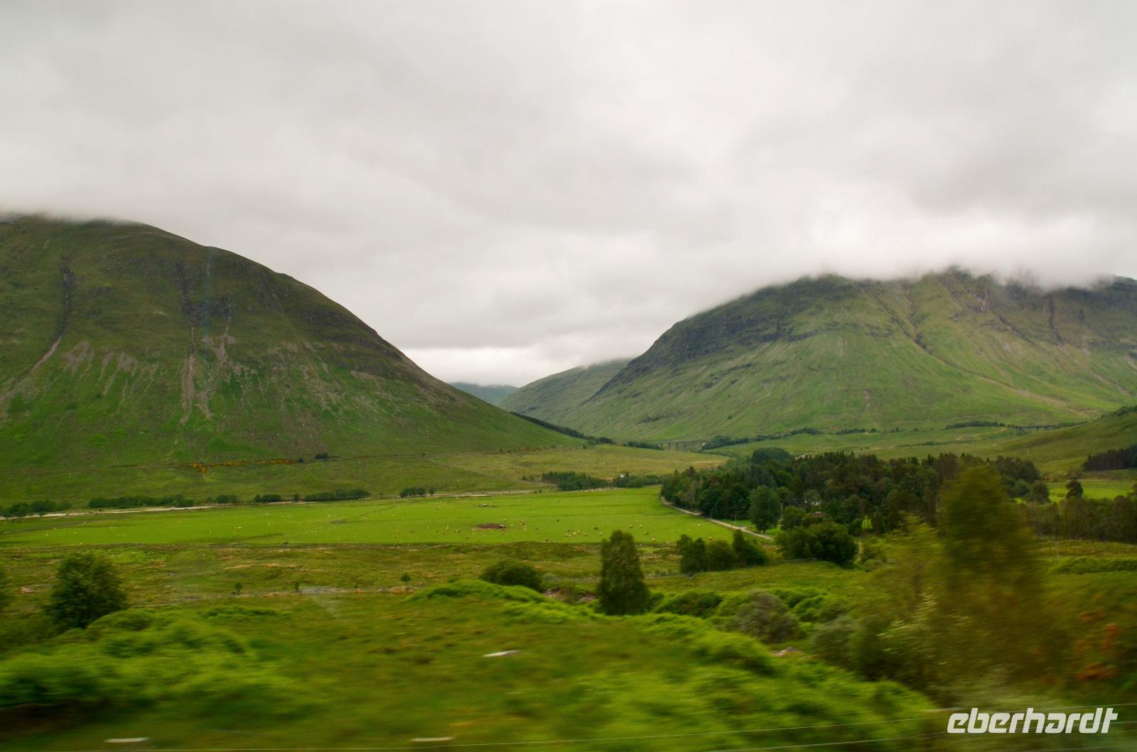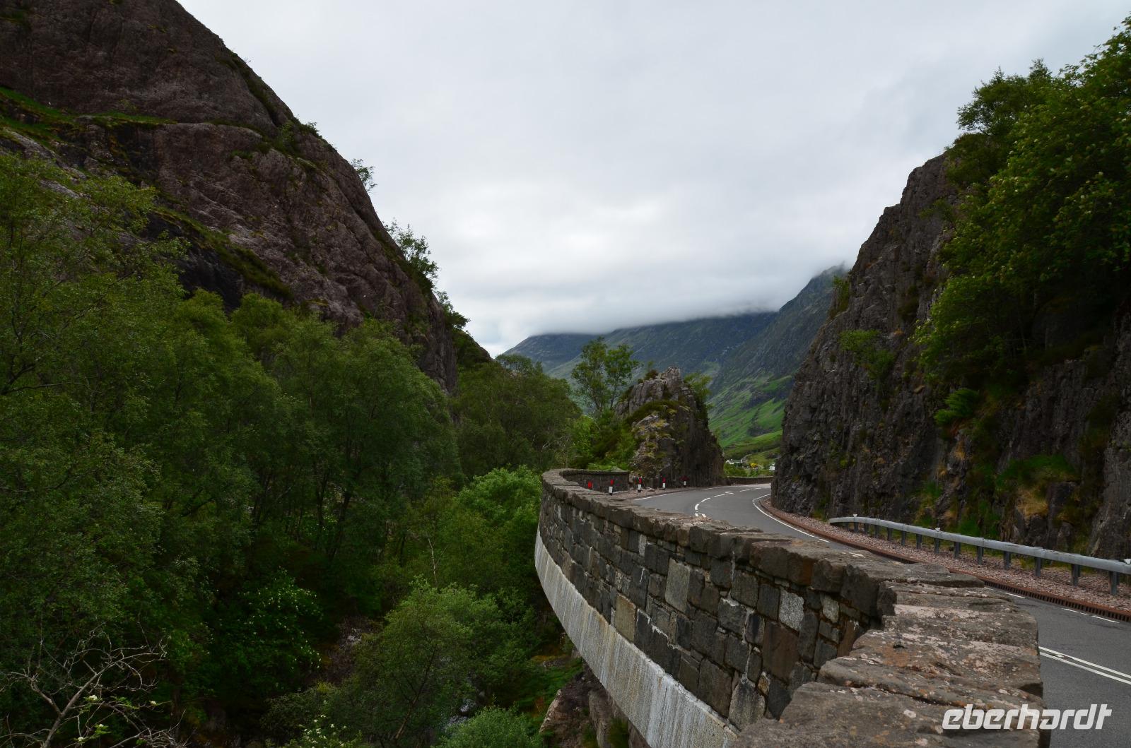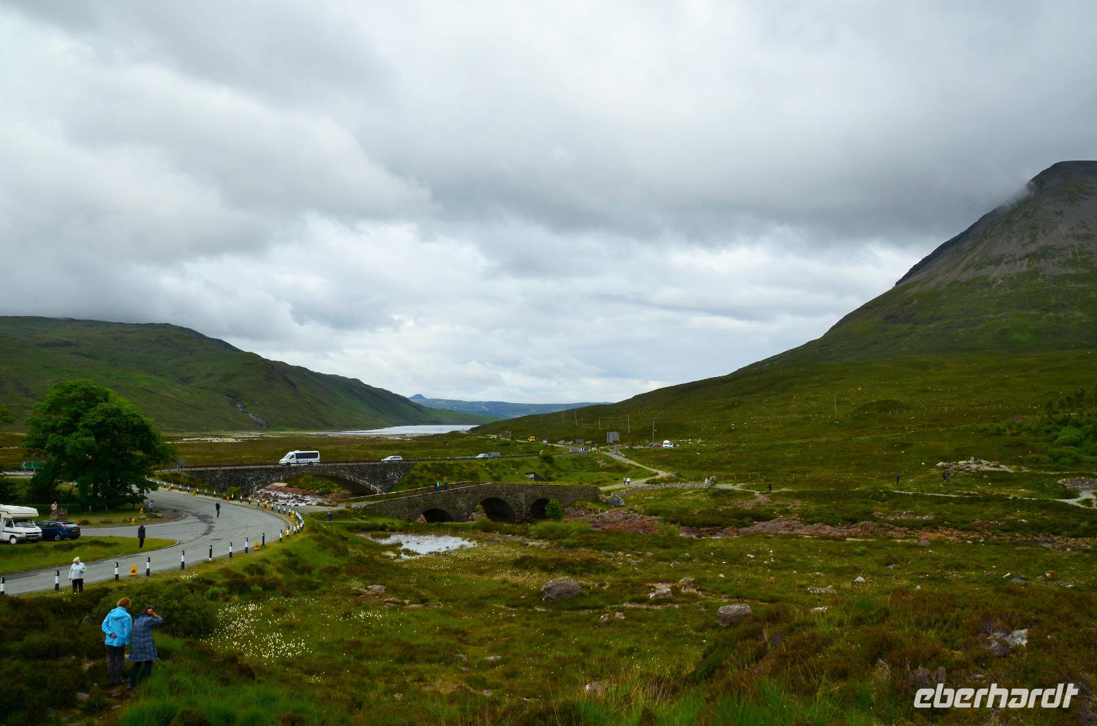 Die Weiterfahrt führt uns über Callander hinein in den Trossachs Nationalpark, mit einem Abstecher nach Killin, zu den Falls of Dochart. Dann fahren wir weiter in die Highlands und nach Glencoe. Unterwegs bieten sich unzählige weitere Fotostopps, so an der schönen Aussicht nach Tyndrum, oberhalb des Loch Tulla, am Rannoch Moor und mehrfach im Glen Coe. Am Nachmittag erreichen wir Fort William, fahren durch den Ort weiter nach Glenfinnian. Hier unternehmen wir an diesem schönen Nachmittag einen kleinen Spaziergang hinauf zum Aussichtshügel, von dem der berühmte Eisenbahnviadukt schön zu sehen ist. Hier öffnet sich auch der schönste Blick auf den Loch Shiel mit dem Monument.