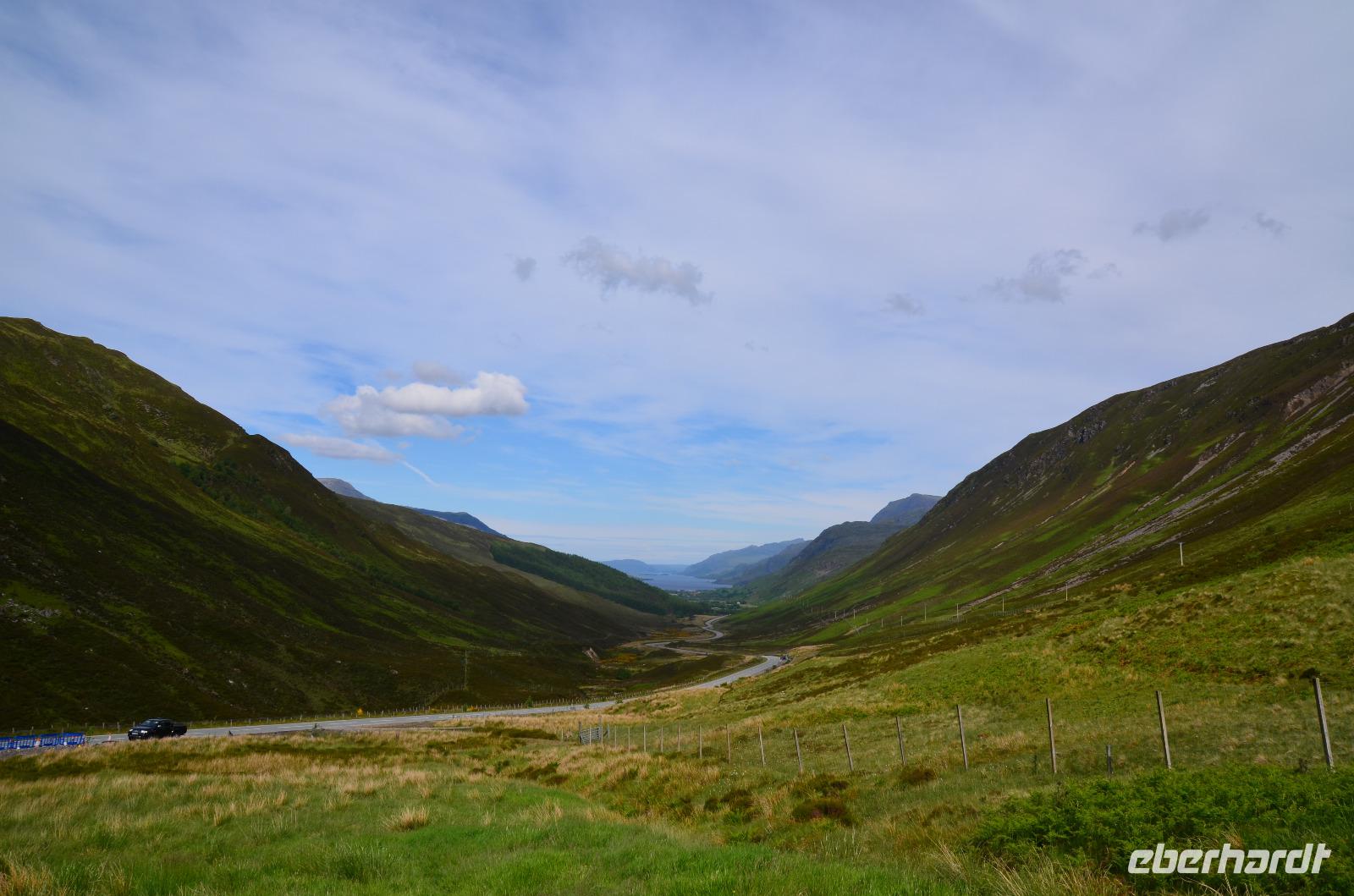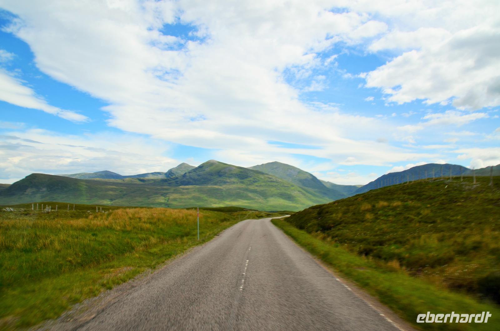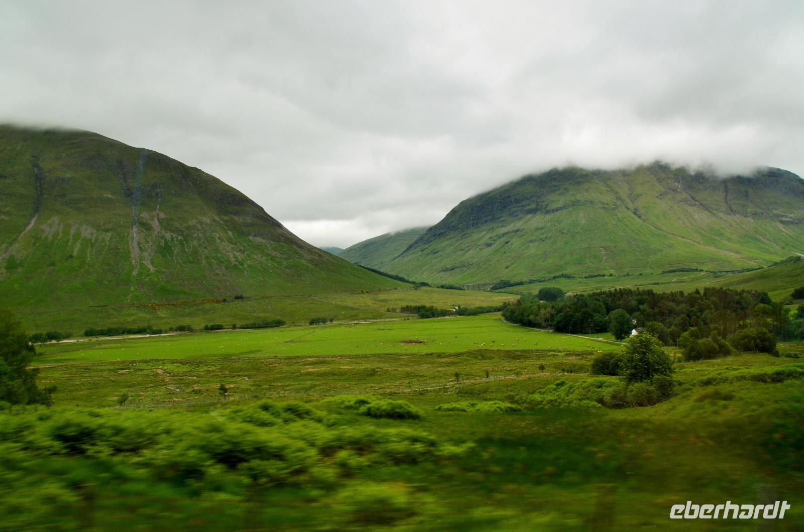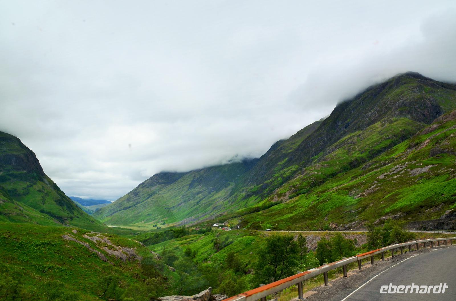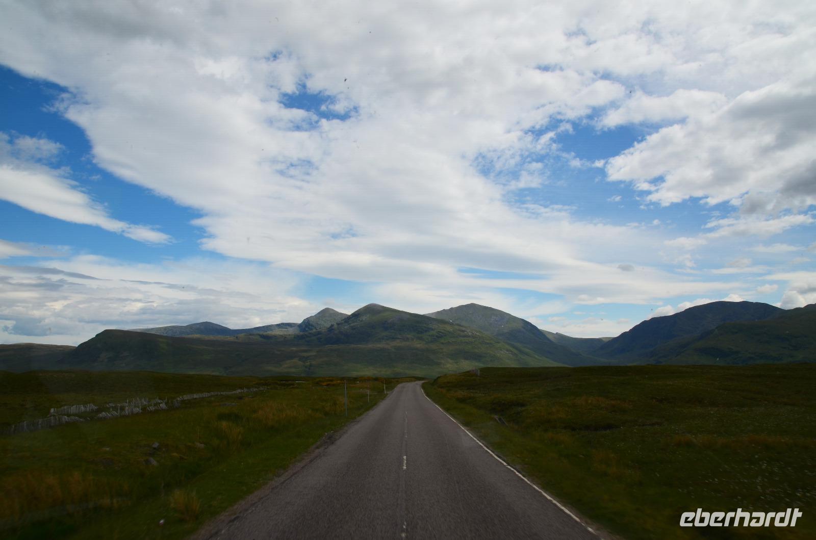 Die Weiterfahrt führt uns über Callander hinein in den Trossachs Nationalpark, mit einem Abstecher nach Killin, zu den Falls of Dochart. Dann fahren wir weiter in die Highlands und nach Glencoe. Unterwegs bieten sich unzählige weitere Fotostopps, so an der schönen Aussicht nach Tyndrum, oberhalb des Loch Tulla, am Rannoch Moor und mehrfach im Glen Coe. Am Nachmittag erreichen wir Fort William, fahren durch den Ort weiter nach Glenfinnian. Hier unternehmen wir an diesem schönen Nachmittag einen kleinen Spaziergang hinauf zum Aussichtshügel, von dem der berühmte Eisenbahnviadukt schön zu sehen ist. Hier öffnet sich auch der schönste Blick auf den Loch Shiel mit dem Monument.