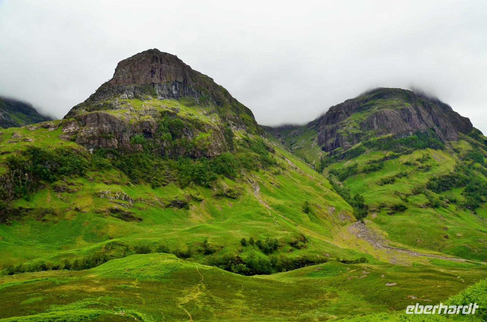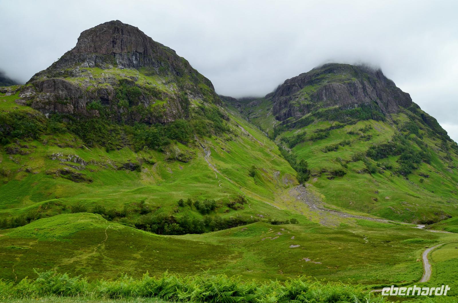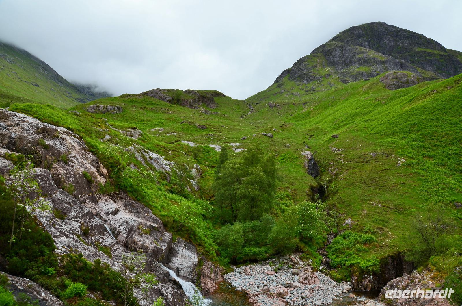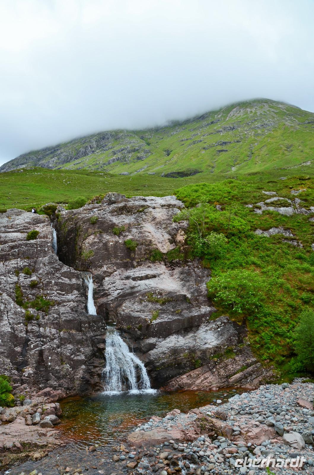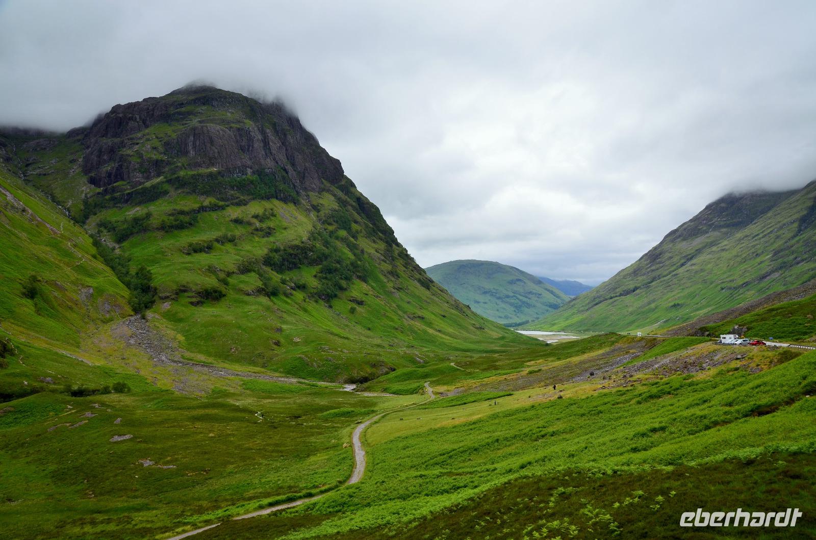 Die Weiterfahrt führt uns über Callander hinein in den Trossachs Nationalpark, mit einem Abstecher nach Killin, zu den Falls of Dochart. Dann fahren wir weiter in die Highlands und nach Glencoe. Unterwegs bieten sich unzählige weitere Fotostopps, so an der schönen Aussicht nach Tyndrum, oberhalb des Loch Tulla, am Rannoch Moor und mehrfach im Glen Coe. Am Nachmittag erreichen wir Fort William, fahren durch den Ort weiter nach Glenfinnian. Hier unternehmen wir an diesem schönen Nachmittag einen kleinen Spaziergang hinauf zum Aussichtshügel, von dem der berühmte Eisenbahnviadukt schön zu sehen ist. Hier öffnet sich auch der schönste Blick auf den Loch Shiel mit dem Monument.