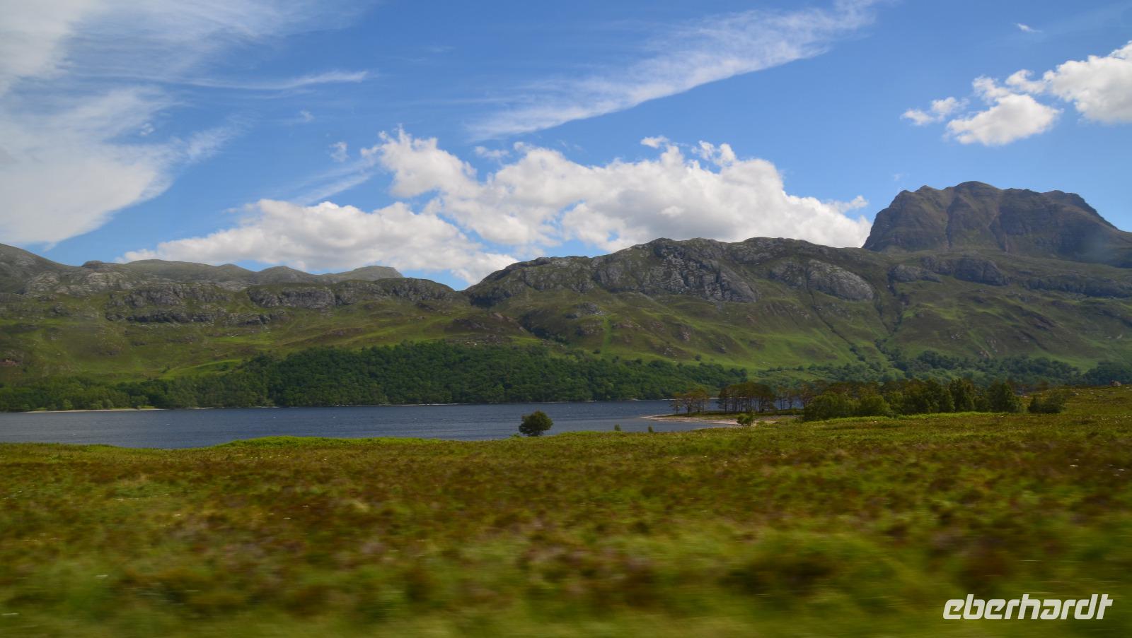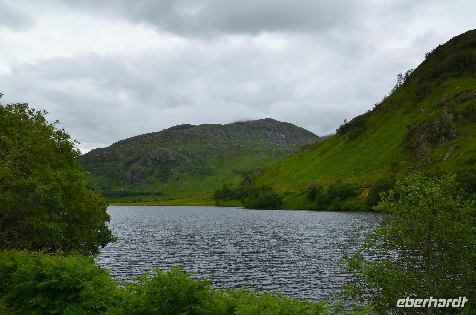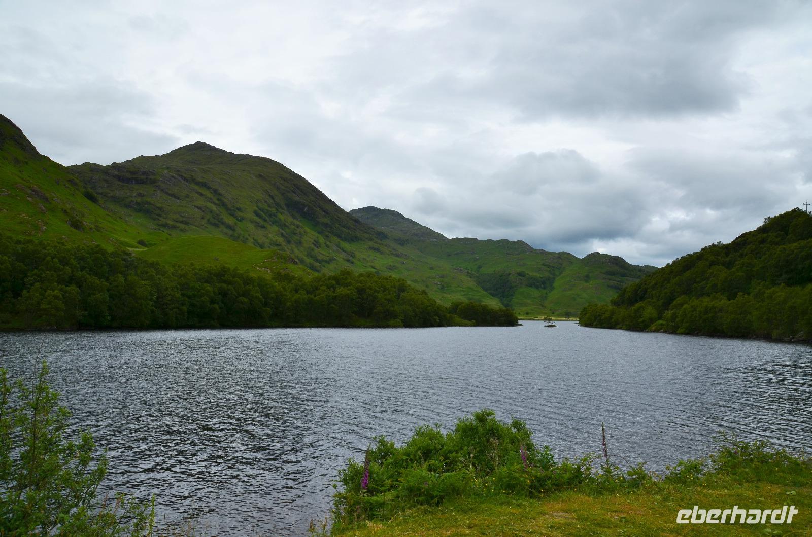 Unten am See dann das Nationalparkcenter „Beinn Eight". Herrliche Seeblicke bieten sich und der mächtige Berg Slioch (980 m) versteckt sich diesmal nicht in den Wolken.
