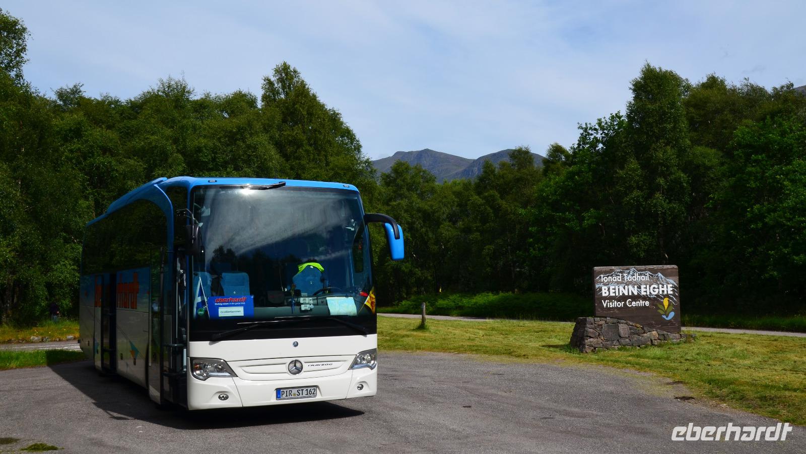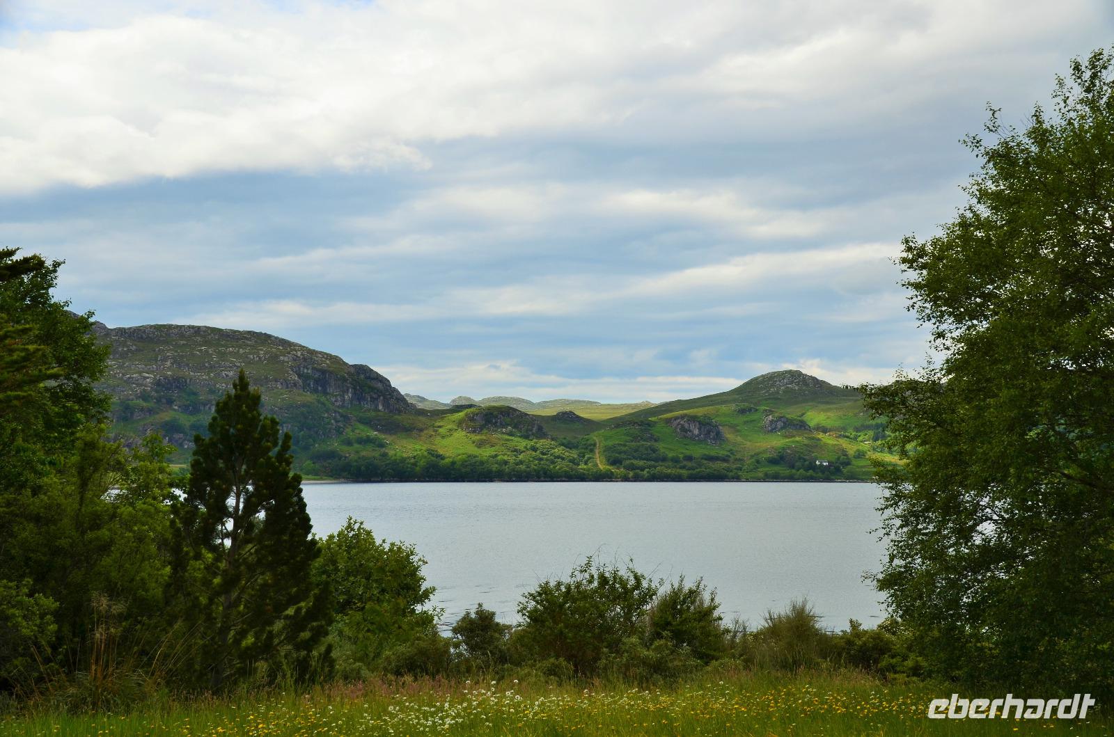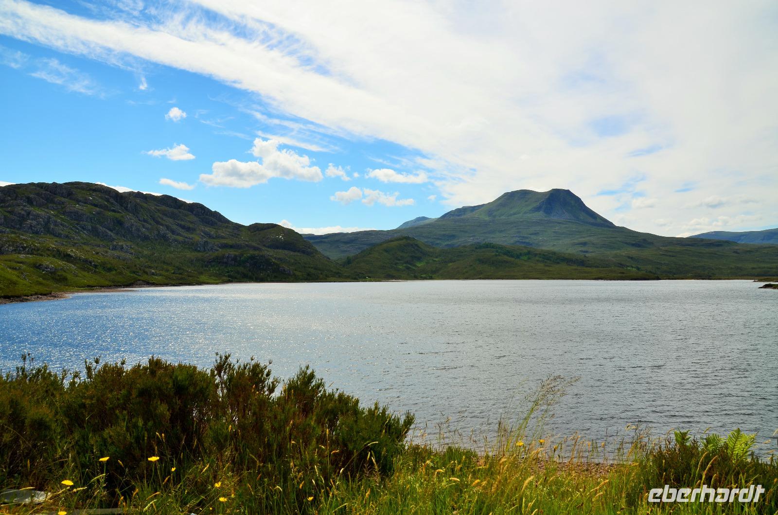 Unten am See dann das Nationalparkcenter „Beinn Eight". Herrliche Seeblicke bieten sich und der mächtige Berg Slioch (980 m) versteckt sich diesmal nicht in den Wolken.