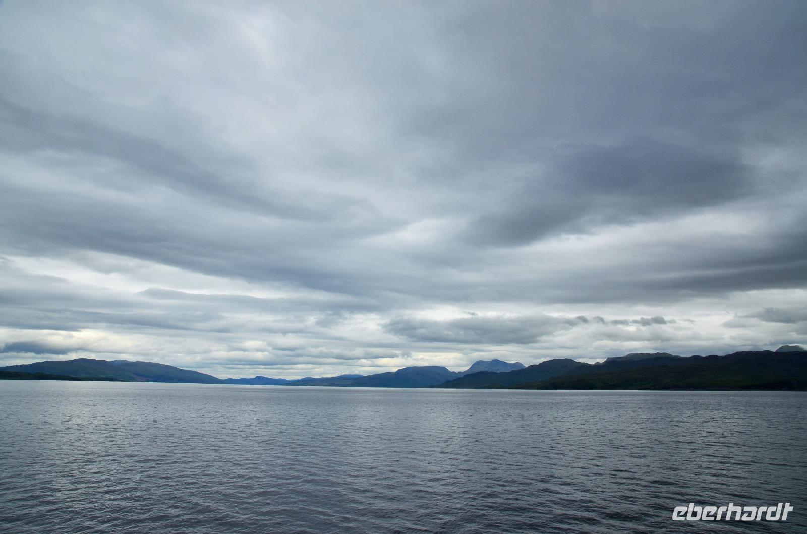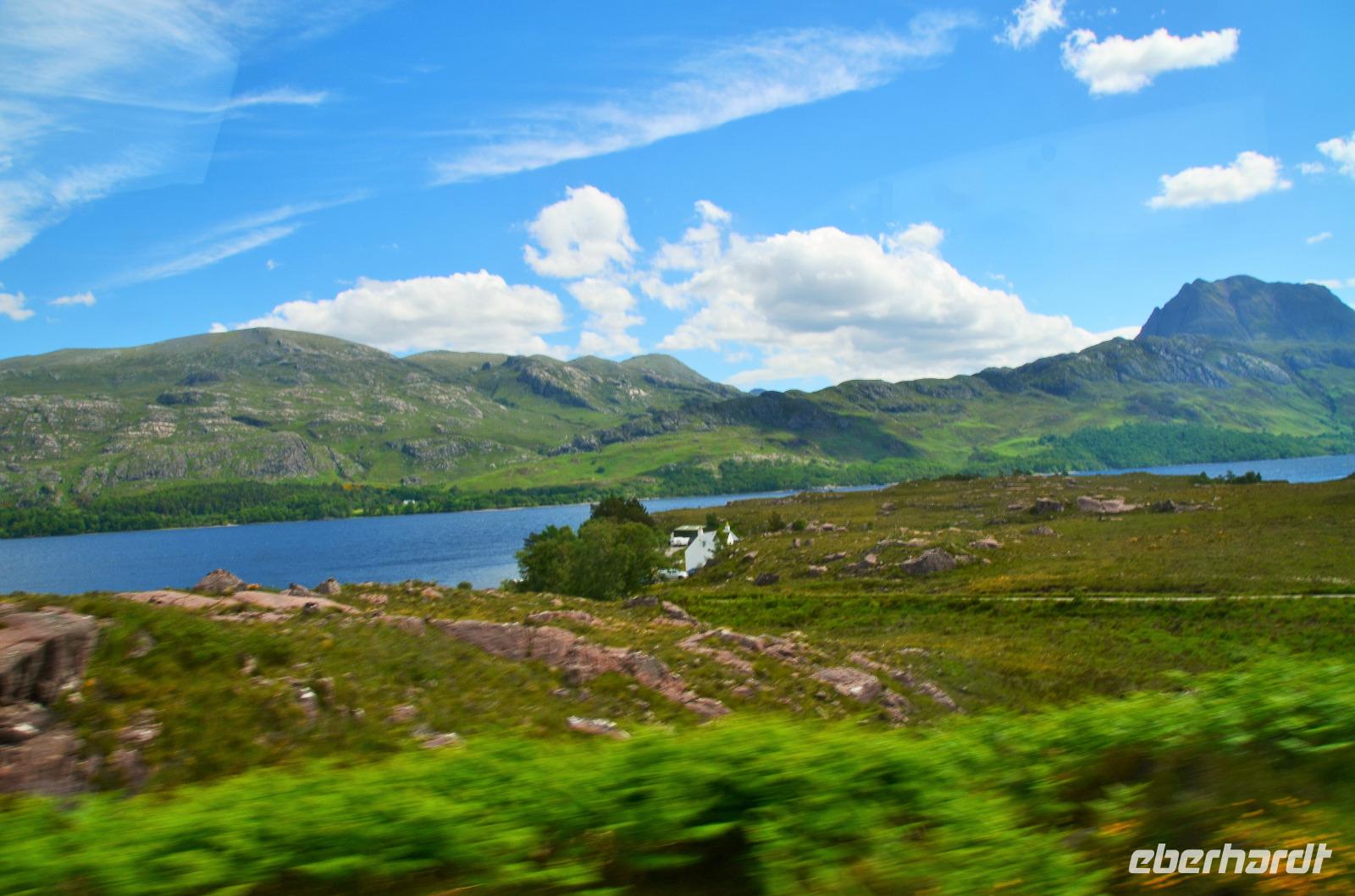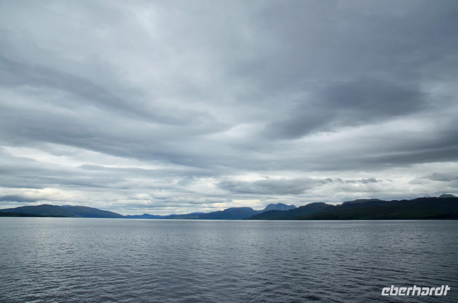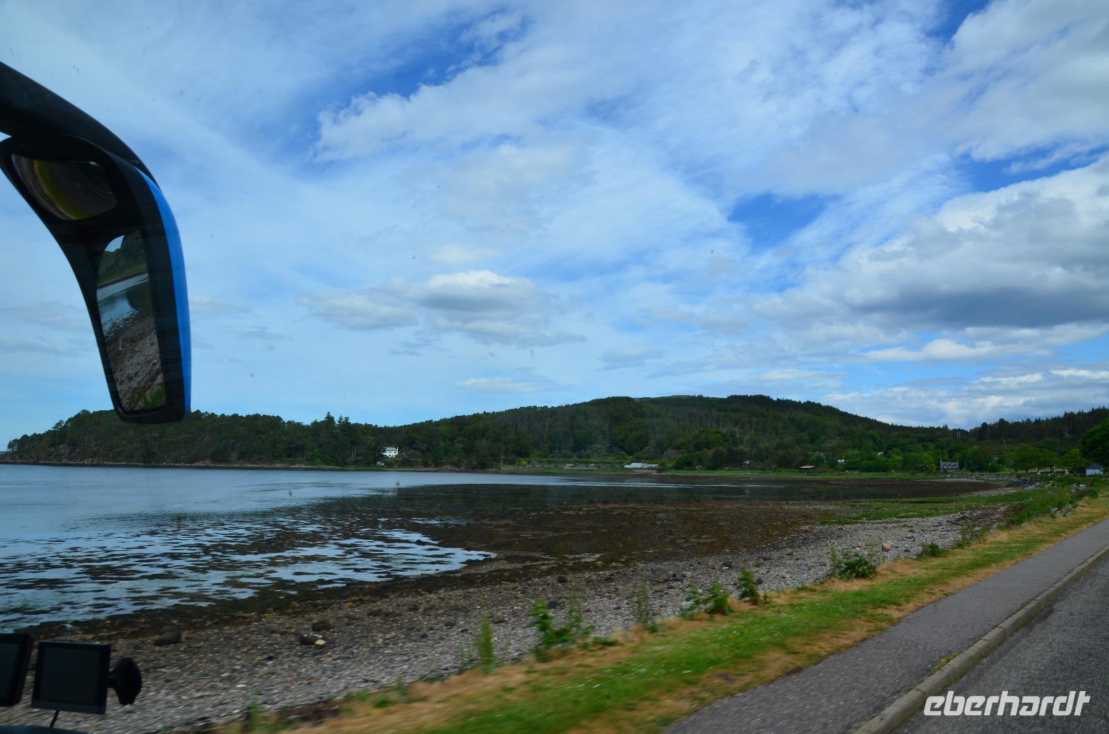 Auf der Weiterfahrt zum Loch Ness, Richtung Norden - Ullapool, machen wir noch ein paar Fotostopps an der malerischen Küste und passieren den nördlichsten Ort unserer Reise beim Little Loch Broom. Das nordöstliche Ende des Kaledonischen Kanals erreichen wir am späten Nachmittag. Hier regnet es und fahren am Loch Ness entlang. Dort treffen wir auch noch Nessy.