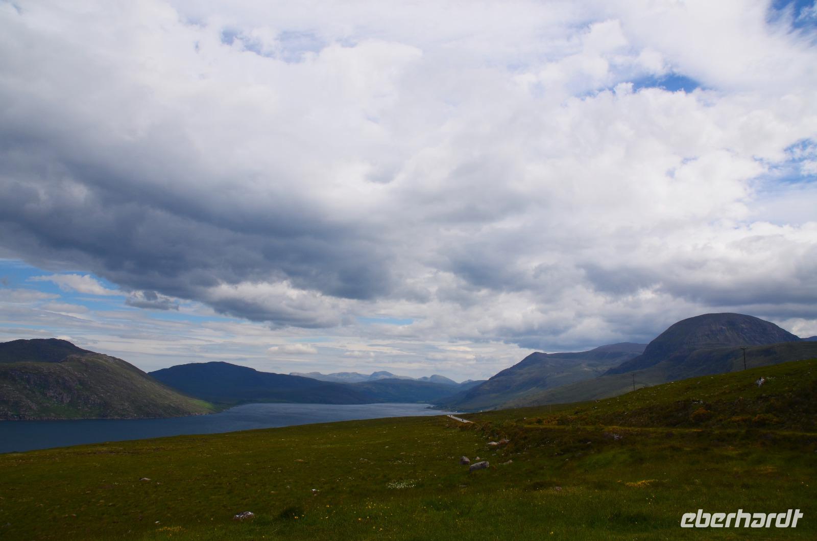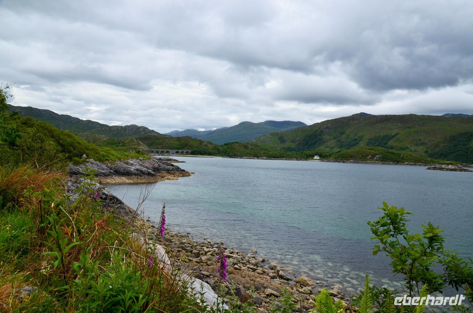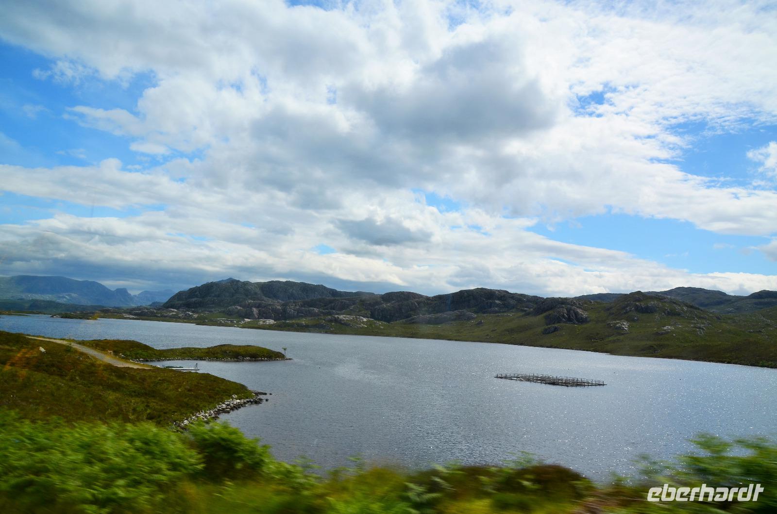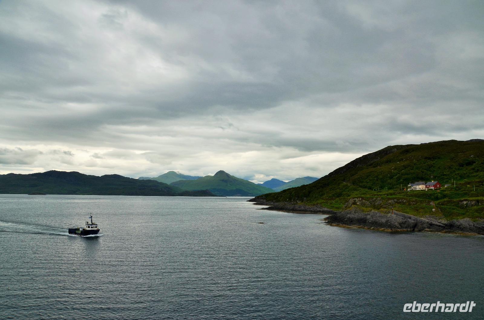 Auf der Weiterfahrt zum Loch Ness, Richtung Norden - Ullapool, machen wir noch ein paar Fotostopps an der malerischen Küste und passieren den nördlichsten Ort unserer Reise beim Little Loch Broom. Das nordöstliche Ende des Kaledonischen Kanals erreichen wir am späten Nachmittag. Hier regnet es und fahren am Loch Ness entlang. Dort treffen wir auch noch Nessy.