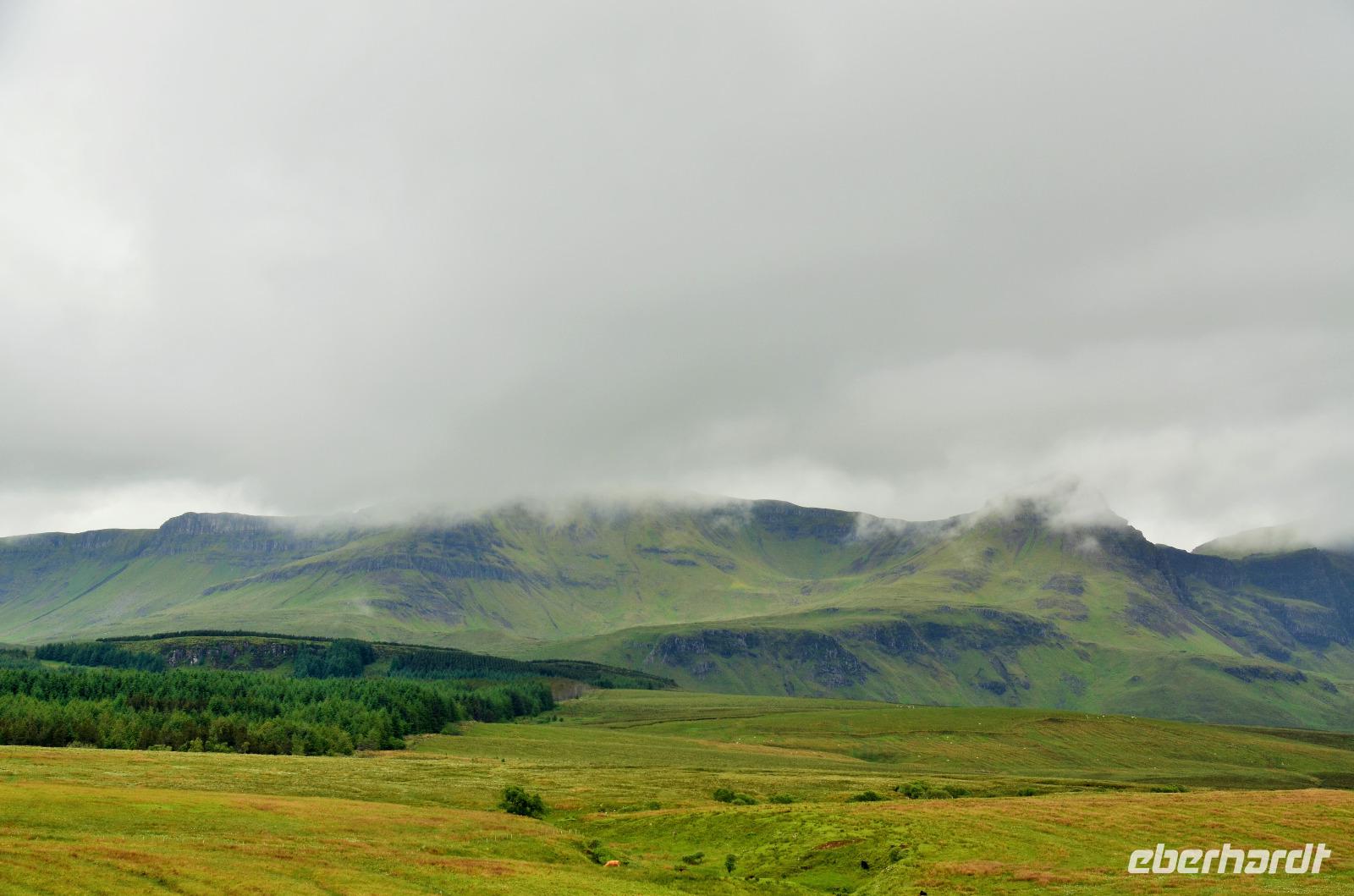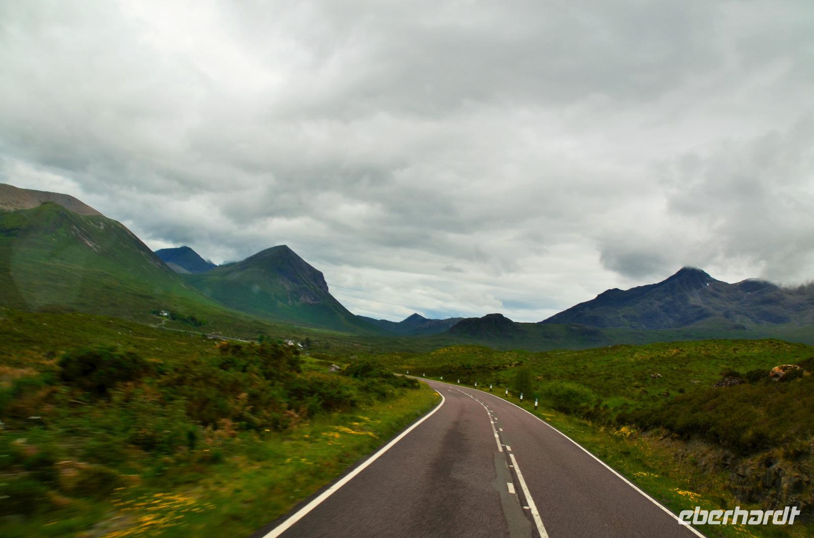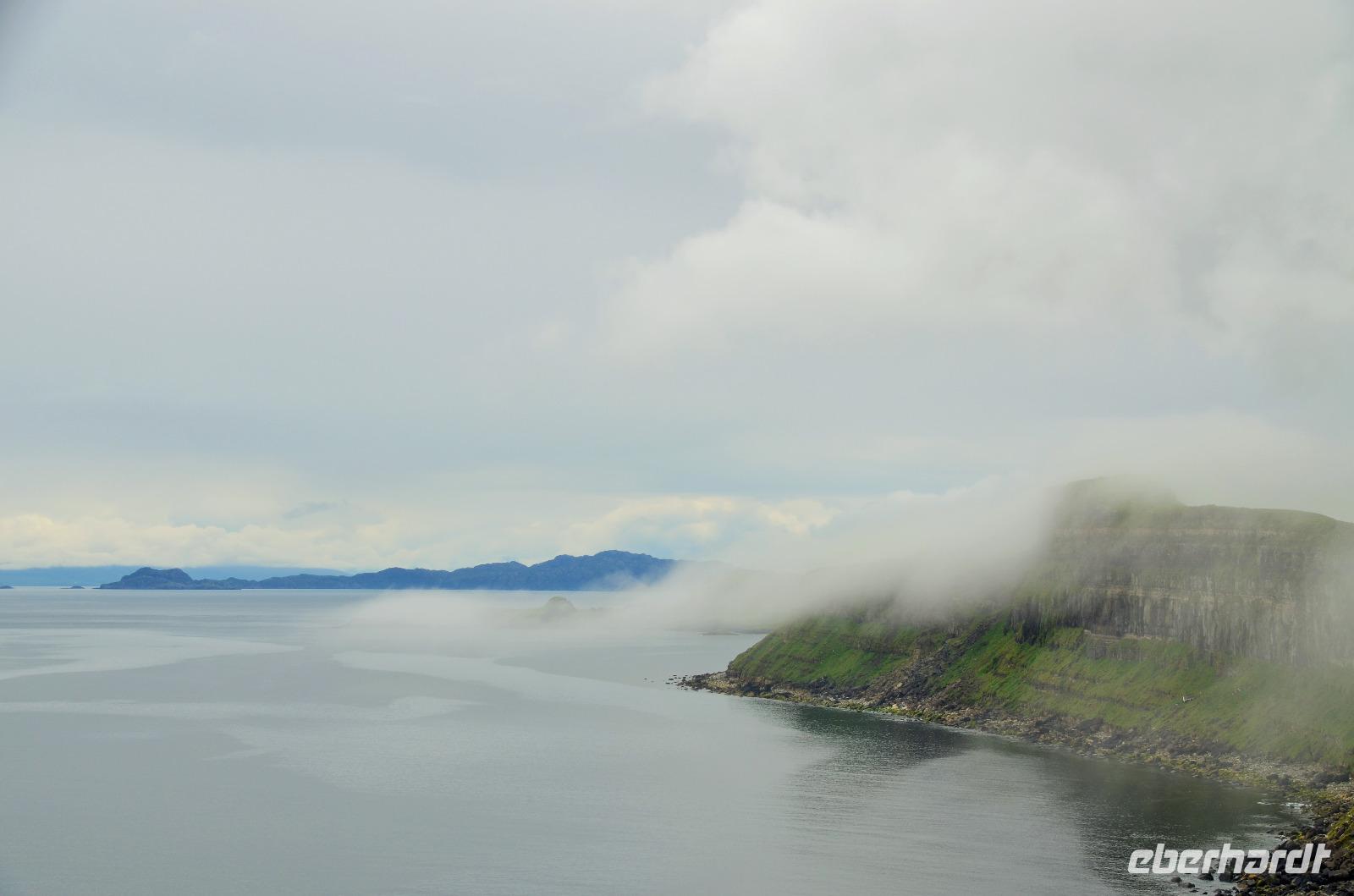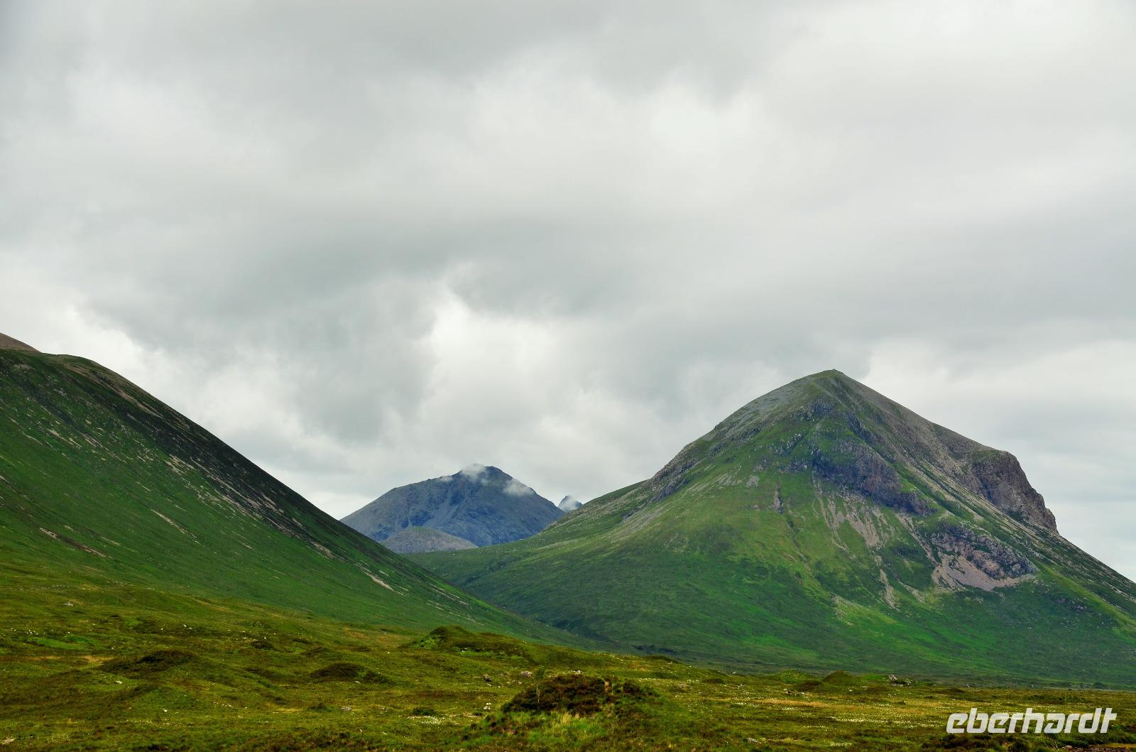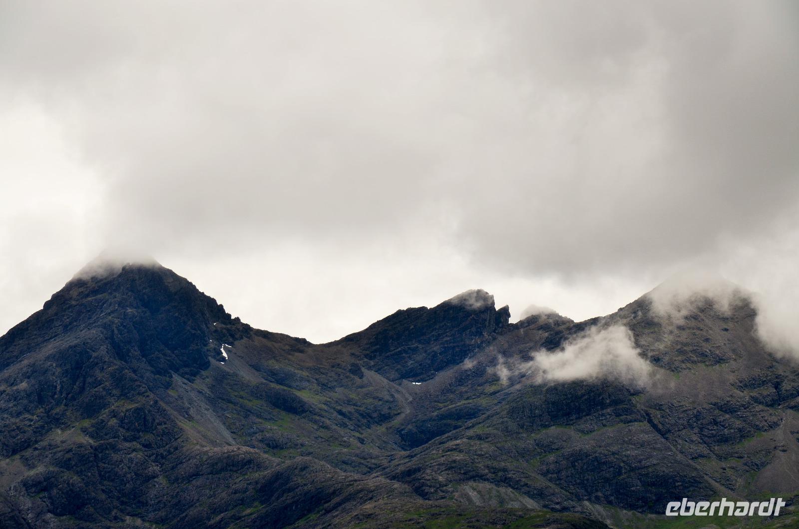 Tief ziehende Wolken tauchen die Landschaft an den Red Cullin Hills und vor der Küste von Skye in ein mystisches Flair. Die Insel macht heute ihrem Namen alle Ehre.