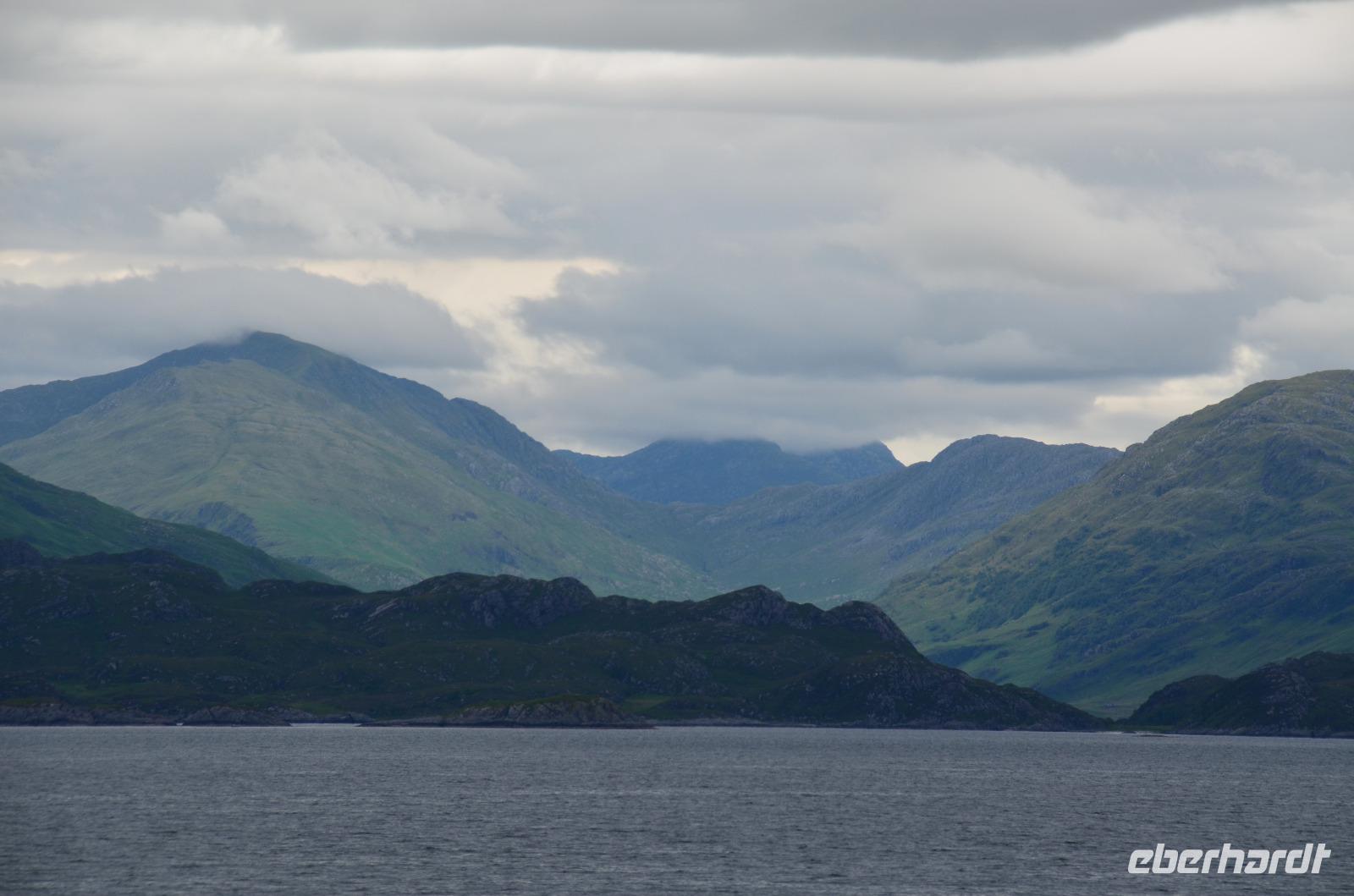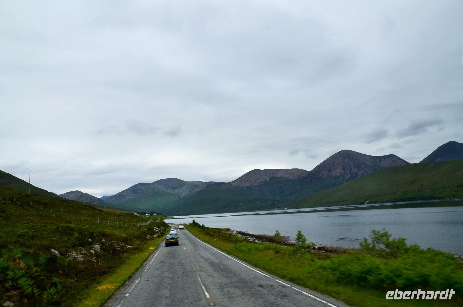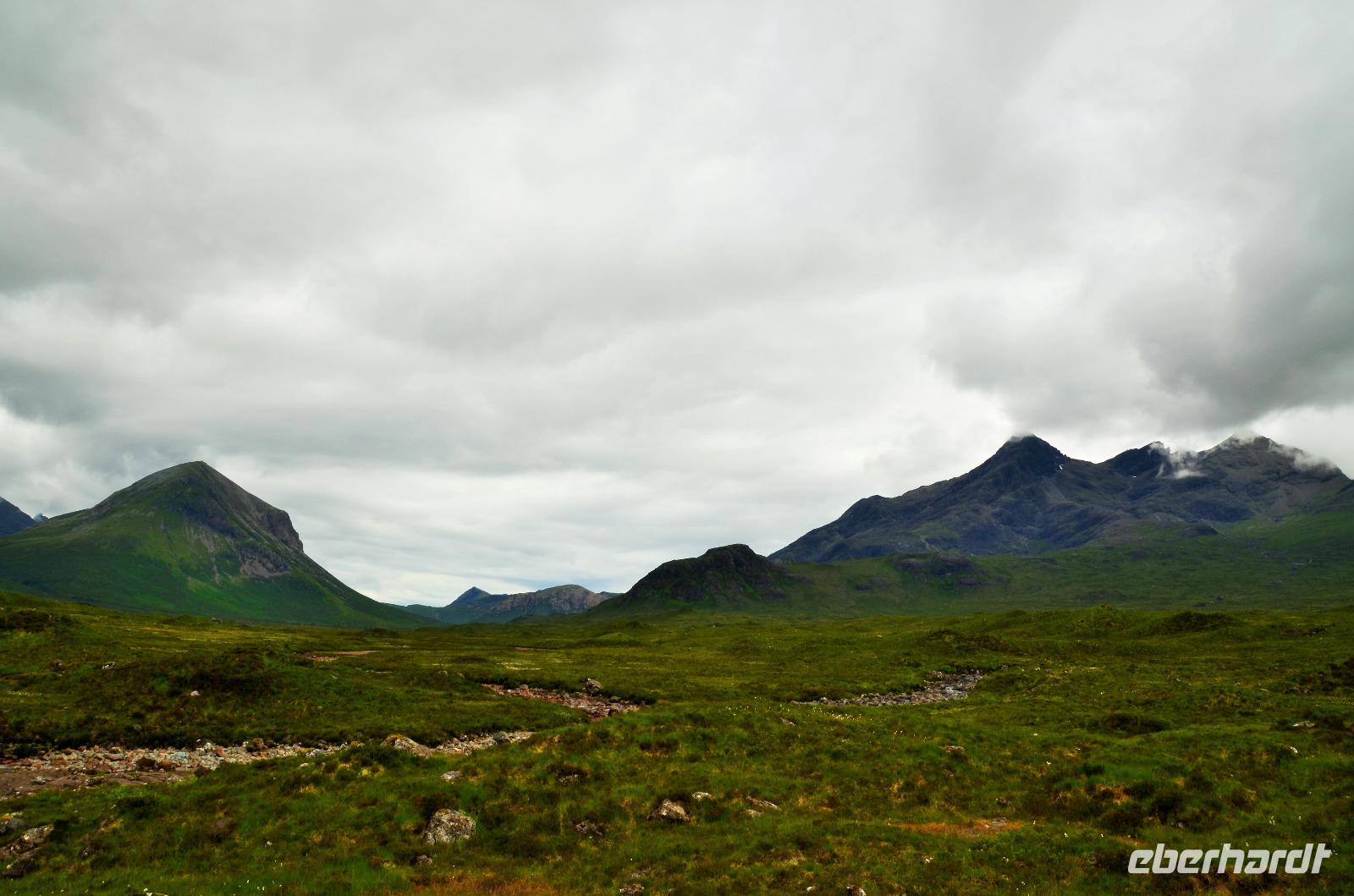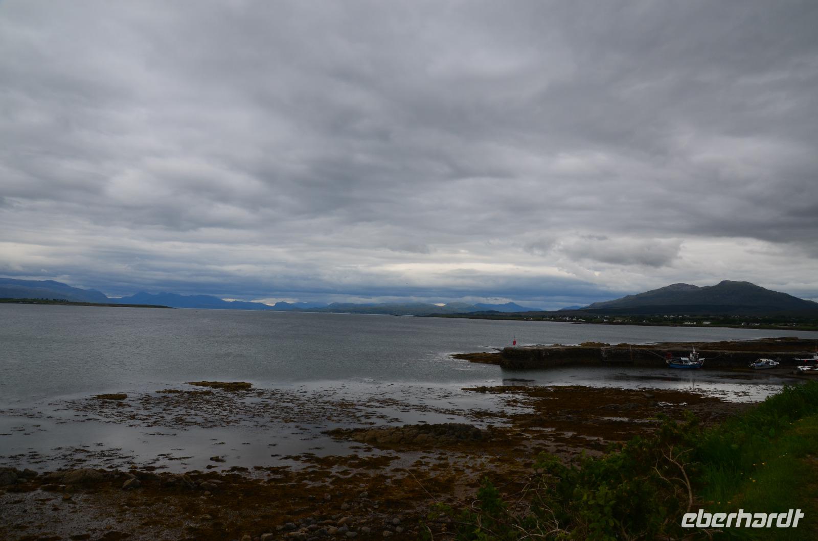 Tief ziehende Wolken tauchen die Landschaft an den Red Cullin Hills und vor der Küste von Skye in ein mystisches Flair. Die Insel macht heute ihrem Namen alle Ehre.