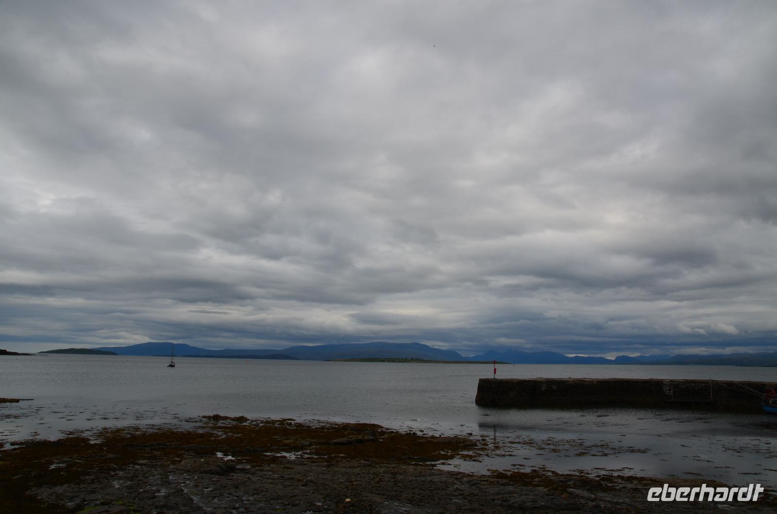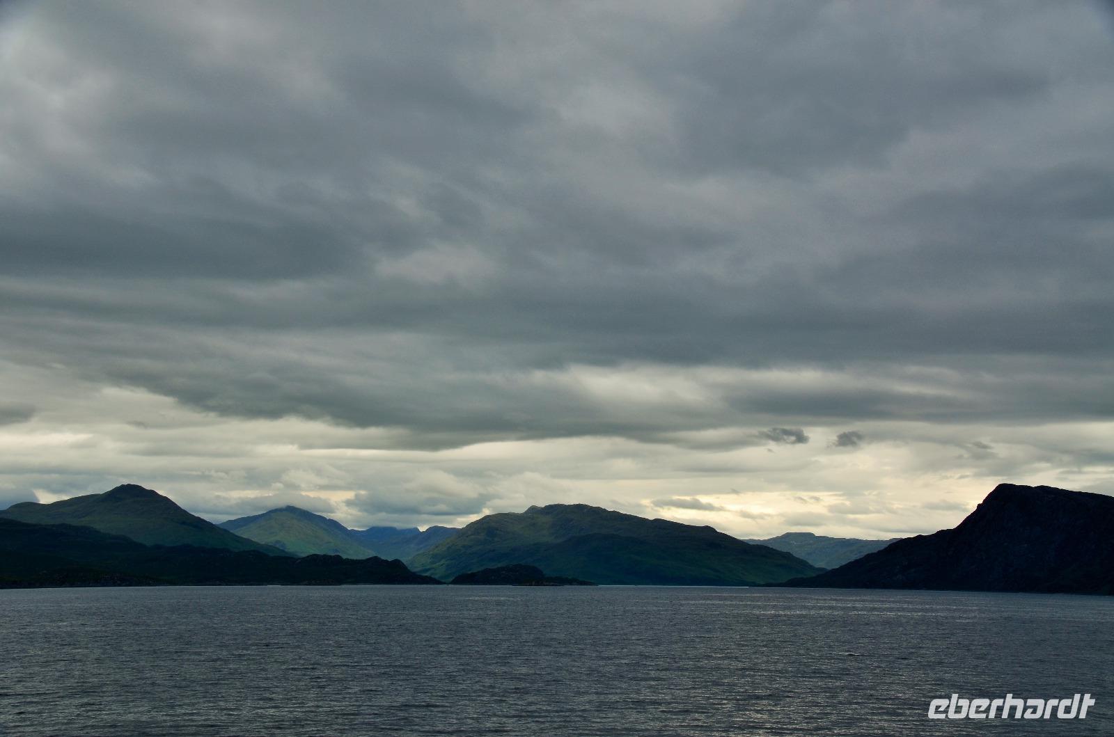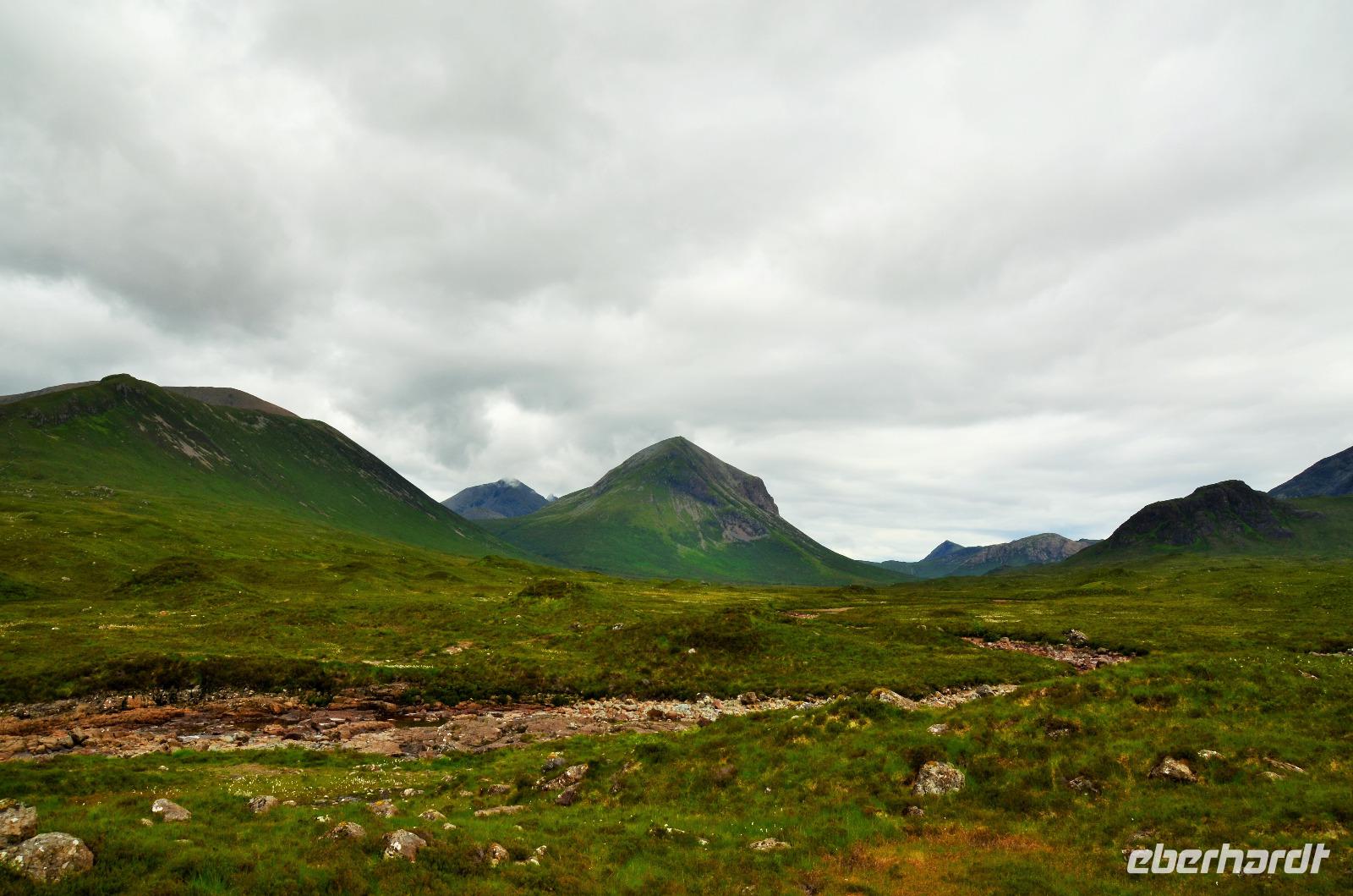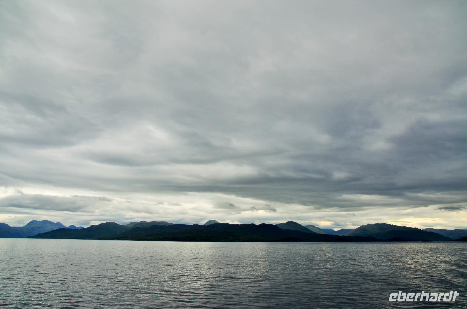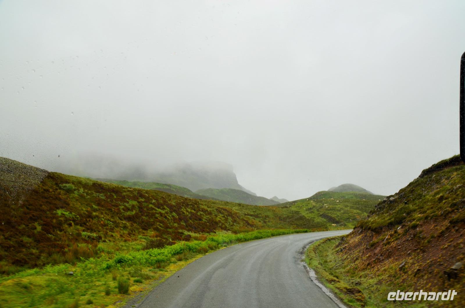 Tief ziehende Wolken tauchen die Landschaft an den Red Cullin Hills und vor der Küste von Skye in ein mystisches Flair. Die Insel macht heute ihrem Namen alle Ehre.