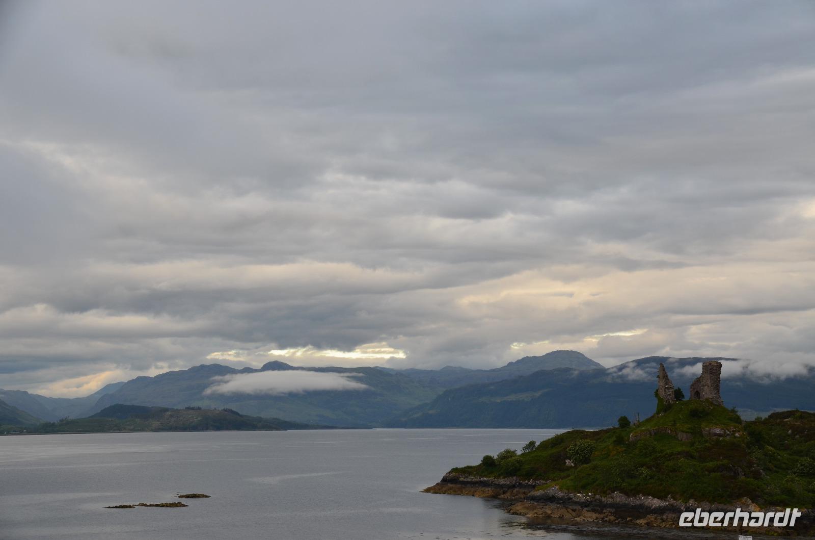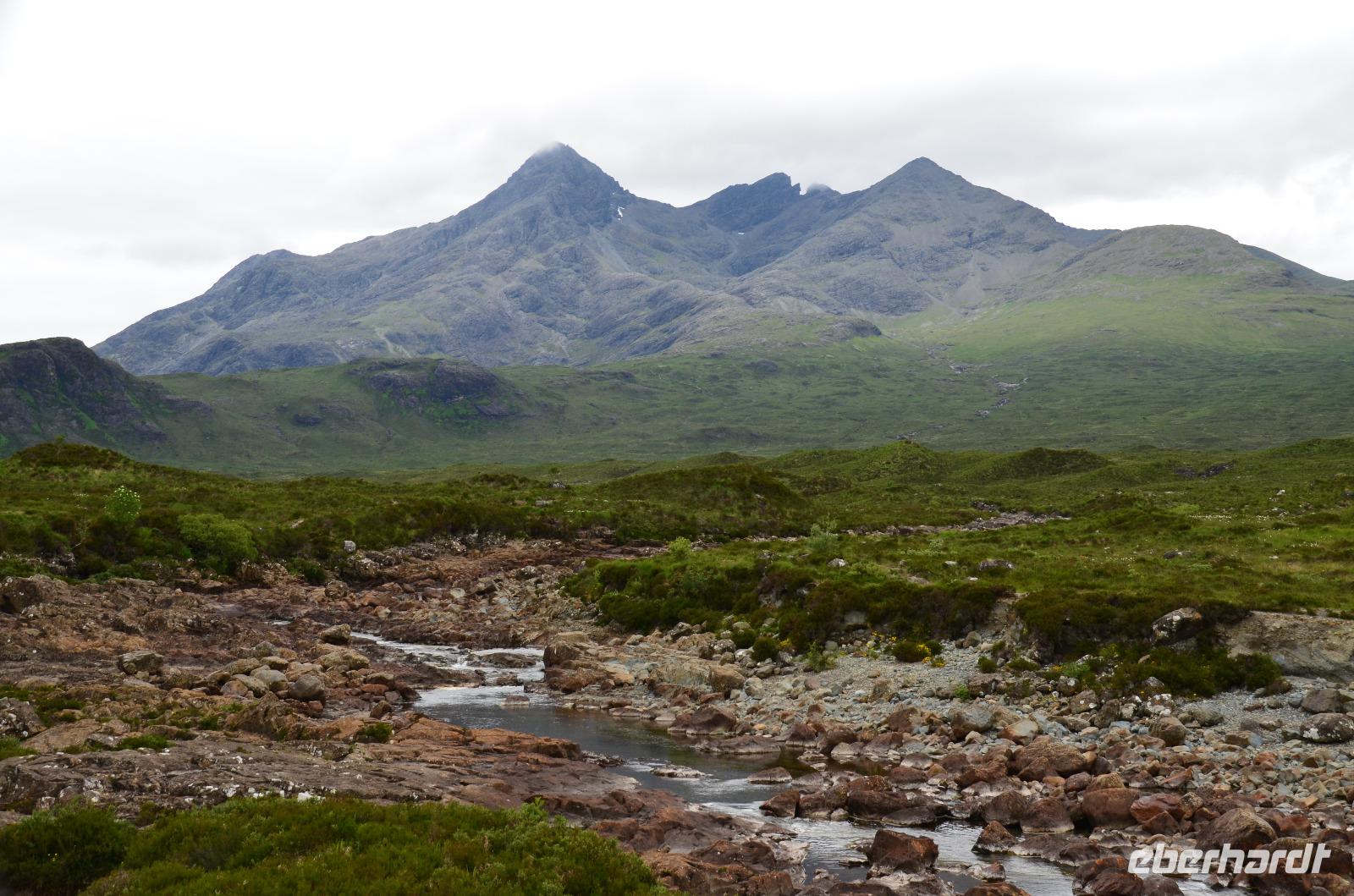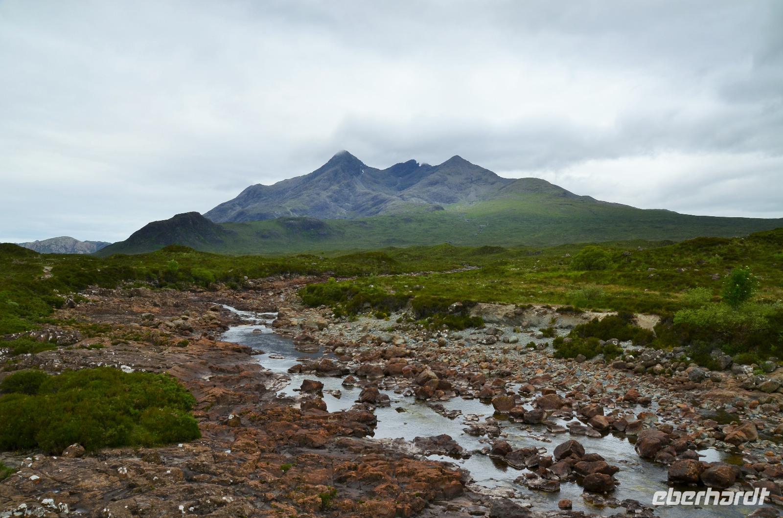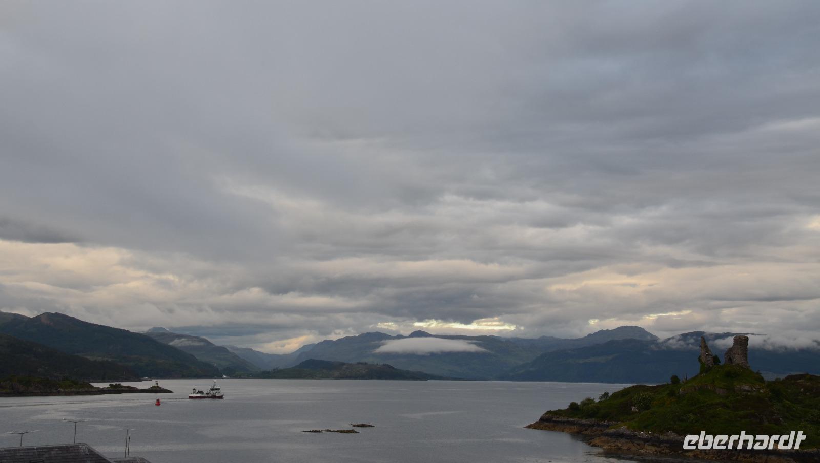 Tief ziehende Wolken tauchen die Landschaft an den Red Cullin Hills und vor der Küste von Skye in ein mystisches Flair. Die Insel macht heute ihrem Namen alle Ehre.