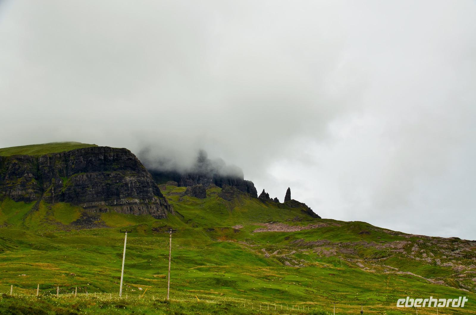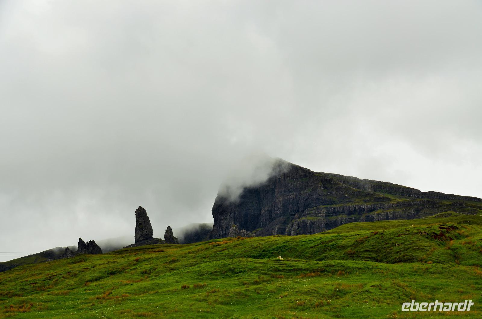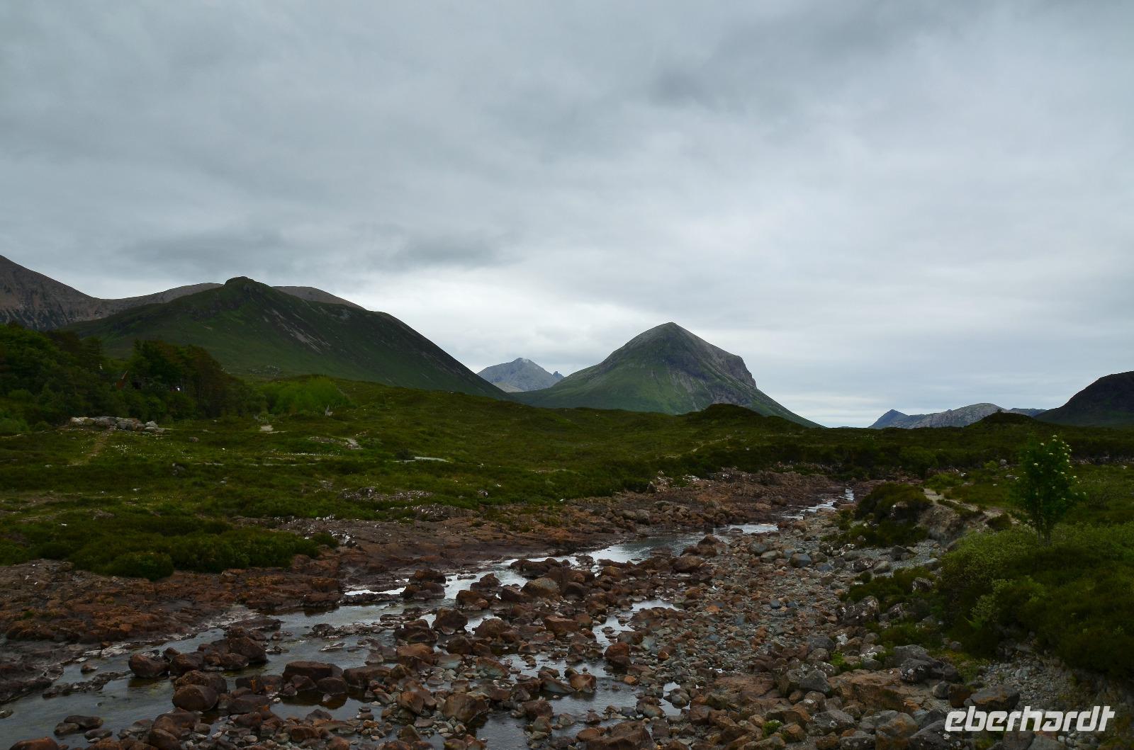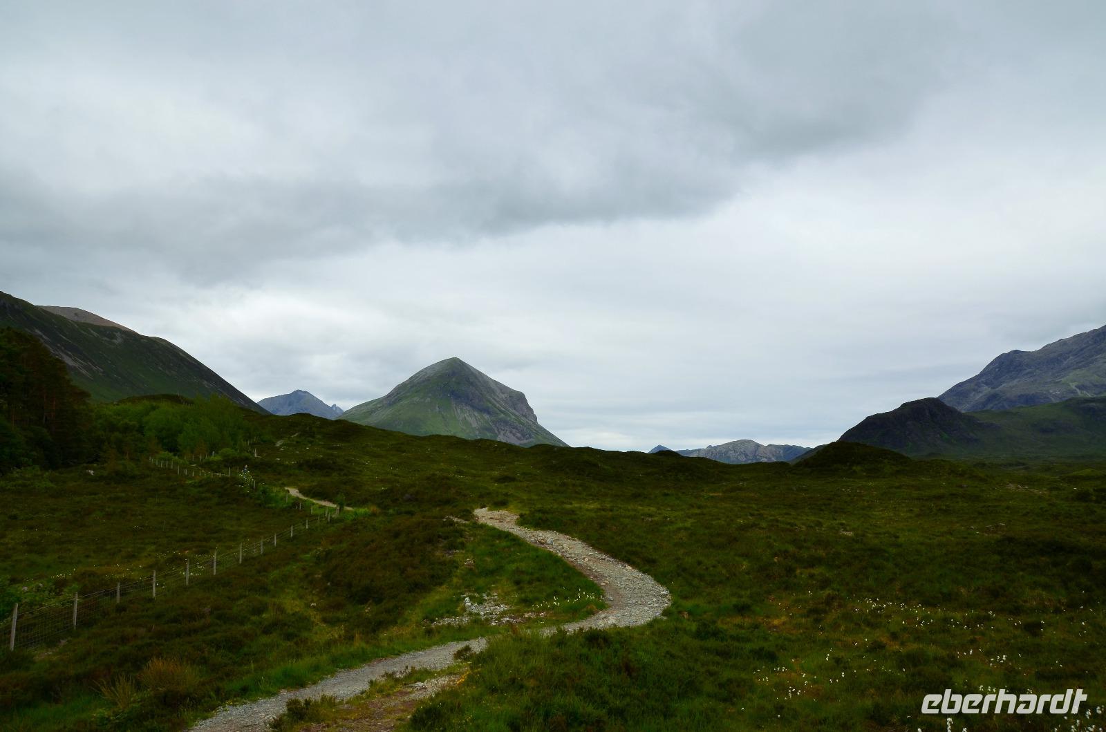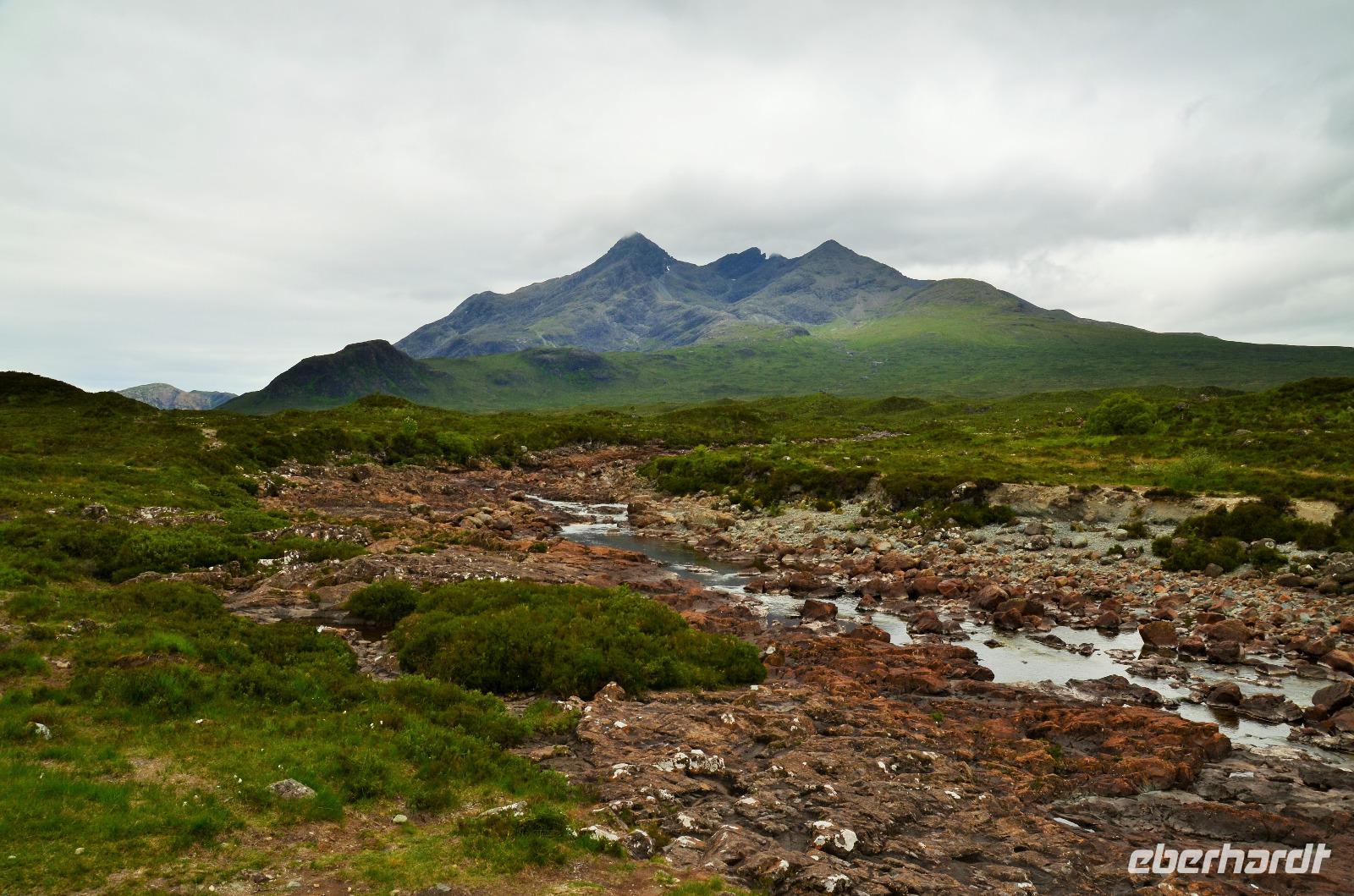 Tief ziehende Wolken tauchen die Landschaft an den Red Cullin Hills und vor der Küste von Skye in ein mystisches Flair. Die Insel macht heute ihrem Namen alle Ehre.