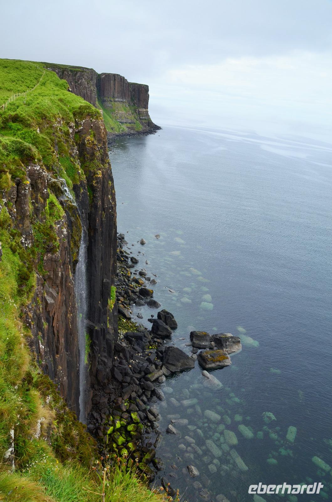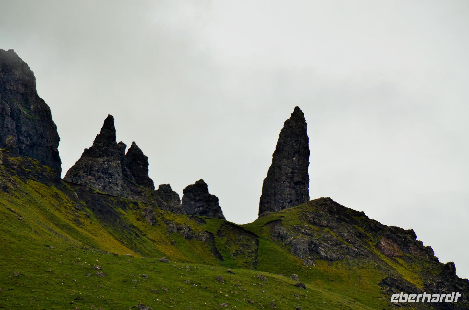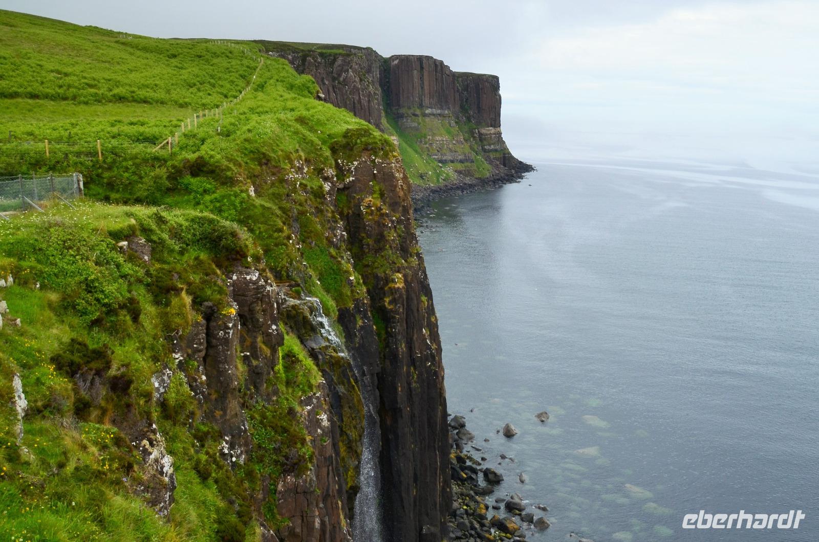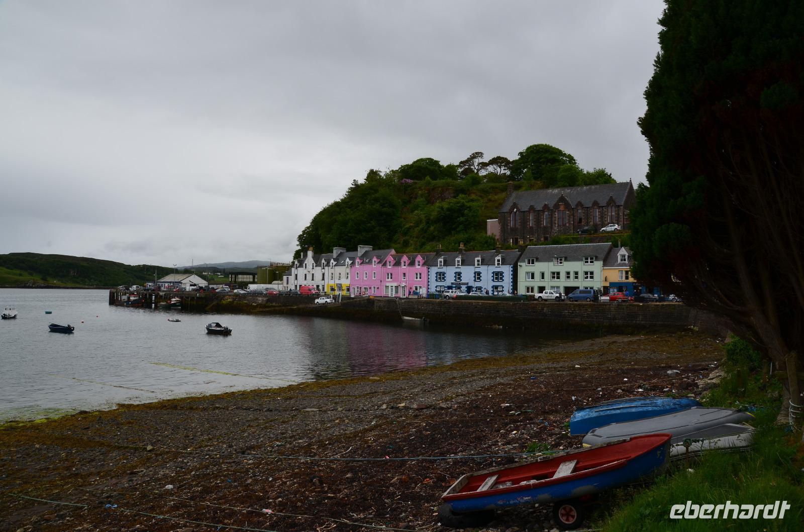 in Portree - mit seinen bunten Häusern am Hafen, am Old Man of Storr, der sich in aller Schönheit präsentiert, in Lealt - mit Aussicht über die Wasserfälle (Falls of Lealt) und der Steilküste mit dem alten Dynamitin-Bergwerk.