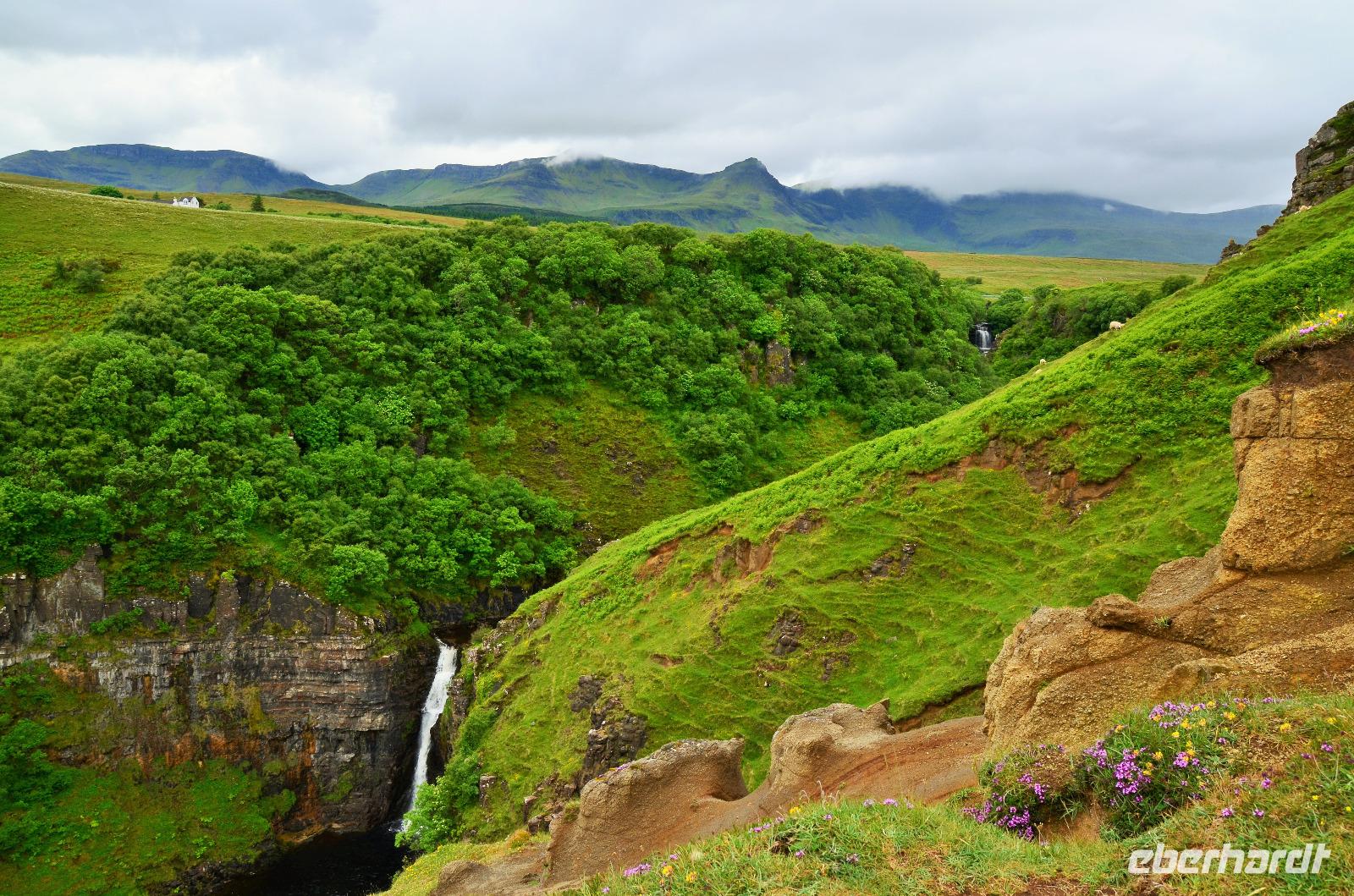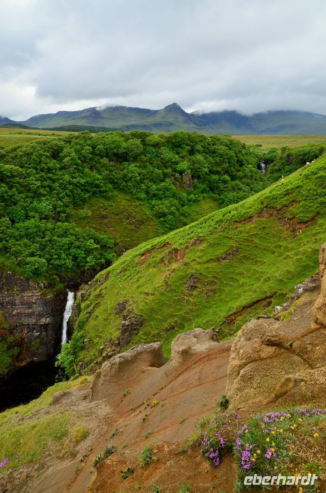 Nach wohlschmeckendem Frühstück im Hotel starten wir zur einer Rundfahrt über die Isle of Skye. Fotostopps am Wasserfall in den Cuillin Hills,