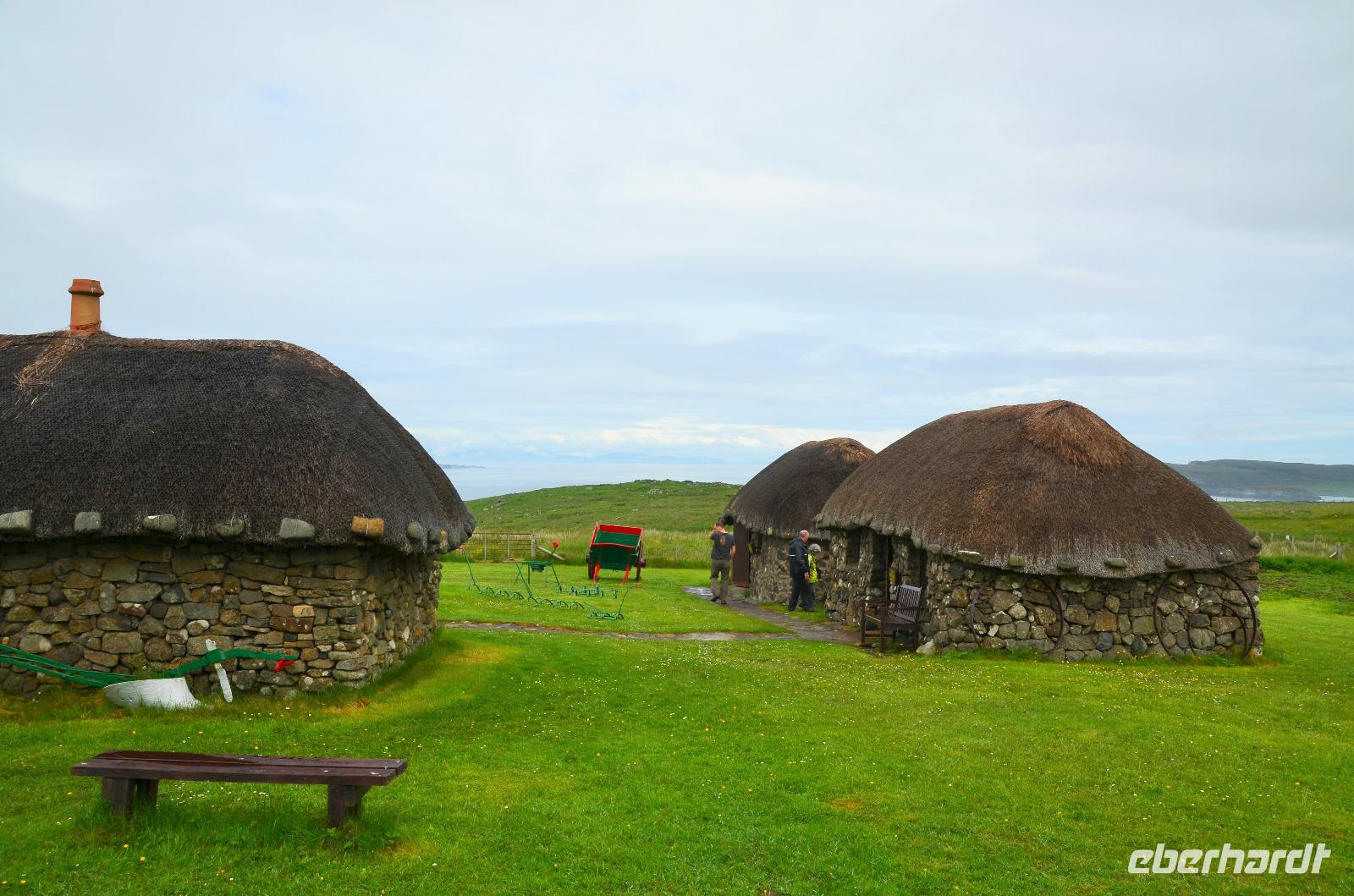 Anschließend die Weiterfahrt zum Kilt Rock, wo wir das 200 m hohe Cliff und den Wasserfall besichtigen. Dann der Norden der Insel, mit Duntulm Castle, dem Skye Museum of Island Life, das wir als weiteres Eberhardt-WOW besichtigen. Wir verschaffen uns so einen Eindruck vom schweren Leben der Crofters, die noch bis 1956 in diesen Häusern wohnten.