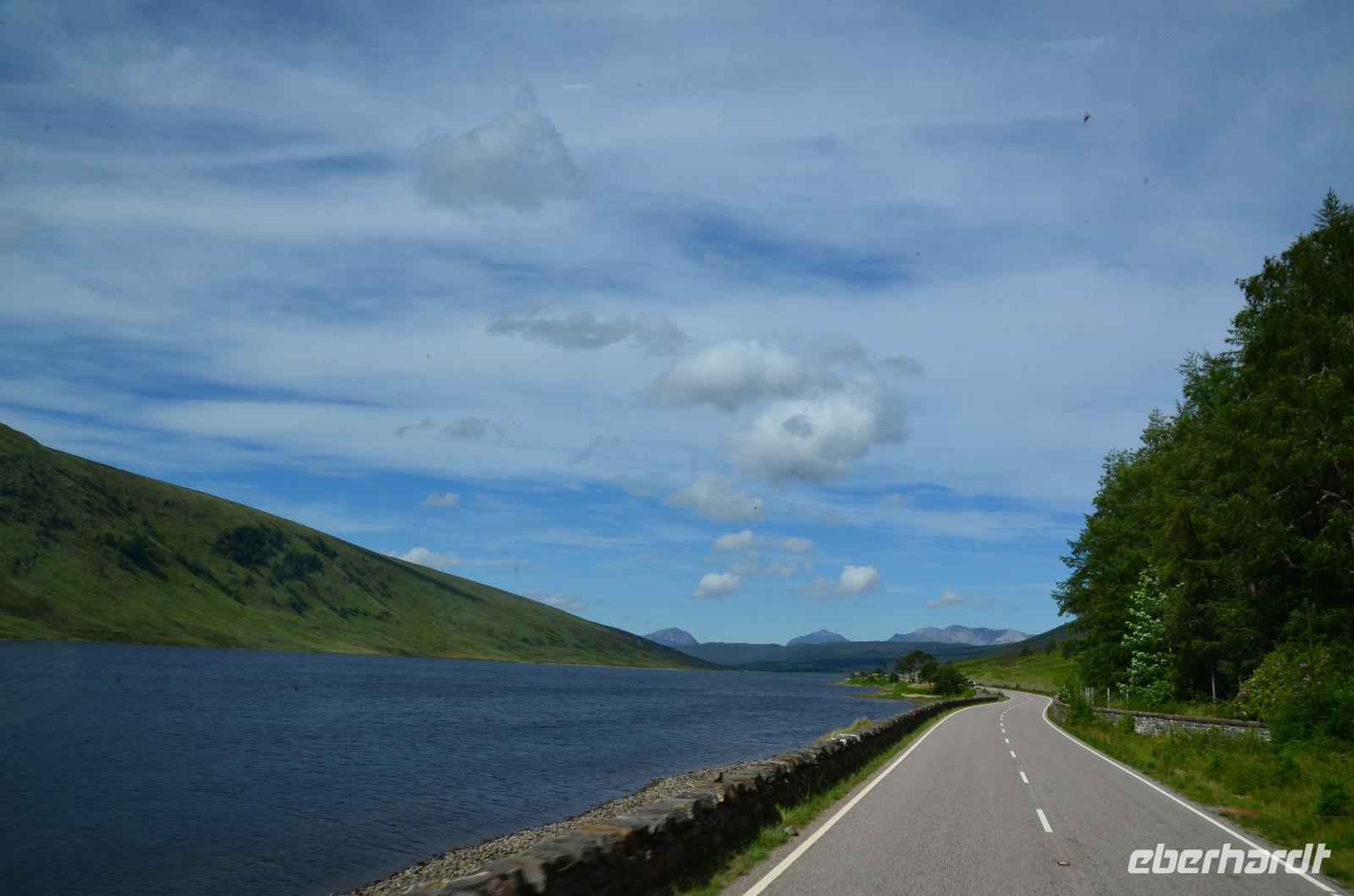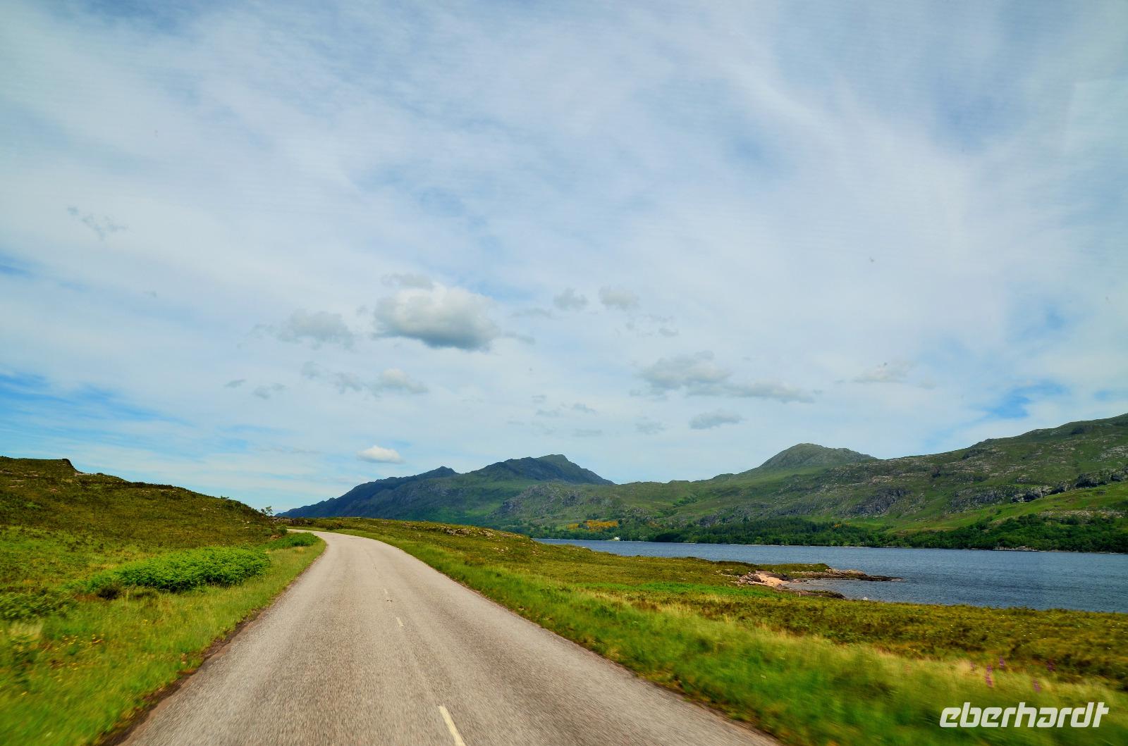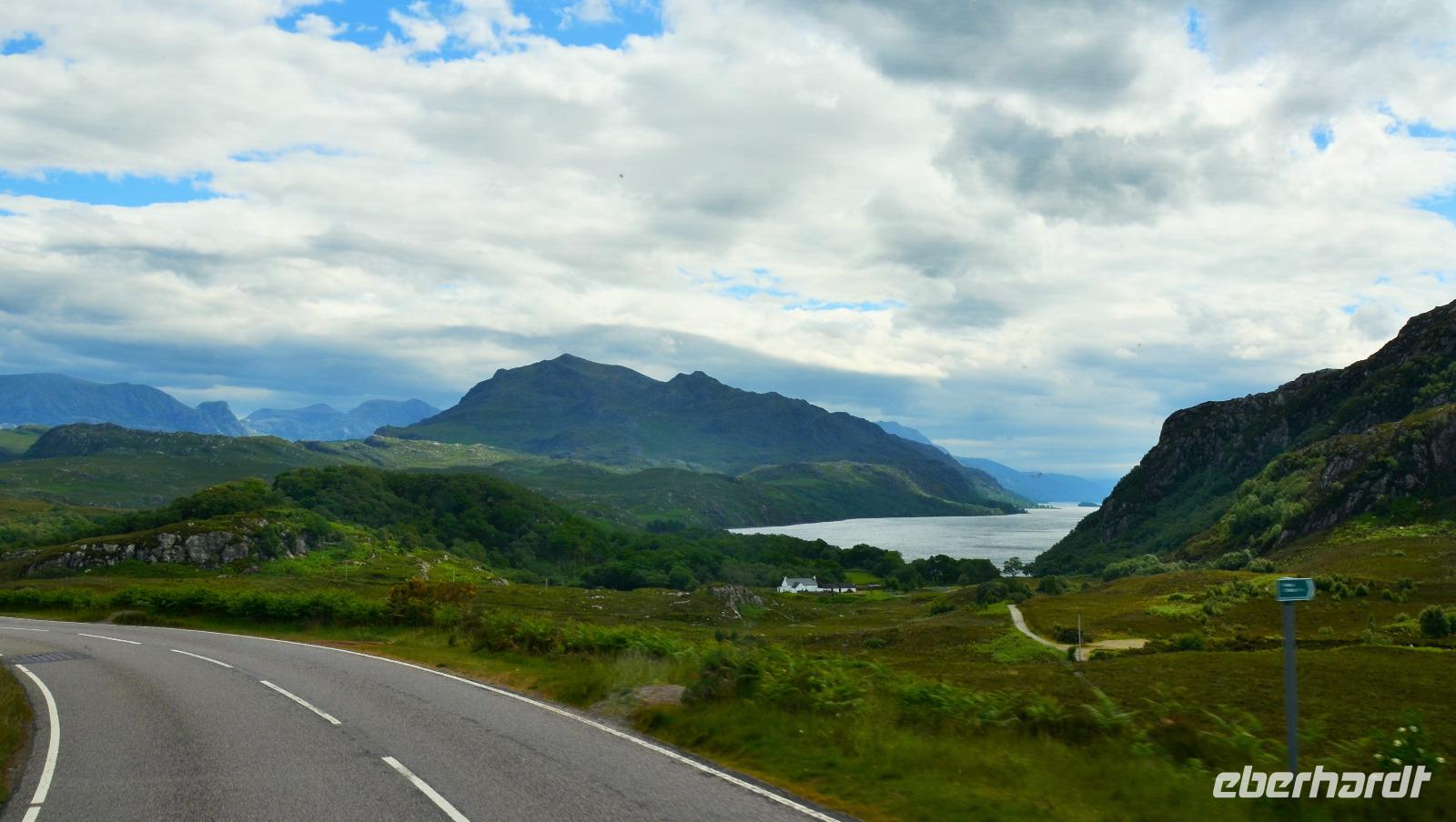 Wir wollen noch weiter an der Küste nach Norden, Richtung Gairloch. Durch das romantische Tal des Carron fahren wir bis Achnasheen und hier links entlang am Loch a'Chroisg Richtung Loch Maree.