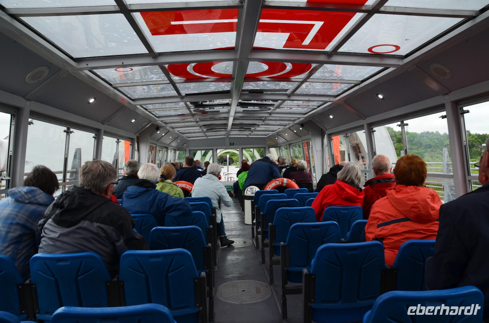 Die Blair Athol Distillery ist unser Ziel. Die Begrüßung im Besucherzentrum, die anschließende Besichtigung und Führung sind sehr interessant. Bei der Verkostung mit richtigen Scotch-Gläsern probieren wir echten, 12 Jahre in Cherry-Fässern gereiften Single Malt Scotch Whisky. Über Perth fahren wir nach diesem schönen Erlebnis weiter südwärts und erreichen nachmittags Falkirk. Vom Parkplatz am Falkirk Wheel spazieren wir gemeinsam zum Besucherzentrum des Schiffshebewerkes. Bei einer Bootsfahrt erleben wir dieses moderne technische Denkmal - unser Schiff fährt in das Falkirk Wheel, damit hoch, dort heraus und durch den Tunnel des Union Canal, wendet, fährt wieder in das Schiffshebewerk (herrliche Aussicht) und damit wieder hinunter und legt schließlich wieder vor dem Besucherzentrum an. Ein einzigartiges Erlebnis, welches alle begeistert.