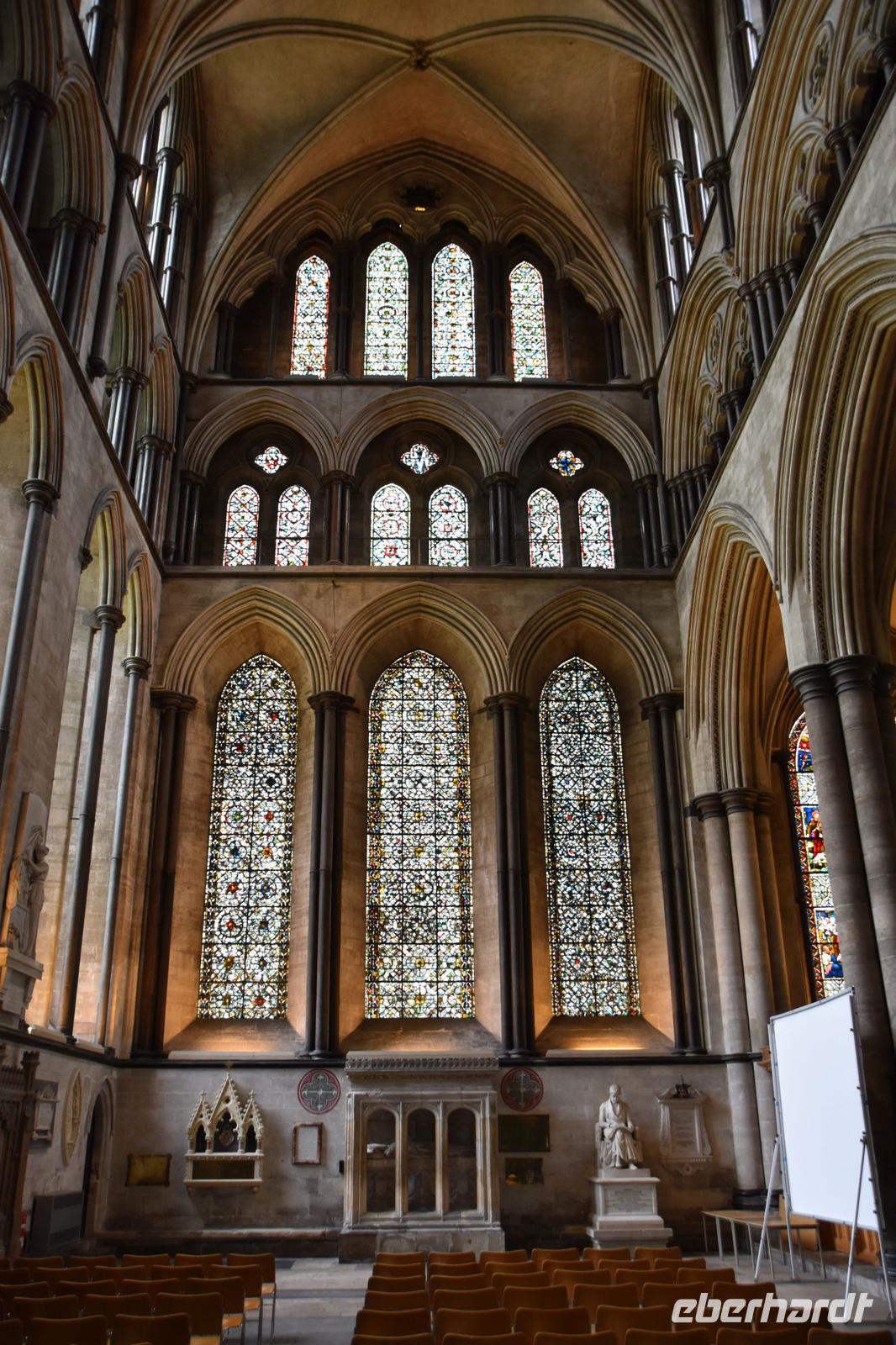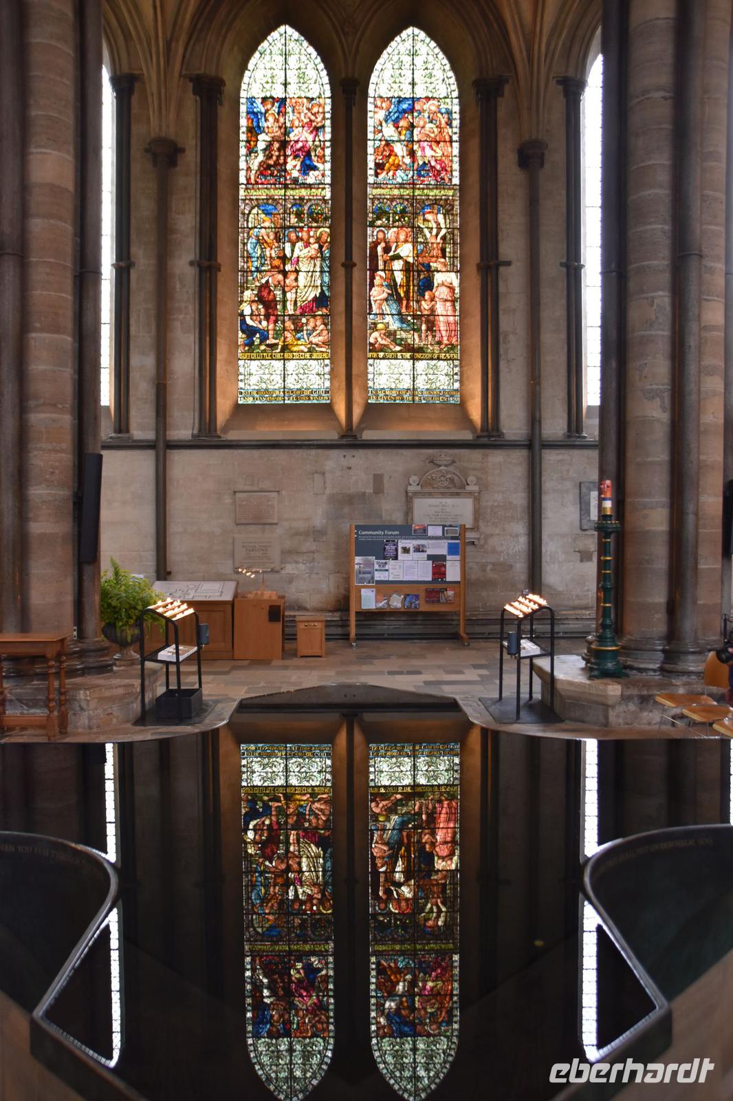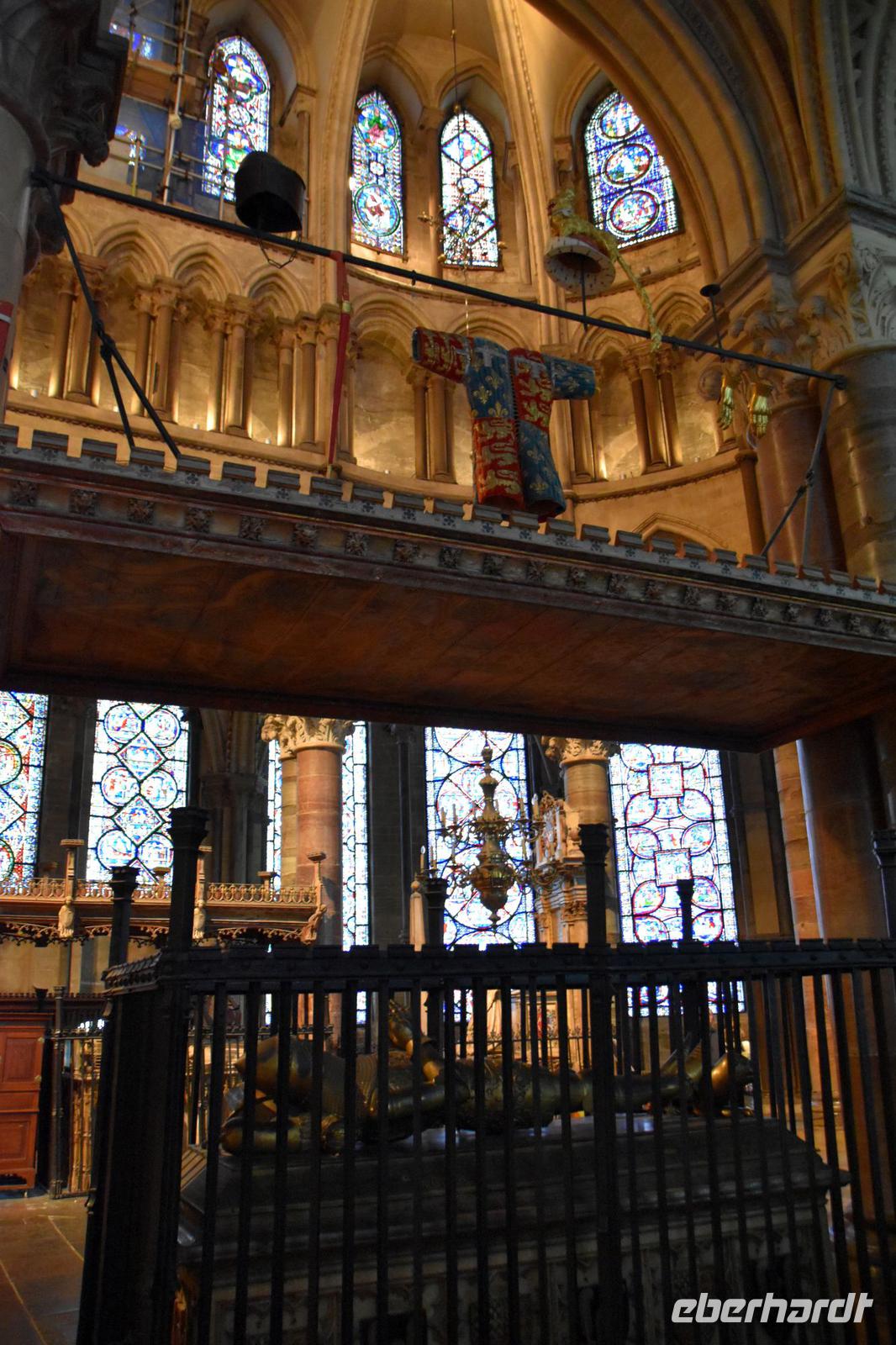 Die Canterbury Cathedral beeindruckte uns dann bei der Besichtigung mit ihrem riesigen Langhaus, dass durch eine schweizerische Glasinstallation noch schöner wirkte. Die herrlich bemalten Bleiglasfenster und die Ausstrahlung der verschiedenen Epochen der englischen Gotik, die diese herrliche Kirche beeindruckend widerspiegelt, sind einmalig.