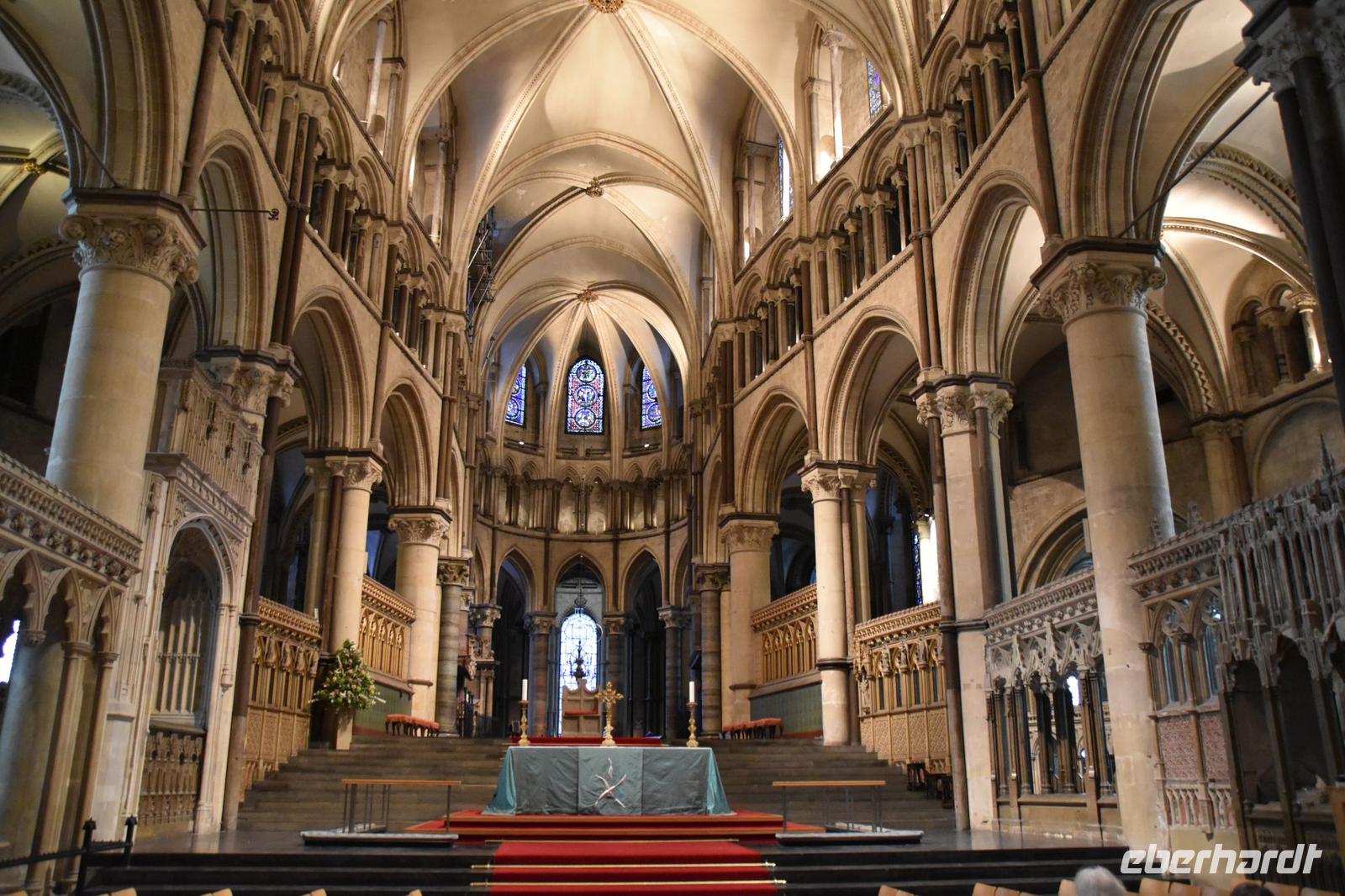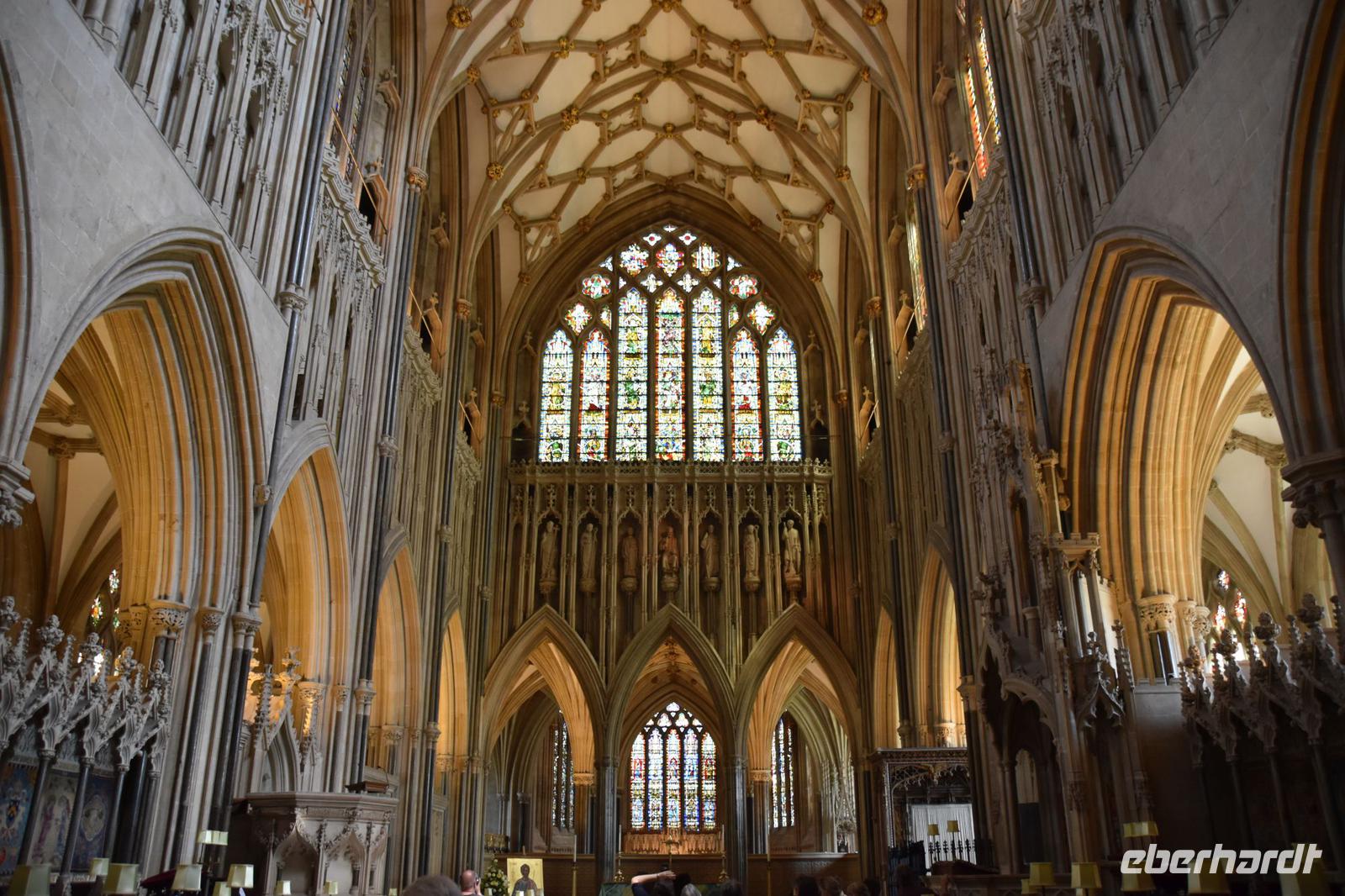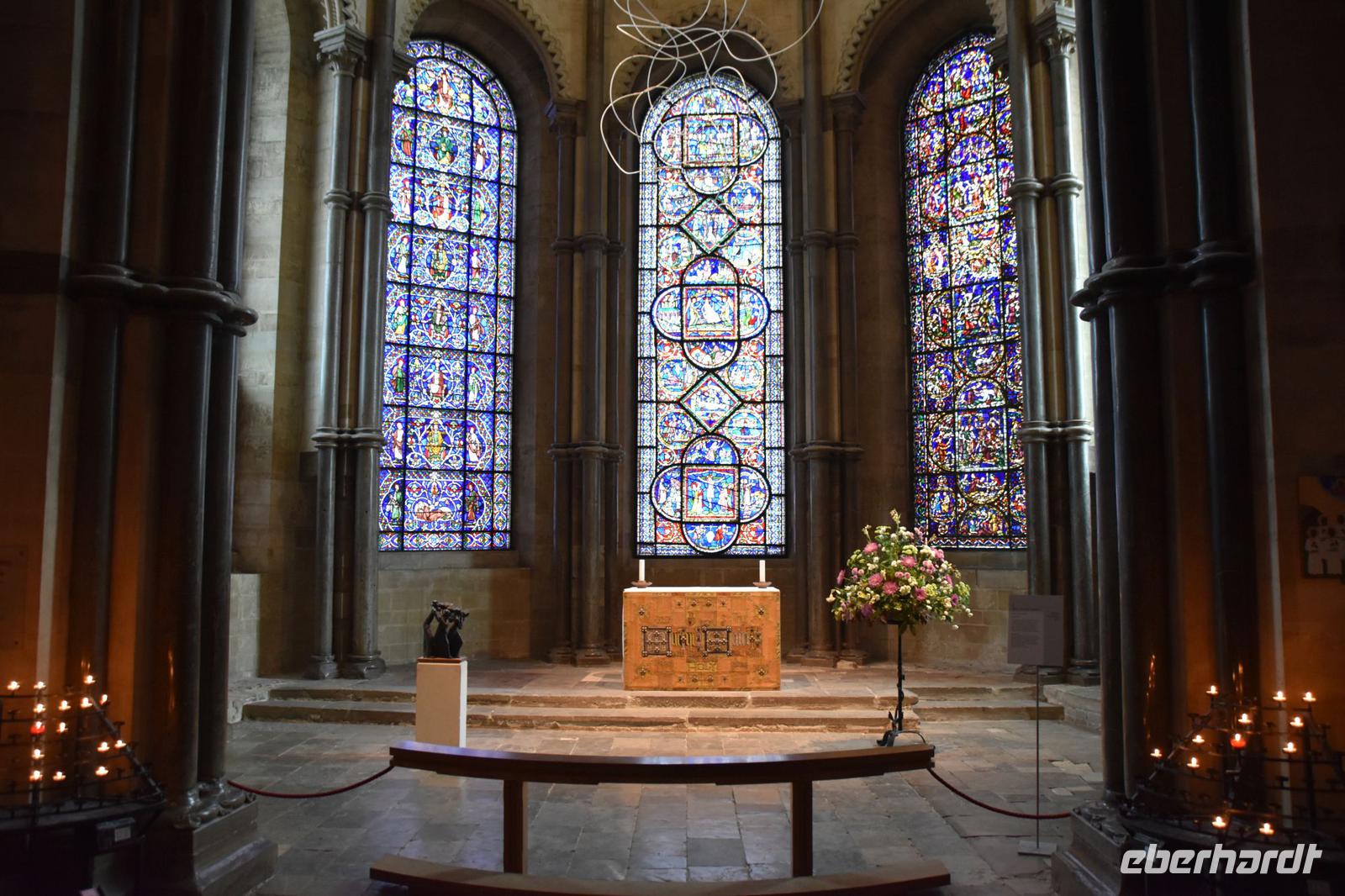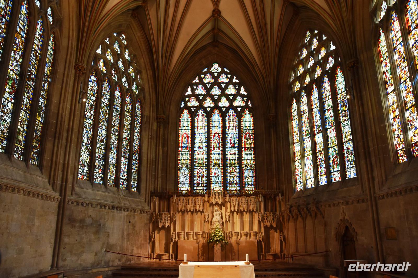 Die Canterbury Cathedral beeindruckte uns dann bei der Besichtigung mit ihrem riesigen Langhaus, dass durch eine schweizerische Glasinstallation noch schöner wirkte. Die herrlich bemalten Bleiglasfenster und die Ausstrahlung der verschiedenen Epochen der englischen Gotik, die diese herrliche Kirche beeindruckend widerspiegelt, sind einmalig.