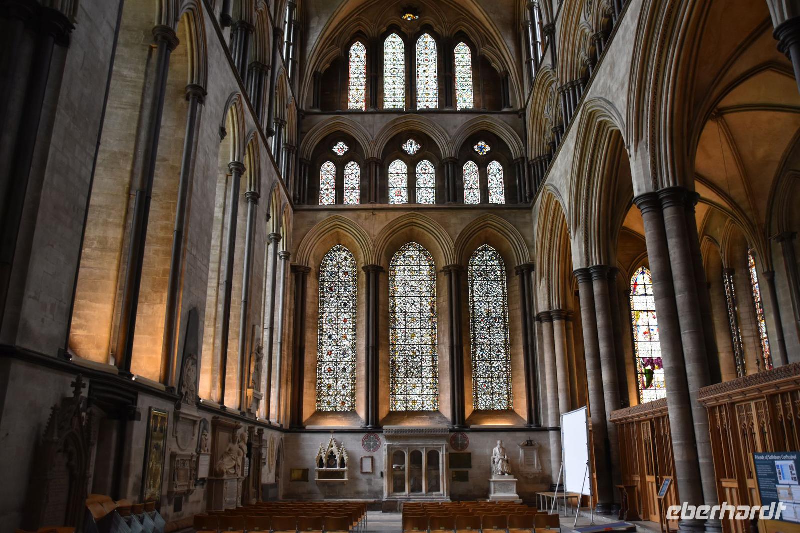 Vorbei an Old Sarum, mit den Spuren der alten Befestigungsanlage, fahren wir hinunter ans Ufer des River Avon - in die Stadt Salisbury. Schon von weitem sehen wir den hohen Kirchturm der Kathedrale aufragen, der mit seinen 123 m der höchste von England ist. Ein gemeinsamer Spaziergang führt uns ins Stadtzentrum, zum Market Cross, weiter an historischen Häusern vorbei zum Golden Gate und von hier hinein in die größte Domfreiheit des Landes und hier zur Cathedral. Besonders eindrucksvoll ist die Westfassade mit ihrem Figurenschmuck. Wir besichtigen individuell das Innere des imposanten Bauwerkes der englischen Frühgotik und lassen uns von der Größe und Schönheit in den Bann ziehen. Wunderschön die Harmonie des Early English Stile. Am Nachmittag geht es durch das goldene Tor zurück zum Bus und mit ihm starten wir zu unserer Weiterfahrt zum abendlichen Ziel Exeter.