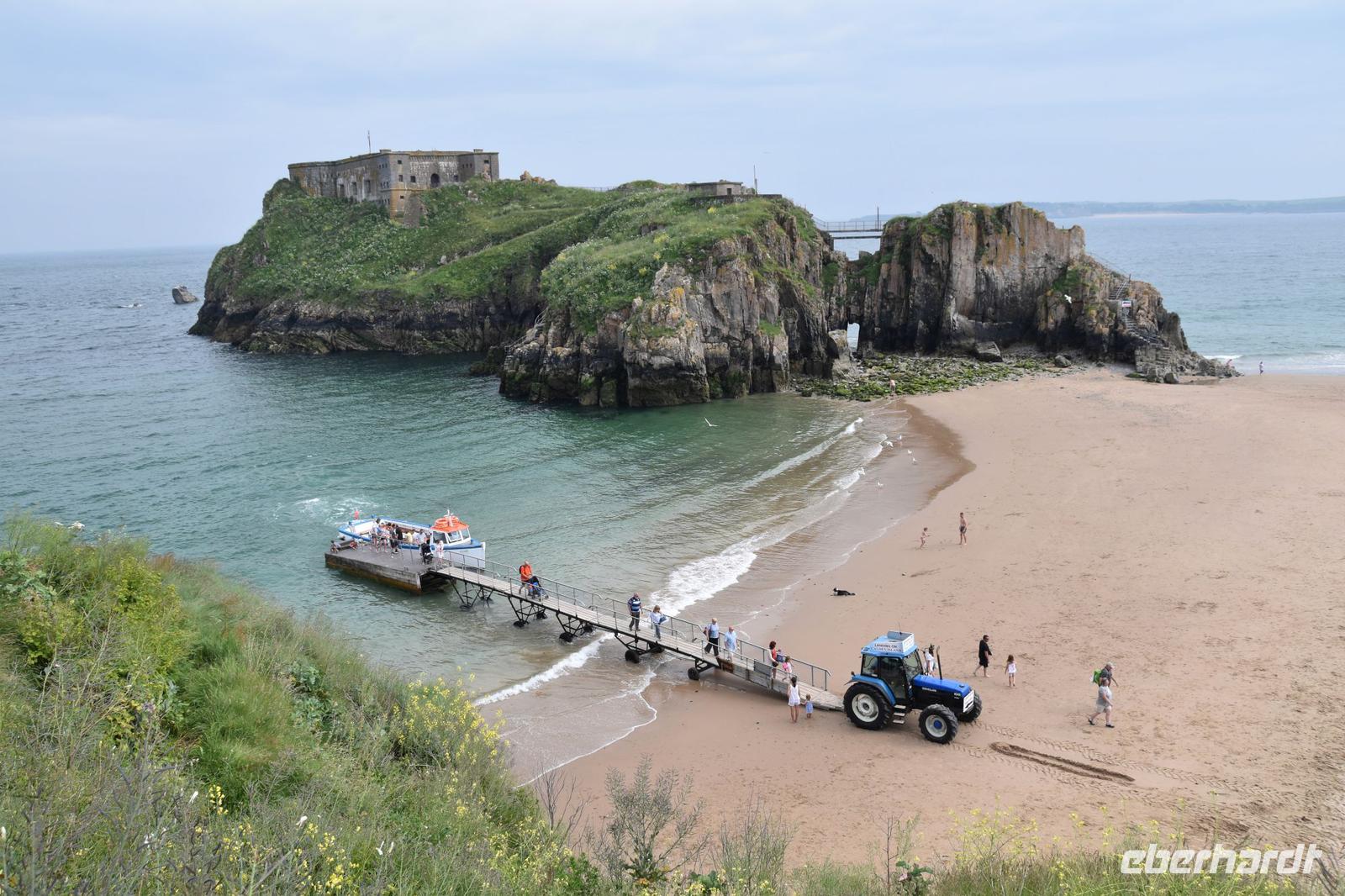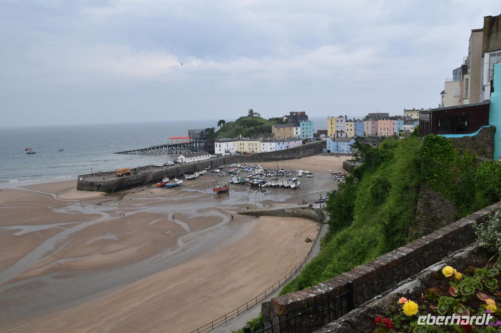 Nun lockt es uns aber auch noch an die romantische Küste und so fahren wir nach Tenby, an die walisische Riviera weiter. Tenby, ein hübscher Badeort mit alter Stadtmauer, hübschen belebten Gassen, einer alten Festung auf einem Felsvorsprung, herrlichen Stränden und felsiger Steilküste gefällt uns mit seinen bunten Häusern und lebendigen Gassen sofort.