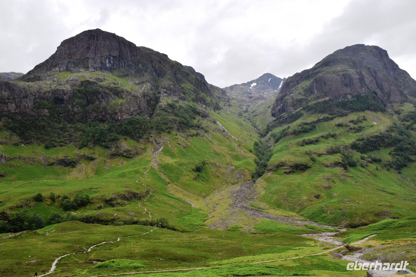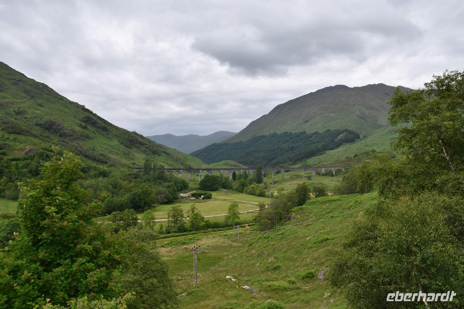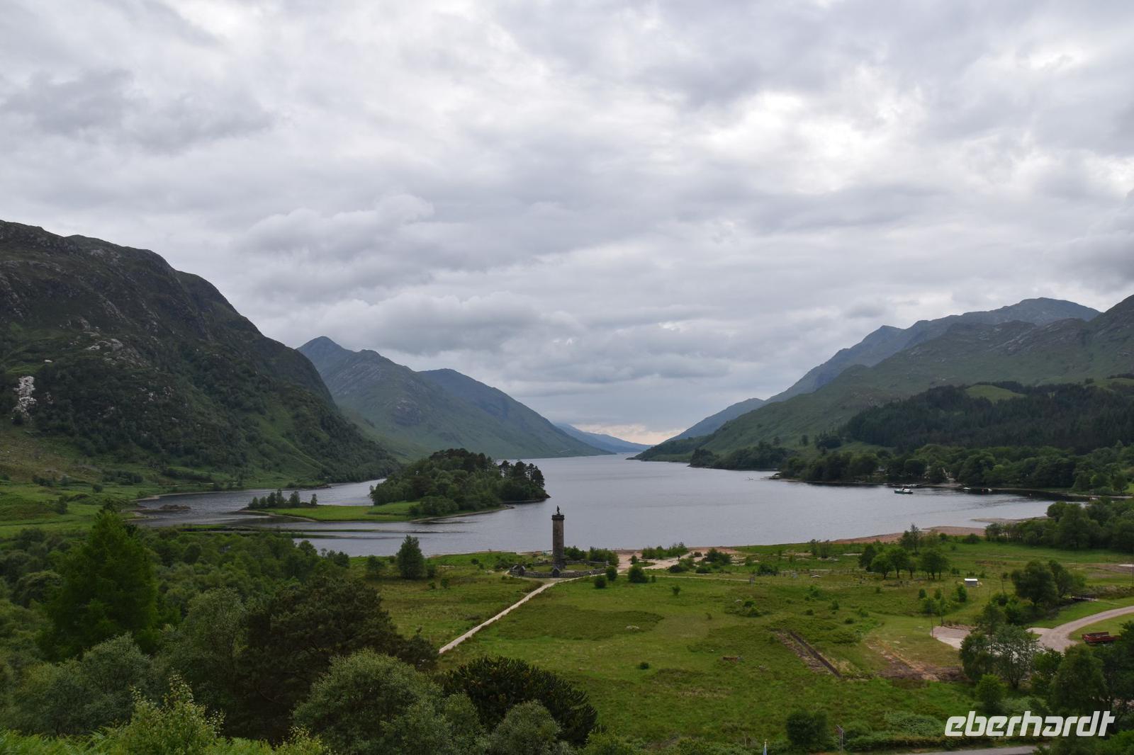 Die Weiterfahrt führt uns über Callander hinein in den Trossachs Nationalpark. Von hier geht es weiter in die Highlands und nach Glencoe. Unterwegs bieten sich unzählige weitere Fotostopps, so an der schönen Aussicht nach Tyndrum, oberhalb des Loch Tulla, am Rannoch Moor und im Glen Coe. Am Nachmittag erreichen wir Fort William, fahren durch den Ort weiter nach Glenfinnian. Hier unternehmen wir an diesem schönen Nachmittag einen kleinen Spaziergang hinauf zum Aussichtshügel, von dem der berühmte Eisenbahnviadukt schön zu sehen ist. Hier öffnet sich auch der schönste Blick auf den Loch Shiel mit dem Jacobiten Monument.
