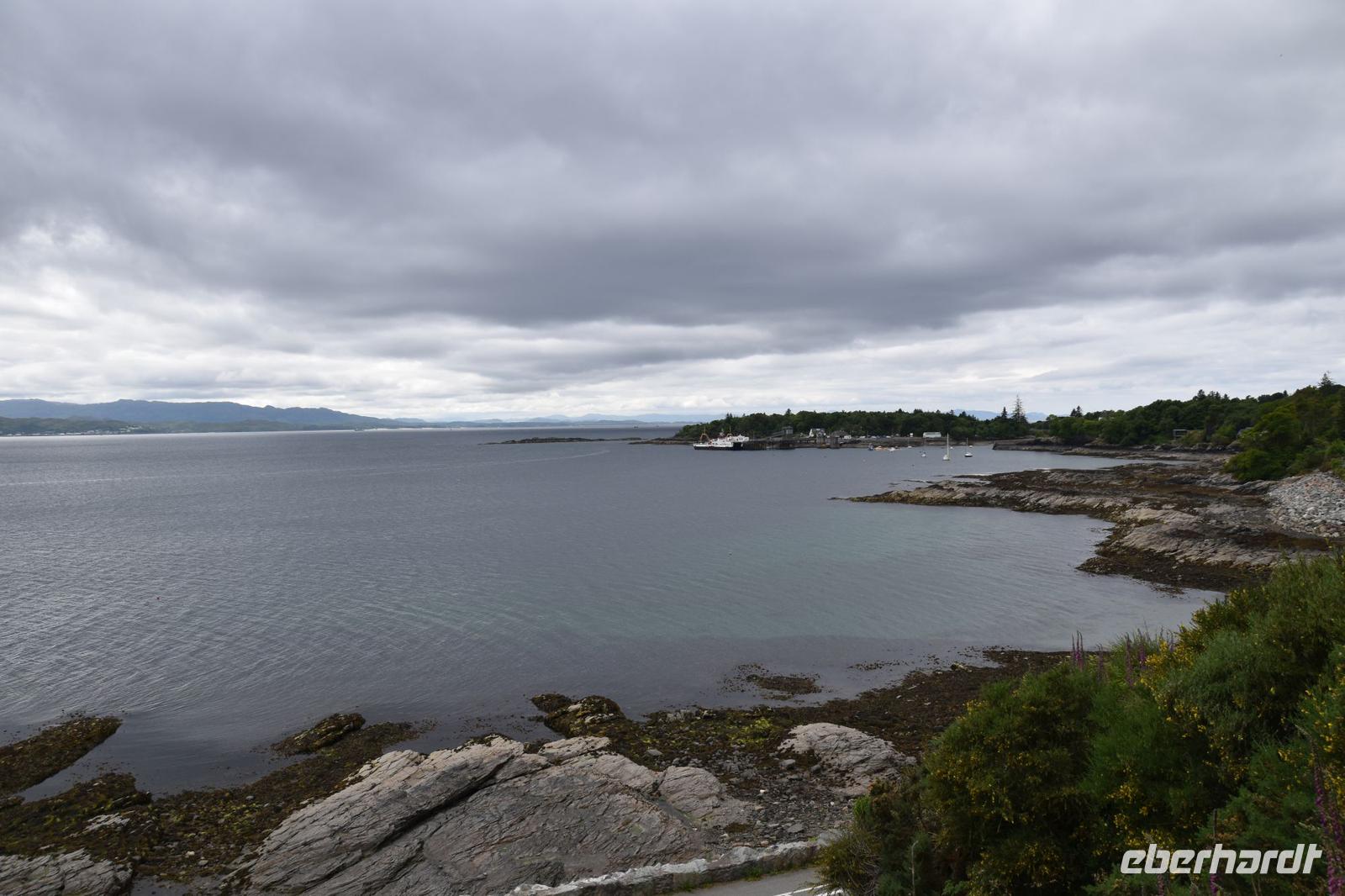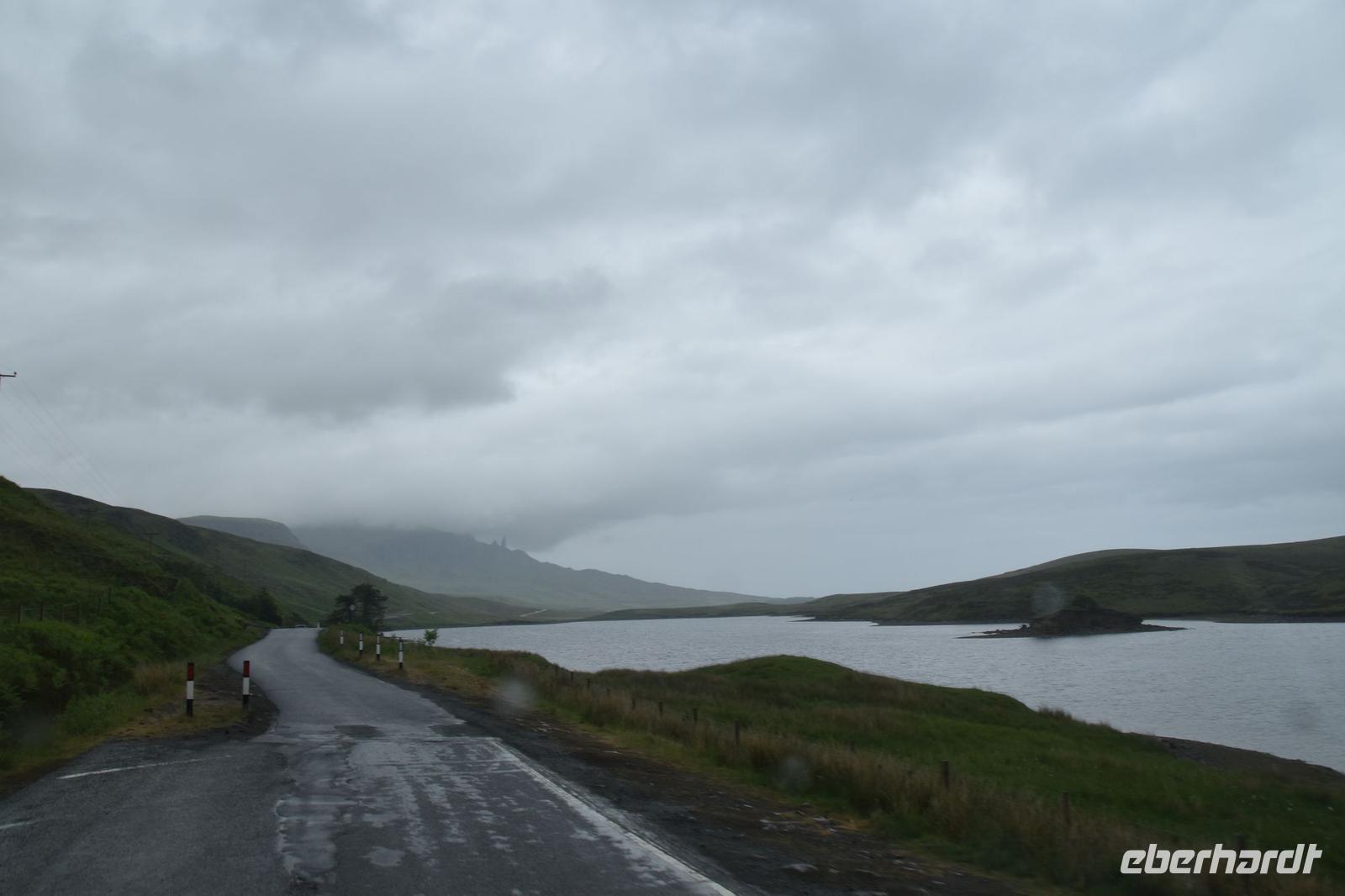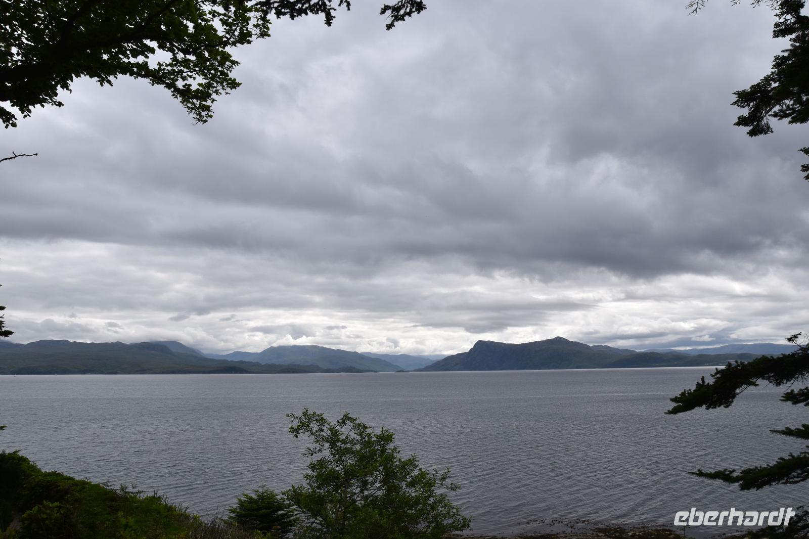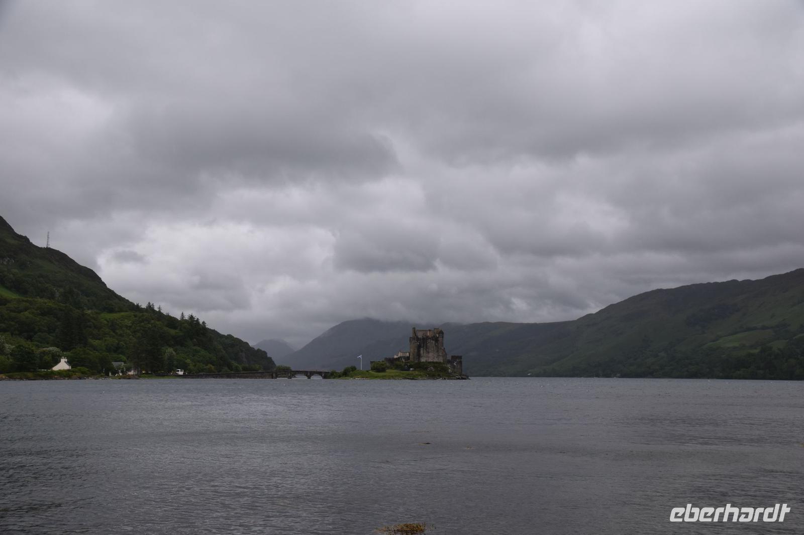 Tief ziehende Wolken tauchen die Landschaft am Loch Alsh in ein mystisches Flair. Auch die Insel Skye macht heute ihrem Namen alle Ehre.