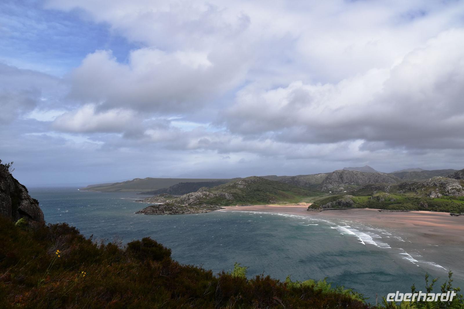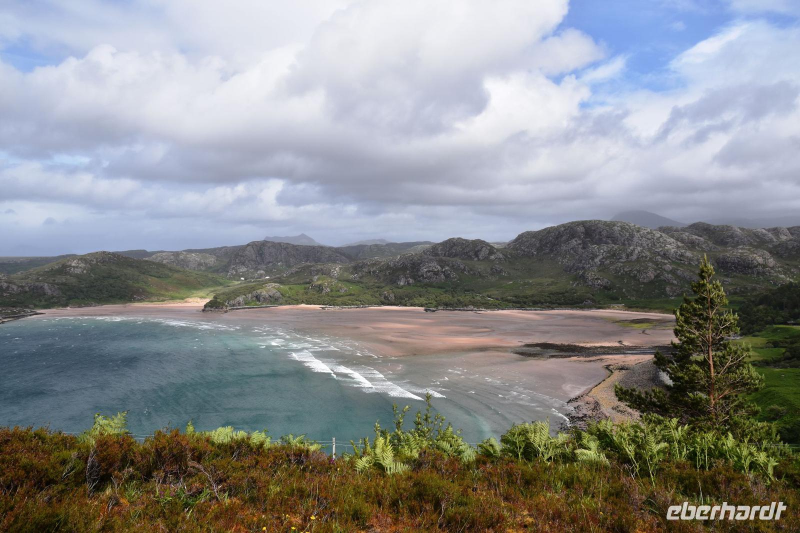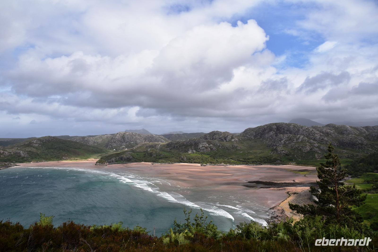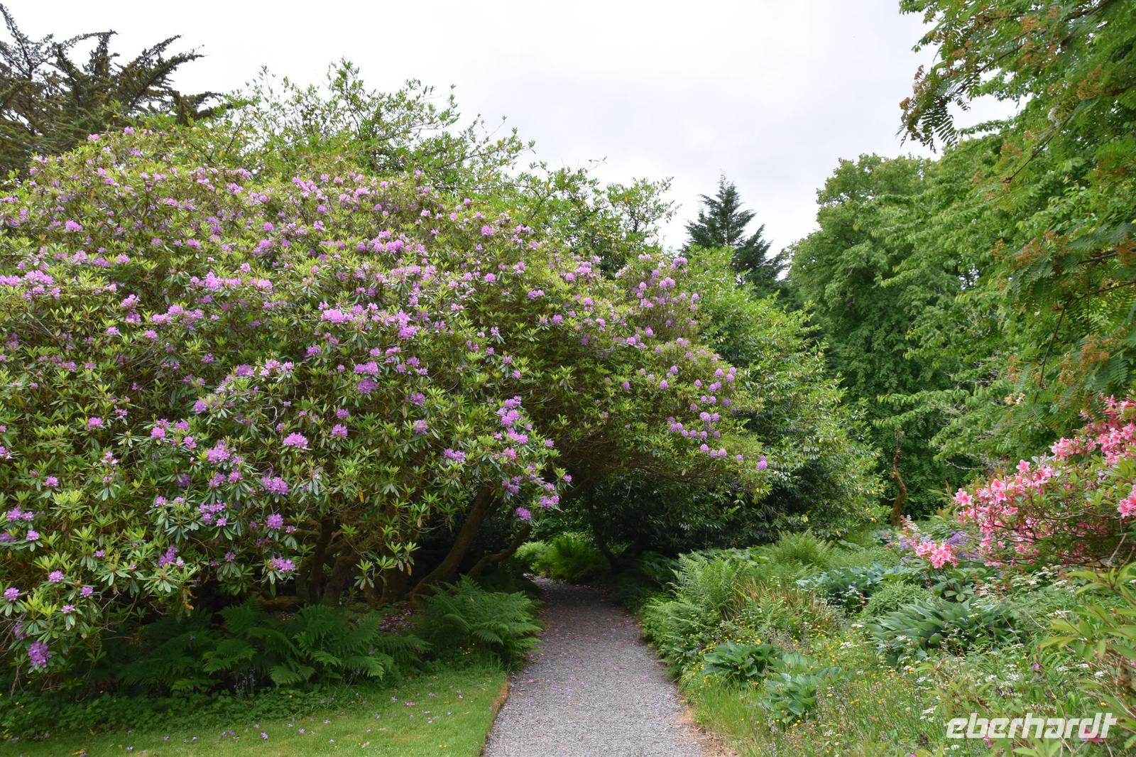 Oberhalb des Strandes von Gairloch machen wir noch einen Fotostopp, bevor wir dann nach Inverewe Garden fahren. Die Rhododendren sind am Verblühen und trotzdem bieten sich uns wunderschöne Gartenansichten. Zeit zum Spazieren und Eintauchen in diese schöne Natur, zumal es jetzt auch immer schöneres Wetter wird.