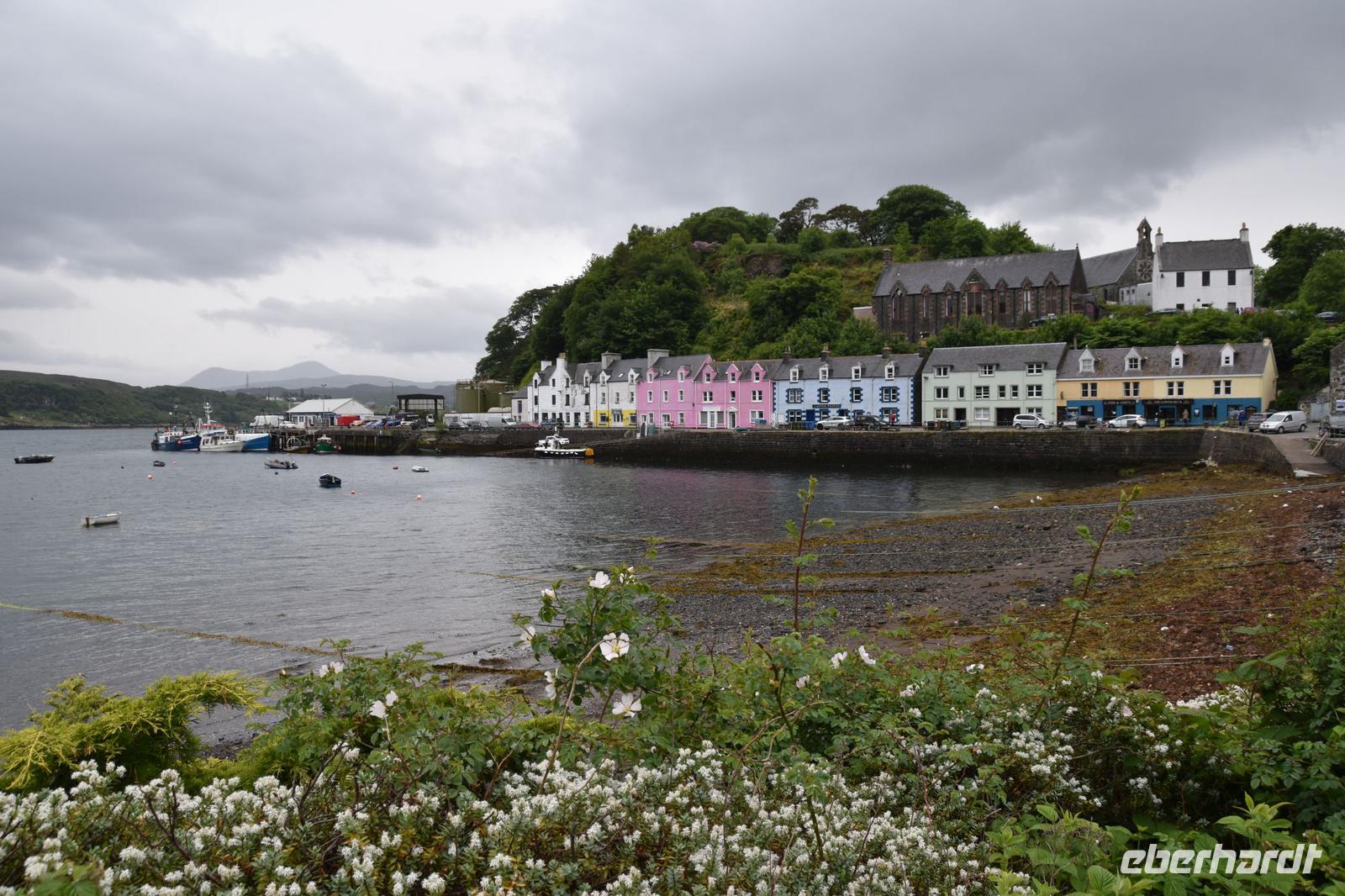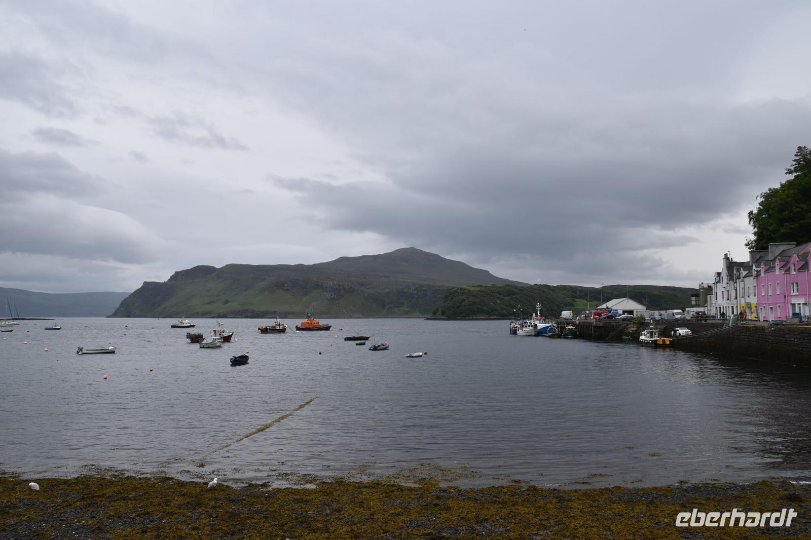 Nach wohlschmeckendem Frühstück im Hotel starten wir zur einer Rundfahrt über die Isle of Skye. Erster Stopp ist in Portree - mit seinen bunten Häusern am Hafen.