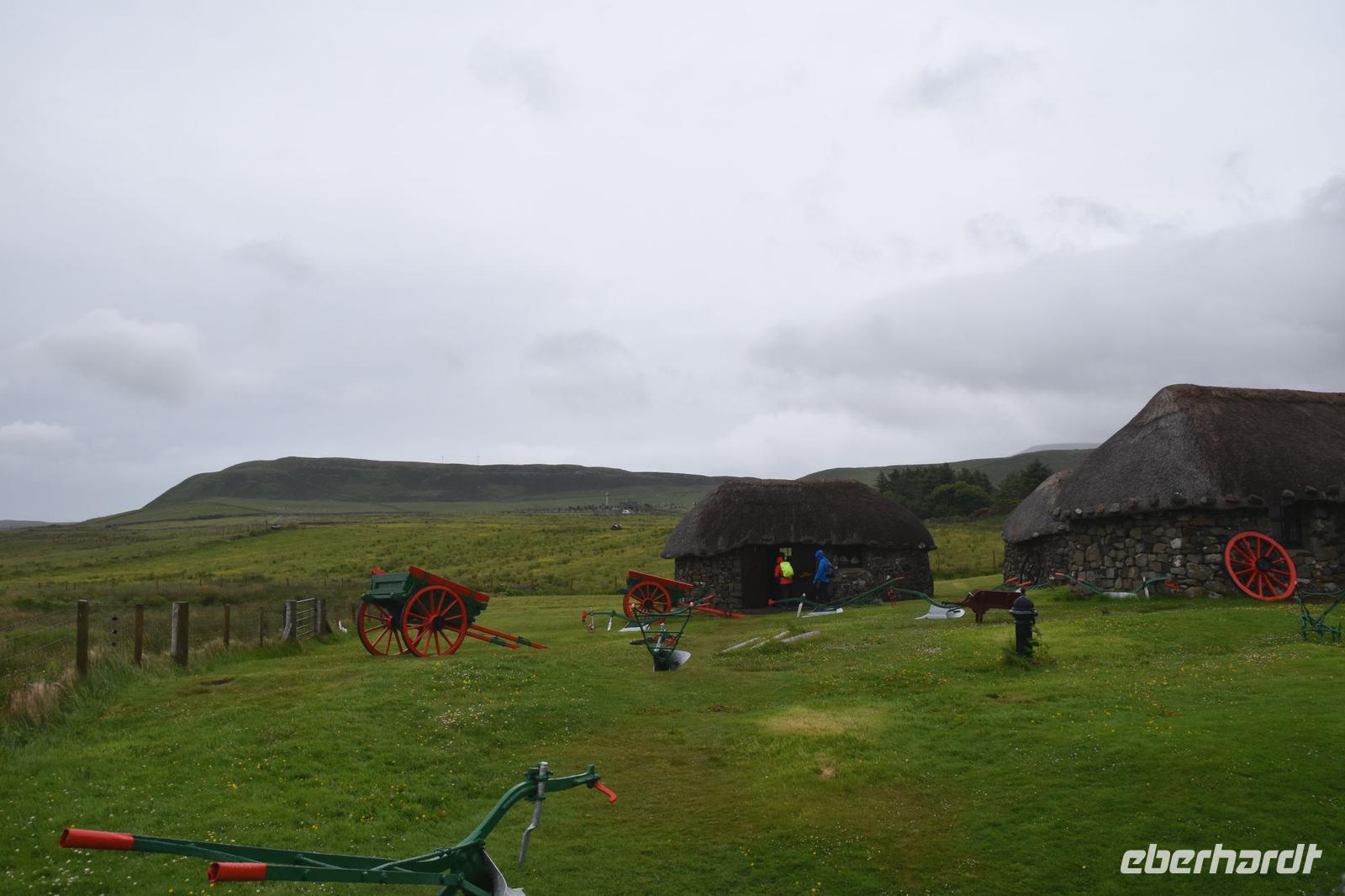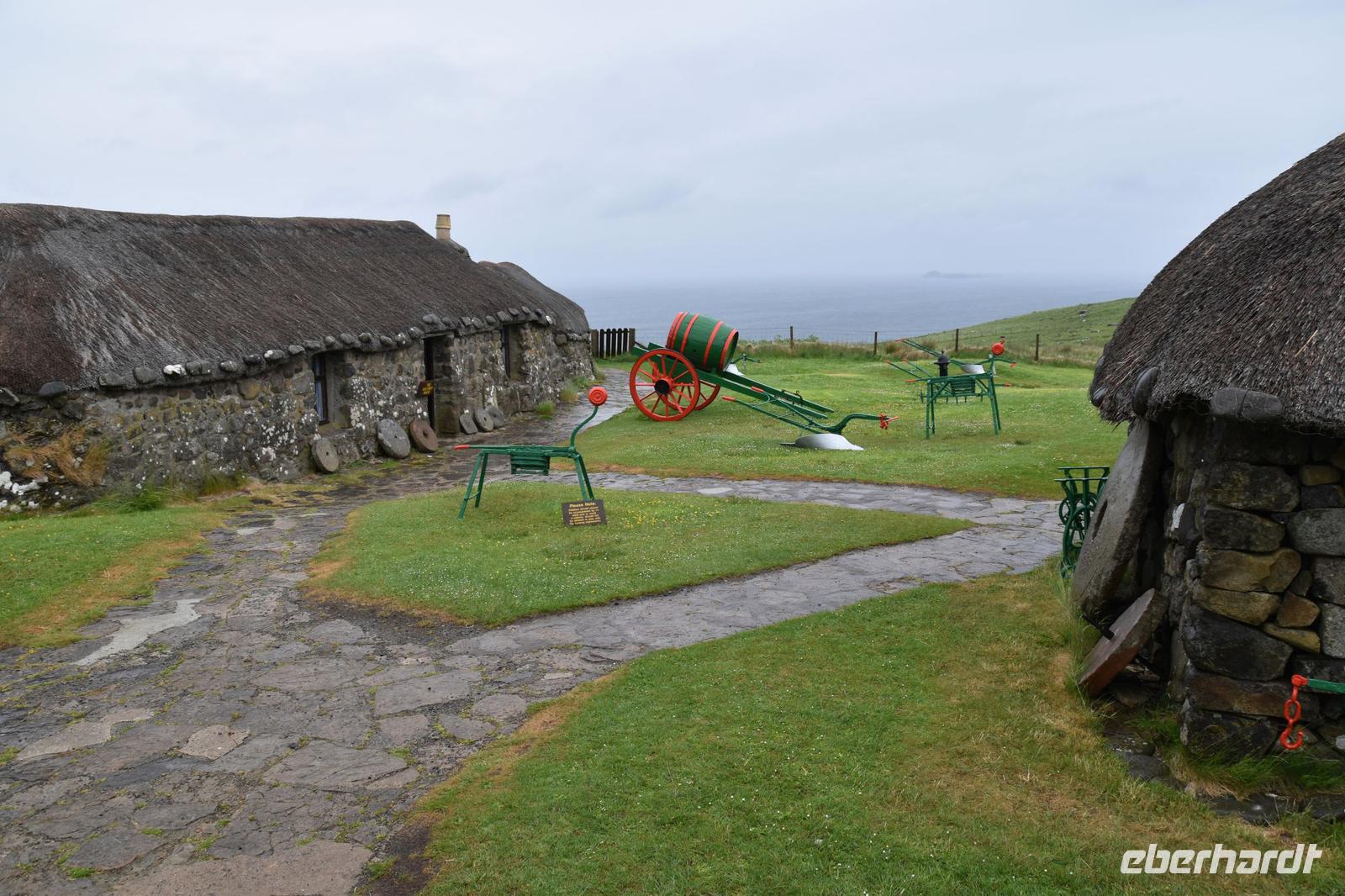 Anschließend die Weiterfahrt zum Kilt Rock, wo wir das 200 m hohe Cliff und den Wasserfall besichtigen. Dann der Norden der Insel, mit Duntulm Castle, dem Skye Museum of Island Life, das wir als weiteres Eberhardt-WOW besichtigen. Wir verschaffen uns so einen Eindruck vom schweren Leben der Crofters, die noch bis 1956 in diesen Häusern wohnten.