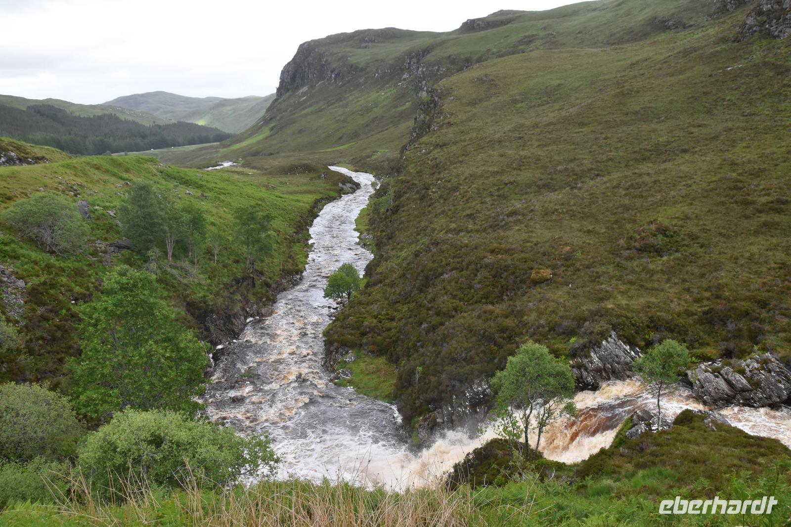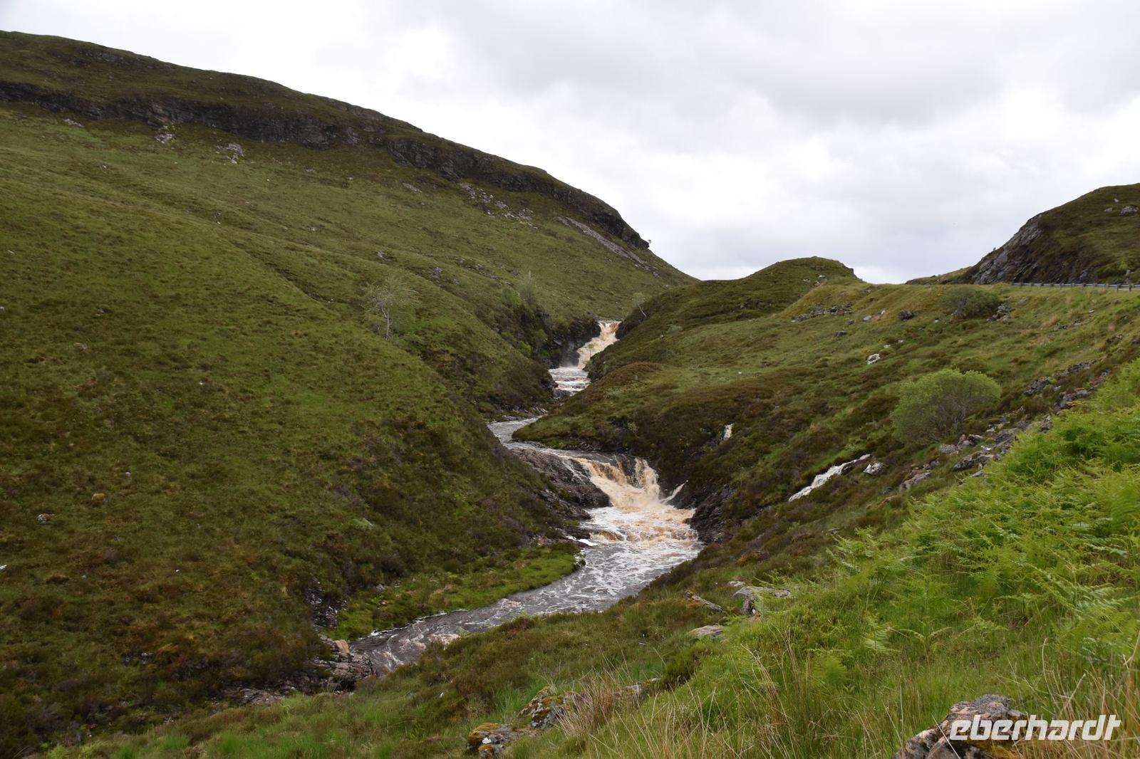 Durch das romantische Tal des Carron fahren wir bei vollem Regenwetter bis Achnasheen und hier links entlang am Loch a'Chroisg Richtung Loch Maree.