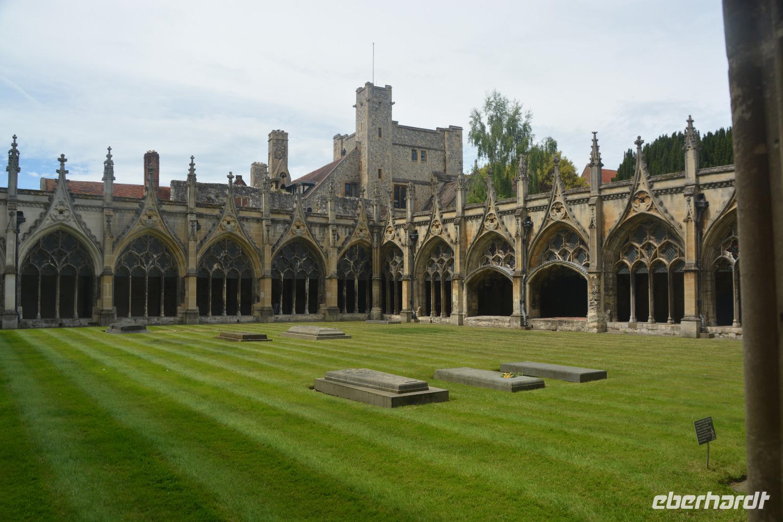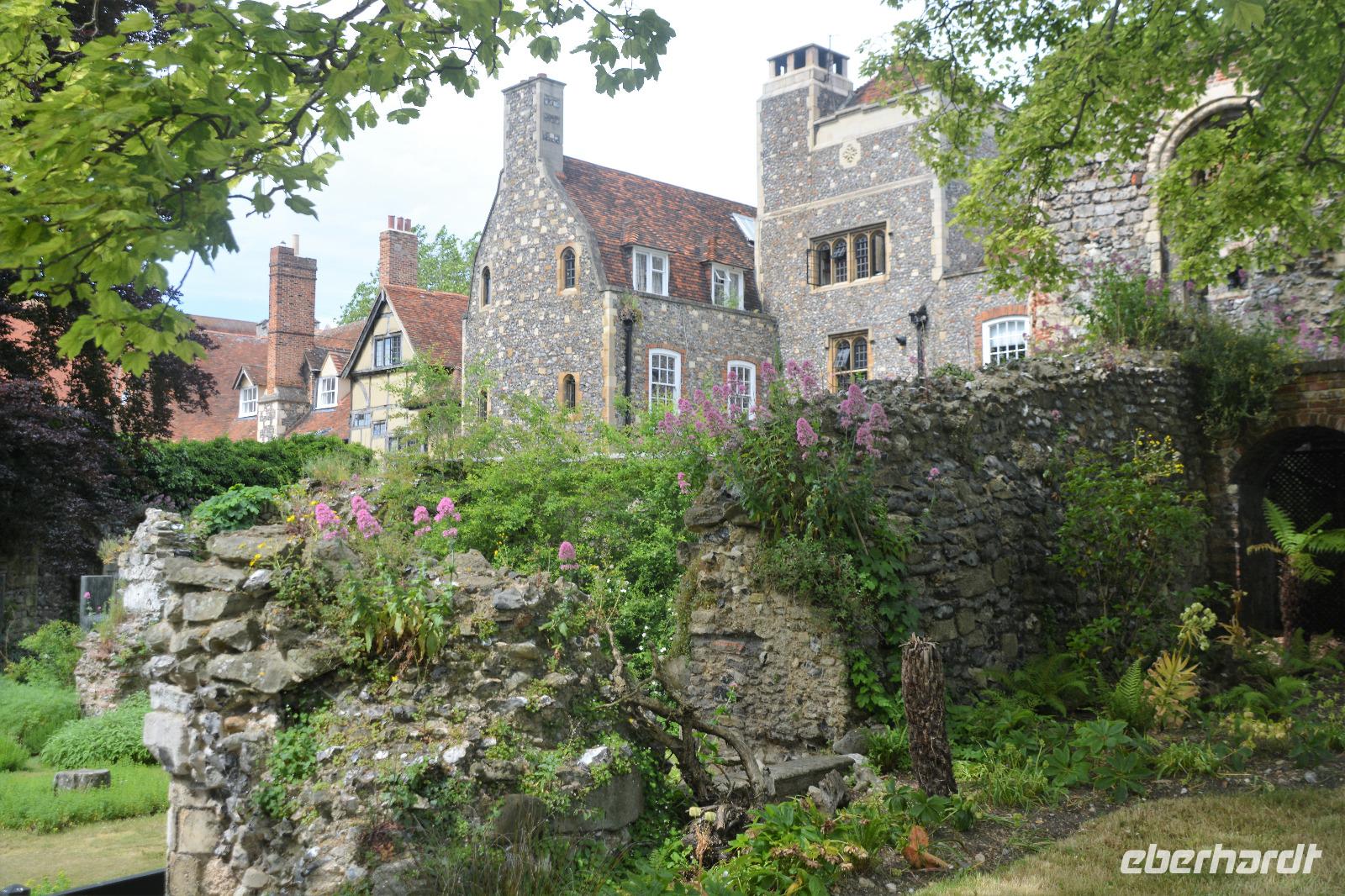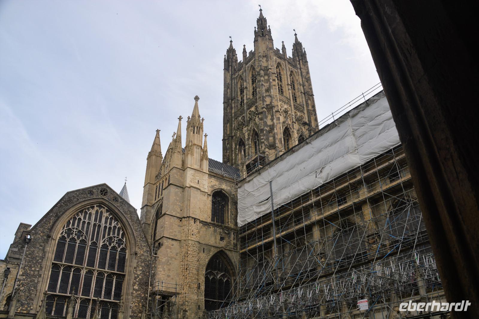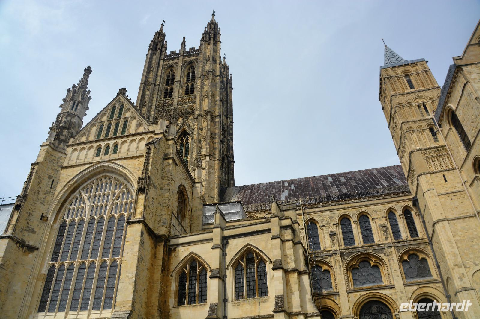 Nach dem Frühstück fahren wir rechtzeitig los, denn unser Bus braucht heute noch ein wenig Nahrung. Schnell sind wir in Calais, die Stadt die im Laufe der Geschichte einiges ertragen musste und heute ein wichtiger Fährhafen nach Grossbritannien ist. Am Terminal ist heute nicht so viel los und wir werden bald zum Auffahren aufgefordert. Die Überfahrt ist ruhig und durch das schöne Wetter können wir die Klippen von Dover schon von Weitem sehen. Die bis zu 106 m hohen Steinwände bestehen aus feinkörnigem Kalk, der seinen Ursprung in der Kreidezeit hat. In dieser Zeit befand sich hier ein tropisches Meer in dem sich die Gehäuse der Schalentiere anhäuften und sich als Sedimente aufschichteten. Heute erscheinen sie besonders weiß, da sie von der Sonne beschienen werden. Langsam kommen wir näher und die Burg von Dover thront über allem. Wir fahren in das Hafenbecken und endlich dürfen wir zu unserem Bus. Hier in Dover und auch in Canterbury, unserem ersten Ziel in Grossbritannien, kam im Jahr 1066 n.Ch. Wilhelm der Eroberer vorbei, um sich an seinem Ziel in Westminster Abbey krönen zu lassen. Canterbury wird auch als das "englische Rom" bezeichnet, denn hier ist das Zentrum der Anglikanischen Kirche und Sitz des Erzbischofs. Wir betreten das weitläufige Areal der Anlage durch ein beeindruckendes Tor und gehen gleich in den Kathedralenbau der eine imposante Länge von 160 m hat. Die Decke des Langhauses bleibt wegen Restaurierungs-arbeiten leider vor unseren Blicken verborgen aber wir können in die Kuppel des Vierungsturmes schauen mit seinem Gewölbe im sog. "Perpendicular Style". Durch den Lettner gelangen wir in den Chor, welcher aus einer früheren Zeit stammt. Berühmt wurde die Kathedrale durch den Mord an Thomas Becket, der als Bischof in seiner eigenen Kathedrale auf Anordnung von Henry(Heinrich) II. ermordet und danach zum Märtyrer wurde. Zu seinem Grab, welches später von Heinrich VIII. zerstört wurde, ströhmten die Gläubigen in Scharen. An der Stelle des Grabes brennt heute ein Kerzenlicht. Wir gehen zum Kreuzgang und landen dann in einem schön angelegten Kräutergarten. Nach einer verdienten Kaffeepause gehen einige von uns noch ein wenig durch das Städtchen, welches einen gemütlichen Charakter hat.Dann geht es zurück zum Parkplatz wo unser Bus steht. Von Canterbury fahren wir weiter in Richtung London. Schon auf der Autobahn wird uns klar, dass wir wohl heute ein wenig später als vorgesehen in London ankommen werden. Eine Ferienwoche geht zu Ende und für den morgigen Tag hat sich doch glatt Herr Trump zu einem Staatsbesuch angesagt. Wir ahnen, dass das wohl unseren Aufenthalt in London etwas beeinträchtigen wird, sind doch begleitend Straßensperren und auch Demomstrationen gegen den Besuch angekündigt. Schon bald bewegen wir uns im Schneckentempo durch Londons Straßen. Unser Hotel welches im Westen der Stadt liegt ist aber nur über diesen Weg zu erreichen. Wir fahren durch den Stadtteil Greenwich mit seinem berühmten Garten und kommen schließlich doch mit einiger Verspätung in unserem Hotel an. Gleich gehen wir zum Abendessen und treffen auf die Mitreisende, die mit dem Flugzeug angereist ist. Sie hatte schon gedacht, dass wir nicht mehr kommen. Trotzdem schmeckt uns das Abendessen in diesem wirklich großen Hotel im Stadtteil Hammersmith.